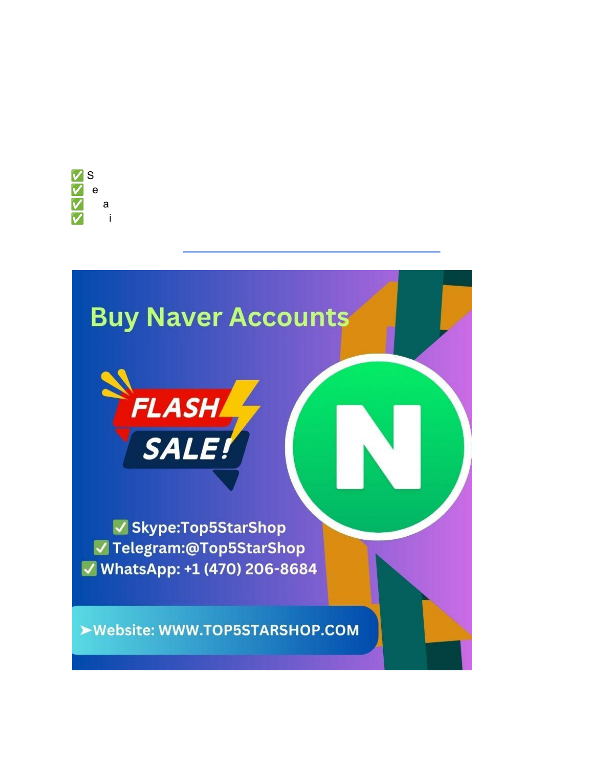 Top 3 Best Site To Buy Naver Accounts | Los Angele 2024 ➤ 24/7 Hours Reply/Contact ✅ Skype:Top5StarShop ✅ Telegram:@Top5StarShop ✅WhatsApp: +1 (470) 206-8684 ✅ Email:top5starshop99@gmail.com MORE INFORMATION:https://top5starshop.com/product/buy-naver-accounts/ Buy Naver Accounts https://top5starshop.com/product/buy-naver-accounts/ Buy Naver Accounts. Secure transactions are crucial to avoid scams when purchasing Naver accounts. As a reliable option, Smmusait stands out for buying Naver accounts. Naver accounts offer communication through email services and collaborative features. Naver is a popular search engine and web portal in South Korea, offering various services including email, news, and shopping. When considering a purchase, it’s essential to prioritize security and legitimacy to ensure a smooth transaction and a trustworthy result. The Importance Of Verified Naver Accounts Ensuring verified Naver accounts is vital for credibility and trustworthiness. Buy Naver Accounts. Secure transactions and legitimate providers are key to avoiding scams when purchasing Naver accounts. Trustworthy sources like Pvashopusa offer reliable options for buying verified Naver accounts online. Credibility And Trustworthiness Buying verified Naver accounts establishes authenticity and trust for your profiles. This is vital for credibility. Enhancing Online Communication Naver accounts enable seamless communication through email services and collaborative tools, fostering information sharing. Navigating The Marketplace For Naver Accounts When it comes to buying Naver accounts, it’s essential to navigate the marketplace carefully to ensure a secure and reliable transaction process. Identifying Reliable Providers Buying verified Naver accounts guarantees credibility and trustworthiness for your profiles, aiding in establishing a strong online presence. Avoiding Scams And Secure Transactions Ensuring secure transactions is paramount when purchasing Naver accounts online. Spotting legitimate providers is crucial to steer clear of potential scams. ➤ 24/7 Hours Reply/Contact ✅ Skype:Top5StarShop ✅ Telegram:@Top5StarShop ✅WhatsApp: +1 (470) 206-8684 ✅ Email:top5starshop99@gmail.com MORE INFORMATION:https://top5starshop.com/product/buy-naver-accounts/ Benefits Of Owning A Naver Account Buy Naver Accounts. Buying verified Naver accounts can boost your credibility and trustworthiness on the platform, which is essential for building a strong presence. With secure transactions and legitimate account providers, purchasing Naver accounts can be a reliable option for those looking to establish themselves on the platform. Benefits of Owning a Naver Account Naver is a popular search engine and web portal in South Korea that offers various services, including email, news, shopping, and more. Buy Naver Accounts. Owning a Naver account comes with several benefits that enhance your online experience. In this section, we will discuss some of the benefits of owning a Naver account. Access to Diverse Services One of the significant benefits of owning a Naver account is gaining access to a diverse range of services. With a Naver account, you can access Naver’s email services, news, shopping, and more. Buy Naver Accounts. Additionally, Naver accounts provide access to various online communities, such as cafes, where users can interact with other users who share similar interests. Seamless Collaboration and Sharing Naver accounts facilitate seamless collaboration and sharing. With a Naver account, you can easily collaborate with others on projects, share files, and even create and share blogs. Naver’s collaboration tools are user-friendly and make it easy to work with others in real-time. Moreover, Naver accounts come with a cloud storage feature that allows users to store files securely and access them from any device. https://top5starshop.com/product/buy-naver-accounts/ This makes it easy to work on projects even when you are on the go. In conclusion, owning a Naver account offers several benefits that enhance your online experience. With access to diverse services and collaboration tools, Naver accounts are a must-have for anyone looking to expand their online presence. So, if you want to enjoy the benefits of owning a Naver account, consider buying one today from a reliable provider. Buy Naver Accounts. Top5Starshop: A Trusted Source For Naver Accounts When it comes to buying Naver Accounts, Top5Starshop stands out as a reliable option. With a plethora of options available online, finding a trustworthy source for Naver accounts can be challenging. However, Top5Starshop offers a seamless and secure process, making it a top choice for purchasing Naver accounts. Why Top5Starshop Stands Out Buy Naver Accounts. At Top5Starshop, we stand out from the competition due to our commitment to providing authentic and verified Naver accounts. Our accounts are carefully curated to ensure reliability and credibility, meeting the needs of our diverse clientele. We also offer a seamless purchasing process, ensuring that our customers can acquire Naver accounts quickly and efficiently. Our dedication to quality and customer satisfaction sets us apart in the industry. Customer Satisfaction And Reviews Buy Naver Accounts. Customer satisfaction is at the core of our business model. We take pride in offering top-notch customer service, addressing any inquiries or concerns promptly. Our clients’ positive feedback and reviews reflect our commitment to excellence, further solidifying our reputation as a trusted source for Naver accounts. With a focus on transparency and reliability, Pvashopusa has garnered a loyal customer base, with many returning for their Naver account needs. Our satisfied customers are a testament to the quality of our services and the trust they place in us. Buy Naver Accounts Eventbrite And Naver: Collaborative Ventures When it comes to online event organization and expanding event reach, collaborat