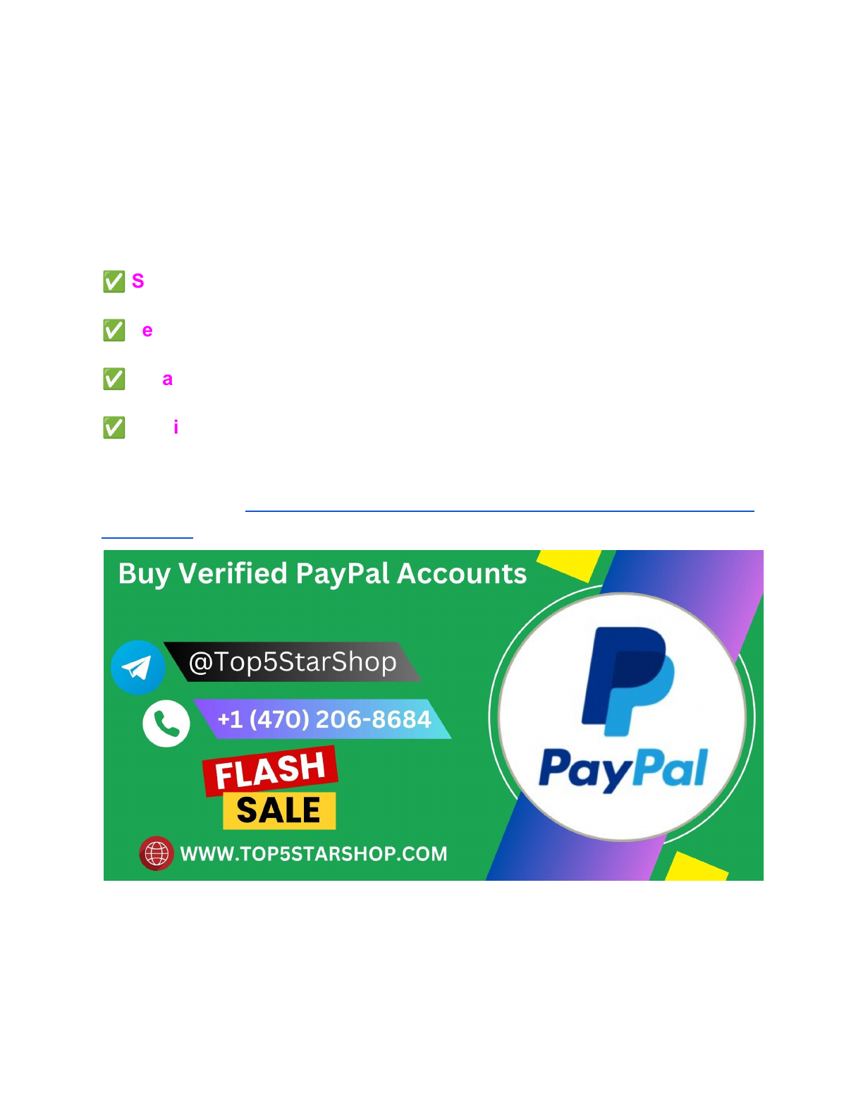 How do I buy verified PayPal accounts safely? ➤ 24/7 Hours Reply/Contact ✅ Skype:Top5StarShop ✅ Telegram:@Top5StarShop ✅WhatsApp: +1 (470) 206-8684 ✅ Email:top5starshop99@gmail.com MORE INFORMATION:https://top5starshop.com/product/buy-verified-paypal- accounts/ If you’re an online seller or buyer, you must have come across PayPal as one of the most popular and secure payment methods available. But, PayPal has varying account types, and the most secure and credible among them is the Verified PayPal Account. But what exactly is a Verified PayPal Account, and why is it important? https://top5starshop.com/product/buy-verified-paypal-accounts/ https://top5starshop.com/product/buy-verified-paypal-accounts/ In simple terms, a Verified PayPal Account is a type of account where PayPal verifies the user’s identity. And confirms their bank account or credit/debit card information. PayPal does this verification to ensure that the account holder is trustworthy. And to prevent fraud, scams, and unauthorized transactions. It also increases the account holder’s transaction limit and provides them with more benefits. Such as buyer and seller protection. Many online sellers and buyers prefer to use PayPal. And a Verified account ensures smooth transactions and builds your credibility as a seller or buyer. The verification process is simple, and PayPal provides clear instructions on how to get verified. In today’s digital age, the need for secure payment gateways has become more crucial than ever before. PayPal is one of the most trusted online payment systems used worldwide. Not only is it convenient to use, but it also offers a high level of security and reliability. Verified PayPal accounts are those that have been linked to a bank account or credit card, and the account holder’s identity has been confirmed. This process involves PayPal checking the account holder’s personal information. Including their name, address, and date of birth, to make sure it matches the information on file with the bank. Having a verified PayPal account provides several benefits. It increases the user’s credibility, which means they can buy and sell goods with greater confidence. Why should to Buy Verified PayPal Account? In today’s digital age, online payment methods have become an integral part of our daily lives. PayPal is one of the most popular online payment gateways that has revolutionized the way we transfer money online. PayPal allows individuals and businesses to send and receive payments securely. Without the need for sharing personal financial information. But, the process of creating a PayPal account and getting it verified can be time-consuming and frustrating for many users. In this blog post, we will discuss the advantages of buying verified PayPal accounts. Firstly, verified PayPal accounts are more trustworthy and secure than unverified accounts. This is because PayPal verifies the identity of the account holder and confirms that they are a legitimate user. Additionally, verified PayPal accounts have higher transaction limits. Allowing users to send and receive larger amounts of money. In today’s world of online transactions, PayPal has become one of the most popular payment platforms available. With its ease of use and convenience, it has gained a massive user base. But, with the increasing number of online transactions comes the inevitable risk of fraud and scams. This is where buying verified PayPal accounts comes in. Verified PayPal accounts are legitimate accounts that have undergone a thorough verification process by PayPal. This process ensures that the account belongs to a real person or business. And that they have provided the necessary documentation to prove their identity. So, why should you buy verified PayPal accounts? Firstly, it provides an added layer of security when making transactions online. With a verified account, you can be sure that you’re dealing with a legitimate user, and not a scammer. Additionally, having a verified account can increase your credibility as a seller. Making potential customers more likely to trust you and complete transactions with you. How Do I Get 100% Real Verified PayPal Account? PayPal is one of the most widely used payment platforms in the world. Making it an essential tool for many businesses and individuals. But, creating a verified PayPal account is not always a straightforward process. There are many factors that can affect the verification process. Including country restrictions, documentation requirements, and security measures. As a result, many people are left wondering how to get 100% real and verified PayPal accounts. Fortunately, there are several steps you can take to ensure your account is fully verified and ready to use. We will explore the different types of PayPal accounts and the steps you can take to verify them. We will also discuss the importance of having a verified PayPal account. And how it can benefit your business or personal finances. Whether you are a small business owner or an individual looking to make online payments. This post will provide you with valuable insights on how to get 100% real and verified PayPal accounts. In today’s digital age, online payment methods have become an integral part of our daily lives. PayPal is one of the most popular online payment gateways that has revolutionized the way we transfer money online. PayPal allows individuals and businesses to send and receive payments securely. Without the need for sharing personal financial information. But, the process of creating a PayPal account and getting it verified can be time-consuming and frustrating for many users. We will discuss the advantages of buying verified PayPal accounts. Firstly, verified PayPal accounts are more trustworthy and secure than unverified accounts. This is because PayPal verifies the identity of the account holder and confirms that they are a legitimate user. Additionally, verified PayPal accounts hav
