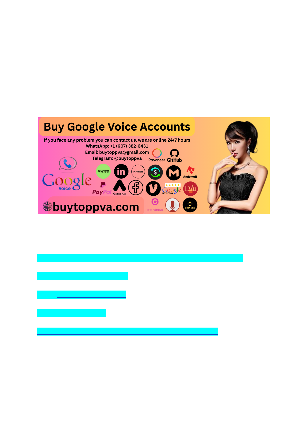 How to Buy Google Voice Numbers in Large …2025 In today’s fast-paced digital world, having access to reliable communication tools is essential. Enter Google Voice—a game changer for anyone looking to streamline their calling and messaging experience. But what if you could take your efficiency a step further? Imagine owning verified Google Voice accounts tailored specifically for personal or business use. Whether you’re in the USA or the UK, buying these accounts can open doors to seamless connectivity and enhanced productivity. At topsellreit.com, we offer 100% active Google Voice accounts that are ready to elevate your communication strategy. Dive into this guide as we explore everything you need to know about purchasing these valuable assets, their benefits, and how they can transform the way you connect with others. Ready to unlock new possibilities? Let’s get started! If you face any problem you can contact us. we are online 24/7 hours WhatsApp: +1 (607) 382-6431 Email: buytoppva@gmail.com Telegram: @buytoppva https://buytoppva.com/product/buy-google-voice-accounts/ Buy Google Voice Accounts – 100% Active & US, UK Verified When you choose to buy Google Voice accounts, you’re investing in a tool that can enhance your communication experience. Our accounts are 100% active and verified for users in both the US and UK, ensuring you get quality without compromise.Buy Google Voice Accounts mailto:buytoppva@gmail.com https://buytoppva.com/product/buy-google-voice-accounts/ These verified accounts provide a reliable connection for personal use or business endeavors. You won’t have to worry about glitches or inactive numbers; each account is thoroughly checked before delivery. With seamless setup and instant access, you’ll find it easy to integrate these accounts into your daily routine. Whether it’s for managing calls efficiently or sending texts effortlessly, our Google Voice accounts cater to all your needs. Buying from us means choosing reliability and professionalism. Say goodbye to frustration with unreliable services—our verified options guarantee peace of mind as you communicate more effectively across borders. What Are Google Voice Accounts? Google Voice Accounts provide a unique communication solution that combines multiple features into one platform. This service allows users to send and receive calls, texts, and voicemail messages through a single number. One of the key aspects is its flexibility. You can manage your Google Voice Account from various devices, be it your smartphone or computer. This ensures you stay connected no matter where you are. Another highlight is the ability to customize your phone experience. With options for call forwarding and personalized greetings, Google Voice caters to both personal and business needs seamlessly. Moreover, it integrates easily with other Google services. This connectivity enhances productivity and streamlines communication efforts for users across different platforms. How to verify a Google Voice Account? Verifying a Google Voice account is a straightforward process. First, you need to sign in to your Google account or create one if necessary. Once logged in, navigate to the Google Voice page. Here, you’ll find options for linking your phone number. Choose a valid U. Google will send you a verification code via text message to that number. Check your phone inbox and enter the code on the website when prompted. This step confirms that you own the provided phone number, securing your account’s integrity. After successfully entering the code, you’ll gain access to all features of Google Voice, ready for personal or business use without issues down the line. Benefits Of Google Voice Accounts Google Voice accounts offer a range of benefits that can enhance communication. One standout feature is the ability to manage calls and messages from various devices seamlessly. Whether you’re on your phone, tablet, or computer, staying connected has never been easier. Buy Google Voice Accounts Another advantage is the convenience of having one number for all communications. No more juggling multiple numbers for personal and business purposes; everything can be centralized into one Google Voice account. If you face any problem you can contact us. we are online 24/7 hours WhatsApp: +1 (607) 382-6431 Email: buytoppva@gmail.com Telegram: @buytoppva https://buytoppva.com/product/buy-google-voice-accounts/ Moreover, the voicemail transcription feature saves time by converting voice messages into text. This ensures you won’t miss important details while freeing up your schedule for other tasks. Privacy is also prioritized with Google Voice. Users can keep their number private while providing clients or contacts with a dedicated line. mailto:buytoppva@gmail.com https://buytoppva.com/product/buy-google-voice-accounts/ With call screening capabilities, you have control over who gets through to you, an essential tool in today’s fast-paced world where managing calls effectively is crucial. How can I buy a real Google Voice Account? Buying a real Google Voice Account is simple. Start by visiting a reputable provider that specializes in selling verified accounts. Look for reviews and testimonials to ensure authenticity. Once you find a trusted source, select the type of account you need—whether it’s for personal use or business purposes. Make sure the accounts are 100% active and verified in your desired region, like the US or UK. After making your choice, proceed to checkout. Most providers will ask for minimal information to set up your account securely. Payment methods vary, so choose one that suits you best. After purchase, expect detailed instructions on how to access and verify your new Google Voice Account. Always remember to protect your login details as these accounts can be valuable tools for communication. Why do you like our Google Voice Accounts? Our Google Voice Accounts stand out for their reliability and versa