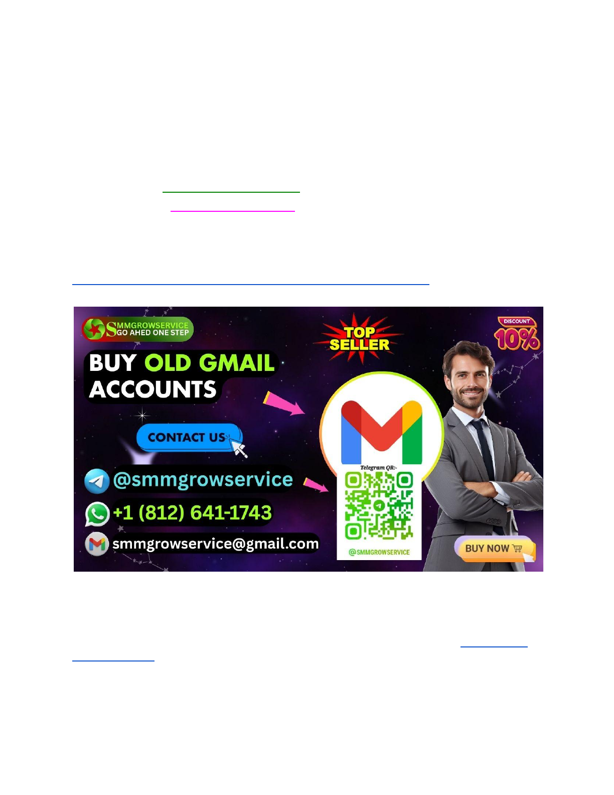 How to Buy Old Gmail Accounts Safely | A Step-by-Step Guide If you want more information just contact me now. 24 Hours Reply/Contact ➤Telegram: @smmgrowservice ➤WhatsApp: +1 (812) 641-1743 ➤Email: smmgrowservice@gmail.com For More Info Visit Our Site: https://smmgrowservice.com/product/buy-old-gmail-accounts/ Buy Old Gmail Accounts From Smmgrowservice: What You Need to Know In the fast-paced world of digital marketing and online operations, the appeal of old (or aged) Gmail accounts is undeniable. Services like Smmgrowservice advertise access to these pre‑existing accounts—promising trust, deliverability, and quick entry into monetized platforms. But are these benefits real—or just a risky shortcut? https://t.me/smmgrowservice https://wa.me/18126411743 https://smmgrowservice.com/product/buy-old-gmail-accounts/ https://smmgrowservice.com/product/buy-old-gmail-accounts/ https://smmgrowservice.com/product/buy-old-gmail-accounts/ This article dives deep into the practice of buying old Gmail accounts, lays out the hidden perils, and offers smart, compliant alternatives. What Are “Old Gmail Accounts?” “Old Gmail accounts” are email addresses that have been in existence for months or years. The idea is: an account with an established history appears more legitimate, helping bypass spam filters, reduce security checks, or even avoid account verification hurdles on platforms like YouTube or Google Ads. Some users seek aged accounts for: ● Cold email outreach (perceived better deliverability) ● Launching YouTube/AdSense more quickly ● Automating tasks or bots without immediate Google blocks ● Access to legacy services or features no longer offered to new accounts The Risks You Shouldn’t Ignore 1. Violation of Google’s Terms of Service Google strictly prohibits the sale, transfer, or purchase of Gmail accounts. Using bought accounts puts you in direct violation—risking immediate suspension or permanent ban. 2. Security & Privacy Threats When you buy an account, you inherit its unknown history. It may contain malware, phishing links, or links to illicit activity. Recovery info (like phone or email) could still belong to someone else, allowing them to regain access. 3. Legal and Ethical Implications This practice may edge into identity theft, fraud, or breach of privacy regulations like GDPR. Even if unintentional, you could be implicated in misconduct. 4. Account Loss and Unreliable Access Many purchased accounts get flagged quickly by Google’s detection systems. Buyers often find themselves locked out or with accounts they never truly controlled. 5. Scams & Market Fraud https://protocol.ooo/en/articles/the-risks-and-realities-of-buying-old-gmail-accounts?utm_source=chatgpt.com https://protocol.ooo/en/articles/the-risks-and-realities-of-buying-old-gmail-accounts?utm_source=chatgpt.com https://protocol.ooo/en/articles/the-risks-and-realities-of-buying-old-gmail-accounts?utm_source=chatgpt.com The market is unregulated. Sellers may provide stolen, duplicated, or fake accounts. There’s little recourse—you might pay and receive nothing, or accounts that don’t work. Are Benefits Real? (And for How Long?) Proponents claim that aged accounts: ● Improve email deliverability ● Skip verification delays for platforms like YouTube or Ads ● Offer access to hard-to-get usernames or legacy features But these are often myths. Modern platforms rely more on behavior patterns, IP reputation, and account activity—not just age. Any “shortcut” gained may be short-lived and often comes with high risk. Best Alternatives You Can Trust Rather than buying accounts, consider these responsible alternatives: 1. Build Your Own Accounts Create Gmail accounts and warm them up organically—use them regularly, send and receive emails, interact with Google services. Over time, they build reputation legitimately. 2. Use Google Workspace (G Suite) Get professional email addresses under your own domain. It offers credibility, higher limits, and is fully compliant with Google policies. 3. Use Email Marketing Tools Platforms like Mailchimp, SendGrid, ConvertKit, and others offer robust, compliant email deliverability tools—no need for multiple Gmail accounts. 4. Set Up Authenticated Domains Improve deliverability and trust with proper email authentication: SPF, DKIM, and DMARC. 5. Use Aliases and Segmentation https://www.wikiart.org/en/aged-gmail-accounts-explained-benefits-risks-and-legal-alternatives?utm_source=chatgpt.com https://protocol.ooo/en/articles/the-risks-and-realities-of-buying-old-gmail-accounts?utm_source=chatgpt.com https://protocol.ooo/en/articles/the-risks-and-realities-of-buying-old-gmail-accounts?utm_source=chatgpt.com Gmail allows aliases using syntax like yourname+alias@gmail.com to categorize or filter emails without creating multiple accounts. FAQ Q1: Are bought aged Gmail accounts permanently banned? Not always—some work for a time. But Google continually updates detection algorithms, so suspension is a high risk. Q2: Can you truly rely on recovery options? No. The original owner might retain recovery access, which means you may lose control any time. Q3: Are some sellers trustworthy? Even if a seller seems reputable, there's no guarantee. Misrepresentation, duplicate sales, or revoked accounts are common. The market lacks accountability. Q4: Are there legal consequences if I use such accounts? Yes—especially if the account was obtained illegally. You could face charges related to fraud or unauthorized access. Q5: What is the best way to increase email deliverability? Use email services with proper authentication (SPF, DKIM, DMARC), domain reputation, and warmed-up accounts or platforms made for large‑scale outreach. If you want more information just contact me now. 24 Hours Reply/Contact ➤Telegram: @smmgrowservice ➤WhatsApp: +1 (812) 641-1743 ➤Email: smmgrowservice@gmail.com For More Info Visit Our Site: https://smmgrowservice.com/product/buy-old