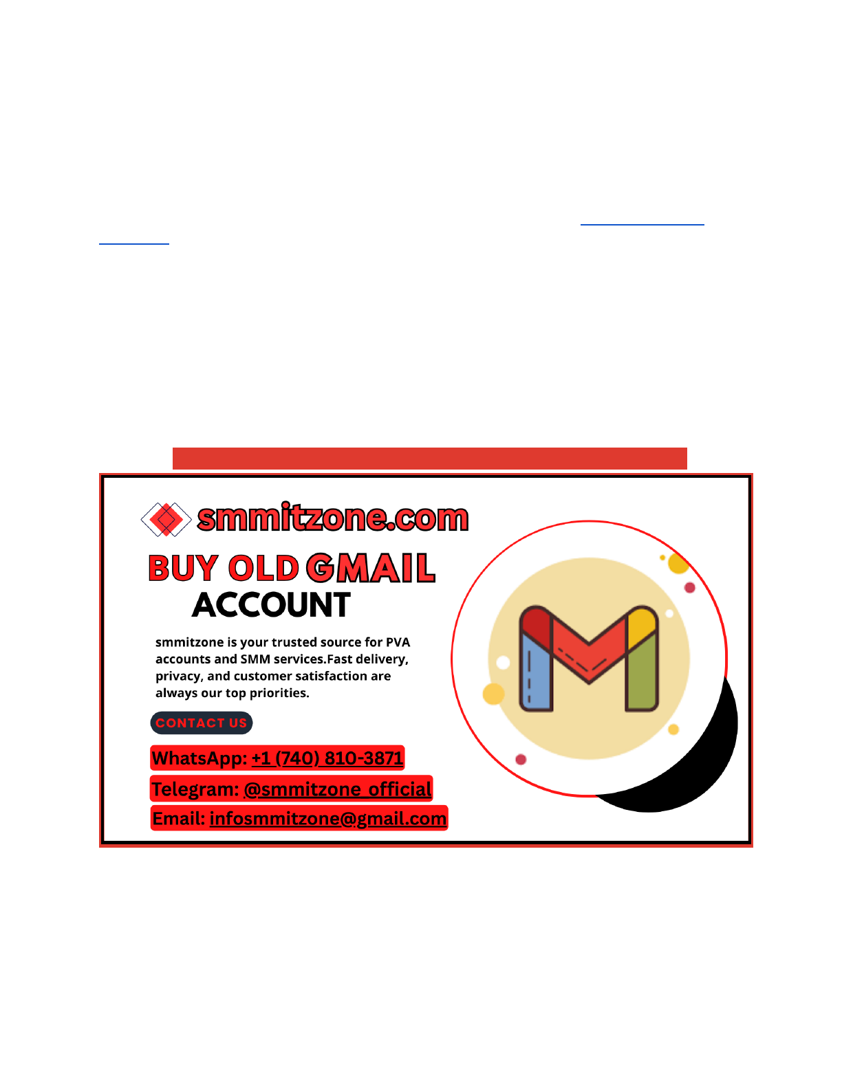 33 Best Sites For Purchase Gmail Accounts in Bulk (PVA & Aged) Are you looking to boost your online presence quickly and easily? Buying old Gmail accounts from Smmitzone.Com might be the shortcut you need. Contact smmitzone 24/7: Email: infosmmitzone@gmail.com Telegram: @smmitzone_official WhatsApp: +1 (740) 810-3871 https://smmitzone.com/product/buy-old-gmail-accounts/ These accounts come with a history, trusted reputation, and often higher credibility than brand-new ones. Imagine saving time and effort while gaining access to accounts that can help you grow your business, manage multiple projects, or enhance your marketing strategies. Keep reading to discover how buying old Gmail accounts can give you an edge and what you need to know before making this smart move. https://smmitzone.com/product/buy-old-gmail-accounts/ https://smmitzone.com/product/buy-old-gmail-accounts/ Benefits Of Old Gmail Accounts Old Gmail accounts offer many advantages for personal and business use. These accounts have a history that new accounts do not possess. This history can help build trust and increase credibility online. Contact smmitzone 24/7: Email: infosmmitzone@gmail.com Telegram: @smmitzone_official WhatsApp: +1 (740) 810-3871 https://smmitzone.com/product/buy-old-gmail-accounts/ Using an old Gmail account can save time and effort. It allows access to features and settings already set up. These benefits make old accounts valuable for various activities. Improved Trust And Credibility Old Gmail accounts appear more reliable to users and websites. They are less likely to be flagged as spam or fake. This trust helps in email marketing and communication. Access To Established Contacts Many old Gmail accounts come with a list of contacts. This saves time from building connections from scratch. It helps maintain communication with important people easily. Better Email Deliverability Emails sent from old accounts often reach inboxes more effectively. New accounts might face restrictions or delays. Using an old account improves message delivery rates. Pre-verified Account Status Old Gmail accounts usually have verified phone numbers and recovery options. This adds a layer of security and trust. It also helps in account recovery if needed. Access To Past Data And Settings Old accounts may contain saved emails, files, and settings. This data can be useful for reference or ongoing work. It reduces the need to start fresh. https://smmitzone.com/product/buy-old-gmail-accounts/ Why Choose Smmitzone.com Smmitzone.Com offers a simple and safe way to buy old Gmail accounts. Their service is reliable and easy to use. Many users trust them for quick account access. Buying old Gmail accounts from Smmitzone.Com saves time and effort. The accounts come with good history and activity. This helps with better email credibility and faster setup. Easy And Fast Process The website has a clear and simple buying process. You can complete your purchase in just a few steps. No need to wait for days to get your account. Verified And Active Accounts All Gmail accounts are checked and active. This lowers the risk of problems after purchase. You get accounts ready to use right away. Secure Payment Options Smmitzone.Com offers safe payment methods. Your information stays private and protected. Payments are processed quickly and securely. Customer Support Available Help is ready when you need it. The support team answers questions fast. They guide you through the buying process smoothly. Security Features Offered Security is a top priority when buying old Gmail accounts from Smmitzone.Com. These accounts come with strong protection layers to keep data safe. You can trust that your information stays private and secure. Each account is checked for safety before sale. The site uses measures to prevent hacking and unauthorized access. This helps protect your account from threats and misuse. Secure Password Management Passwords are reset and tested for strength. Strong passwords reduce risks of hacking. Smmitzone.Com provides accounts with updated, secure passwords for safety. Two-factor Authentication Enabled http://smmitzone.com Many accounts include two-factor authentication (2FA). This adds an extra step to sign in. Even if someone knows your password, 2FA blocks access without the second code. Regular Account Activity Checks Accounts undergo regular monitoring. Suspicious activity is detected early. This keeps accounts safe from unauthorized use and alerts buyers to any issues. Privacy Protection Measures Personal information is removed before sale. This keeps previous user data private. Your new account starts clean with no old data linked to it. Reliability Of Account Access Reliability of account access is crucial when buying old Gmail accounts from Smmitzone.Com. Buyers expect smooth, uninterrupted use without sudden lockouts. Reliable access means the account stays active and under your control. Old Gmail accounts must have updated recovery options. This helps regain access if passwords are forgotten or accounts get flagged. Smmitzone.Com ensures these features are current and functional. Consistent Login Experience Login should be simple and fast. Accounts from Smmitzone.Com allow easy entry without error messages. This saves time and avoids frustration. Verified Account Activity Accounts show regular activity before sale. Active accounts reduce the risk of suspension. Buyers get accounts that look natural and trusted by Google. Secure Recovery Information Recovery emails and phone numbers are valid and controlled by the seller. This guarantees the buyer can reset passwords securely. It also prevents unauthorized access. Support For Access Issues Smmitzone.Com offers help if login problems occur. Responsive support guides buyers through recovery steps. This adds peace of mind after purchase. Instant Delivery Process Buy old Gmail accounts at Smmitzone. Com and get them delivered instantly. The process is quick and secure. No waiting