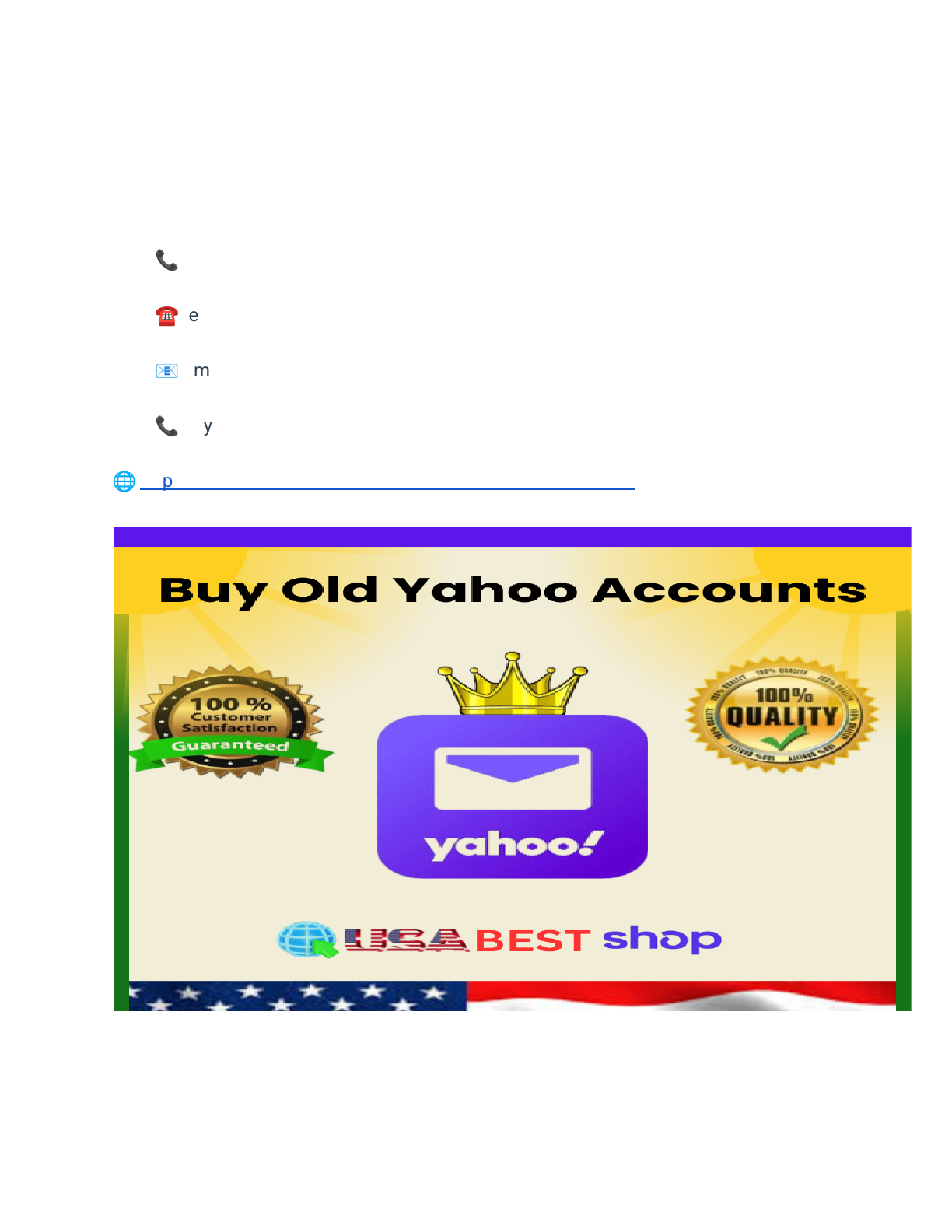 Buy Old Yahoo Accounts to Boost Your Online Strate ––➤📞 WhatsApp: +1 (839) 285-0027 ––➤☎Telegram: @usabestshoplive ––➤📧 Email: usabestshoplive@gmail.com ––➤📞 Skype: usabestshoplive 🌐 https://usabestshop.com/product/buy-old-yahoo-accounts/ Are you looking to expand your online presence and reach a wider audience? Buy Yahoo accounts could be the strategy you need to boost your marketing efforts. With a Yahoo https://usabestshop.com/product/buy-old-yahoo-accounts/ account, you gain access to a range of features that can help increase visibility for your brand and drive traffic to your website. By purchasing accounts with genuine credibility, you establish trust with your audience and enhance your reputation in the digital space. Moreover, having multiple Yahoo accounts can enable you to diversify your marketing strategies and target different demographics more effectively. Whether it’s for email marketing campaigns or social media promotions, owning a variety of Yahoo accounts allows for greater flexibility in reaching potential customers. Additionally, with Yahoo’s extensive network and user base, investing in accounts can provide valuable data insights that can inform future marketing decisions and improve overall campaign performance. What is Yahoo Accounts? Yahoo Accounts are an essential part of the Yahoo ecosystem, offering users access to a wide range of services such as Yahoo Mail, Yahoo Finance, Yahoo News, and more. With a single Yahoo account, users can conveniently manage their emails, stay updated with news and financial information, and even connect with others through Yahoo Messenger. The versatility of Yahoo Accounts makes them a valuable asset for both personal and professional use. One interesting aspect of Yahoo Accounts is the level of customization they provide. Users can personalize their accounts by adding themes, choosing display settings, organizing folders in their email inbox, and setting up filters to better manage incoming messages. This level of control allows individuals to tailor their user experience according to their preferences and needs. Furthermore, having a Yahoo Account also opens up opportunities for accessing exclusive content and features on various platforms owned by the company. In conclusion, while some may underestimate the significance of Yahoo Accounts in today’s digital age dominated by social media giants like Facebook and Twitter, they still hold relevance for many users who rely on its services daily. Whether it’s for communication purposes or staying informed about current affairs and market trends, having a reliable Yahoo Account can be incredibly beneficial in navigating the online world efficiently. What about Yahoo PVA and Its Benefits When it comes to utilizing Yahoo accounts for various purposes, having Yahoo PVA (Phone Verified Accounts) can greatly enhance your experience. These verified accounts offer an added layer of security and credibility, making them a valuable asset for businesses and individuals alike. With Yahoo PVA, you can access advanced features and services that are not available to regular accounts, giving you a competitive edge in the digital landscape. One of the key benefits of using Yahoo PVA is that it helps prevent unauthorized access and protects your account from potential security breaches. Additionally, having a phone-verified account adds legitimacy to your online presence, which can be particularly beneficial for businesses looking to establish trust with their customers. By investing in Yahoo PVA, you are not only ensuring the safety of your account but also positioning yourself as a reputable entity in the online sphere. The Insider’s Scoop: Leveraging Yahoo Accounts for Business Growth When it comes to business growth, leveraging Yahoo accounts can be a game-changer. With its wide reach and long-standing reputation, Yahoo provides a platform for businesses to connect with a diverse audience. By utilizing Yahoo accounts effectively, businesses can tap into new markets, build brand awareness, and drive customer engagement. One key advantage of using Yahoo accounts for business is the ability to access targeted advertising options. With Yahoo’s robust ad targeting tools, businesses can reach specific demographics and tailor campaigns for maximum impact. Additionally, having a presence on Yahoo increases visibility and credibility in the eyes of potential customers. Furthermore, integrating Yahoo accounts into an overall marketing strategy can help businesses stay ahead of the competition. By harnessing the power of Yahoo’s features such as email marketing and content distribution, companies can foster relationships with customers and nurture leads effectively. In today’s competitive landscape, leveraging all available resources like Yahoo is crucial for sustainable business growth. 10 Benefits of Purchasing Yahoo Accounts You Need to Know https://mail.yahoo.com/ With the increasing reliance on email communication for personal and business purposes, purchasing Yahoo accounts can offer a myriad of benefits that are often overlooked. Firstly, having multiple Yahoo accounts allows for better organization and segmentation of emails, reducing clutter and improving productivity. Secondly, Yahoo accounts come with storage space that can be utilized for various purposes such as file storage or backup. Furthermore, these accounts provide access to Yahoo’s diverse range of services like Yahoo Mail, Yahoo Finance, and Yahoo News. In addition, utilizing multiple Yahoo accounts can also help in diversifying online presence across different platforms. The security features provided by Yahoo ensure safer communication channels when compared to some other email providers. Ultimately, investing in a few additional Yahoo accounts could lead to significant improvements in efficiency and convenience in managing online activities. From Access to Advantage: The Power of