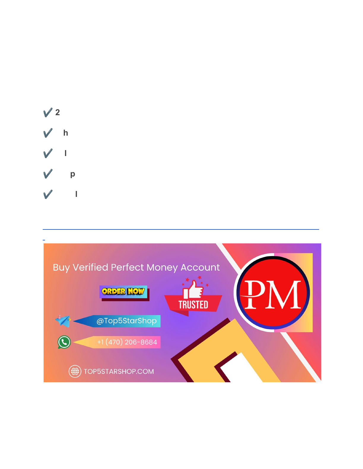 Buy Verified Perfect Money Accounts - Secure and Reliable (2024) ✔ 24 Hours Reply/Contact ✔WhatsApp: +1 (470) 206-8684 ✔ Telegram: @Top5StarShop ✔ Skype: Top5StarShop ✔ Email:top5starshop99@gmail.com Order Now: https://top5starshop.com/product/buy-verified-perfect-money-account / Buy Verified Perfect Money Account & Start making secure online payments with ease. Enjoy fast processing, secure transfers, and fraud protection with our verified accounts. Get started now and start sending money around the world. Buy verified PM from us and get the ease of https://top5starshop.com/product/buy-verified-perfect-money-account/ https://top5starshop.com/product/buy-verified-perfect-money-account/ making payments online with convenience. Our PM accounts are secure and come with a lifetime guarantee. Get your verified account now and enjoy fast, easy, secure transactions! Buy Verified Perfect Money Account. What is PM Account? Perfect Money Account is an online payment system that allows users to securely and conveniently manage their money. It allows them to send, receive, store, and exchange funds in a secure and reliable manner. PM also offers a range of services such as prepaid cards, virtual debit cards, currency exchange services, and integrated merchant solutions. With its easy-to-use interface and low fees structure, PM is the perfect choice for anyone looking for a secure and convenient way to manage their finances. How does Perfect PM work? PM t is an online payment system that allows users to easily and securely transfer money between accounts. It offers a variety of features that make it an ideal choice for those who need to send and receive money quickly and securely. With its low fees, high security, and easy-to-use interface, PM is the perfect solution for those who need to send money around the world. PM Account is a digital payment system that allows users to make secure, convenient, and fast online payments. It is an easy-to-use platform for individuals and businesses that want to send and receive money without the hassle of dealing with banks or other traditional financial institutions. With a PM Account, you can transfer money to anyone in the world within minutes, make purchases online or in-store, and even pay bills with ease. Buy Verified Perfect Money Account. How Do I Open a PM Account? Opening a PM account is a great way to safely store and transfer money online. It’s easy to open an account and get started with the service. With just a few steps, you can be up and running with your new PM in no time. Opening a PM account is a simple process but you need to have the right documents in place. You must provide proof of identity and proof of address in order to open an account. This could be in the form of a passport, driver’s license, or even utility bills. Additionally, you may need to provide additional documents such as bank statements or tax returns depending on your country’s regulations. Having all these documents ready will make the process much easier and faster for you. ✔ 24 Hours Reply/Contact ✔WhatsApp: +1 (470) 206-8684 ✔ Telegram: @Top5StarShop ✔ Skype: Top5StarShop ✔ Email:top5starshop99@gmail.com Order Now: https://top5starshop.com/product/buy-verified-perfect-money-account/ How Do I Verify My PM Account? Verifying a PM account is an important step in ensuring the safety and security of your funds. To verify your account, you need to provide certain documents that prove your identity and address. These documents include a valid government-issued photo ID, proof of address, and proof of payment method. Once these documents are provided, PM will review them and approve or deny the verification process. Once approved, you can start using PM with confidence that your account is secure and protected from fraudulent activities. Can I Use Perfect Money without Verification? The answer is yes – you can use PM without having to go through the verification process. However, before you can use PM without verification, there are certain requirements that must be met. This includes providing proof of identity, such as a valid passport or national ID card, as well as proof of address, such as a utility bill or bank statement. Once you have provided these documents, you will be able to use Perfect Money without the need for further verification. Buy PM Account online Shopping for a PM Account online is now easier than ever. With the advent of technology, you can now purchase a PM right from the comfort of your home. With an online PM Account, you can access all of your funds and payments securely and conveniently. Whether you are looking to make payments or receive money, having a PM is essential for anyone who wants to take advantage of the digital economy. https://top5starshop.com/product/buy-verified-perfect-money-account/ With an online account, you will have access to all the features that come with it such as secure payment processing, faster transaction times and more. So if you want to stay ahead in the digital world, get your own PM Account today! Advantage of PM Account Buy Verified Perfect Money Account. PM Account is an online payment system that provides users with a secure and reliable way to make payments and transfers. It offers several advantages over traditional banking, including low fees, fast transactions, and high security. With PM Account, users can make payments to any person or business in the world with ease. The account also comes with a variety of features such as multi-currency support, instant transfers, and mobile access. This makes it an ideal choice for individuals who need to send money abroad or make online purchases quickly and securely. Conclusion In conclusion, PM is a great way to manage your finances and stay on top of your budget. It offers a secure payment system with low fees, fast transactions and an easy to use interface. With its features such as multi-currency support, user-friendly dashboard and custom