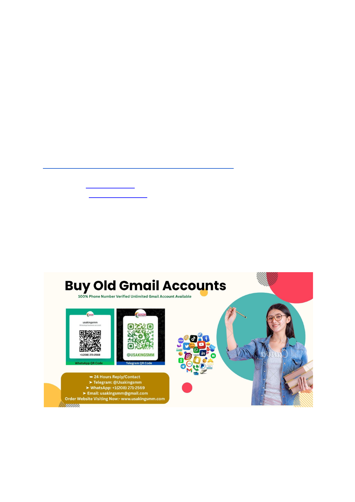 A Step-by-Step Guide-2 to Buy Old Gmail Accounts In today’s digital-driven world, email accounts are more than just a means of communication—they are powerful tools for business growth, marketing, and digital security. Among the numerous email platforms available, Gmail stands out as the preferred choice for professionals and businesses due to its robust features and reliability. If you’re in the market for Gmail accounts, you’ve likely come across the option to buy old Gmail accounts. But what are old Gmail accounts, and why should you consider purchasing them? Let’s explore. Website Visit Now:-Click the link:- https://usakingsmm.com/product/buy-old-gmail-accounts/ ➥ 24 Hours Reply/Contact ➤ Telegram: @Usakingsmm ➤ WhatsApp: +1(208) 271-2569 ➤ Email: usakingsmm@gmail.com Why Buy Old Gmail Accounts? Old Gmail accounts hold value for businesses and marketers due to their established credibility and reliability. These accounts, created years ago, are often perceived as more trustworthy by email filters and online platforms. Here are the key reasons to buy old Gmail accounts: 1. Higher Email Deliverability Old accounts are less likely to be flagged as spam, ensuring your emails reach the intended recipients. This is especially crucial for email marketing campaigns. https://usakingsmm.com/product/buy-old-gmail-accounts/ https://t.me/Usakingsmm https://wa.me/message/LTVXHCQXS7XGI1?src=qr 2. Enhanced Account Credibility Many online platforms, including social media and advertising sites, trust older Gmail accounts more than newly created ones. This can help in building your brand’s authority. 3. Access to Pre-Verified Accounts Buying old Gmail accounts often means acquiring accounts that are already phone-verified. This saves time and ensures seamless use. 4. Ease of Multi-Platform Integration Older accounts are less likely to face restrictions when linked with tools like Google Analytics, Ads, or YouTube, streamlining your marketing efforts. Website Visit Now:-Click the link:- https://usakingsmm.com/product/buy-old-gmail-accounts/ ➥ 24 Hours Reply/Contact ➤ Telegram: @Usakingsmm ➤ WhatsApp: +1(208) 271-2569 ➤ Email: usakingsmm@gmail.com Why Choose Old Gmail Accounts? ● Trusted Reputation: Old Gmail accounts are more credible and less likely to trigger spam filters, boosting trustworthiness in professional communications. ● Enhanced Security: These accounts come with established activity, providing a solid defense against potential security concerns. ● High Deliverability: Perfect for email marketing campaigns, ensuring your messages reach the inbox, not the spam folder. ● Versatile Applications: Ideal for business registration, social media accounts, SEO tools, and online advertising. How do new and old Gmail accounts influence the digital communication system? Gmail accounts gain new functionality. Older accounts have witnessed Google’s innovation firsthand, adapting and offering a unique tool set for any online interaction. Users of old Gmail accounts enjoy a lot of advanced features that have been refined over time. Email has undergone significant transformations since the early days of the internet. Initially, platforms provided basic functions. So, I think you should buy old Gmail accounts for your networking progress. New verified Gmail accounts have the ability to send and receive messages quickly to the vast storage space for emails. Gmail accounts come with features like powerful spam filters, easy integration with other apps, and the ability to access emails from any device. New Gmail accounts provide users with a reliable and user-friendly email platform that enhances productivity and simplifies communication. So, get ready to buy new Gmail accounts. https://usakingsmm.com/product/buy-old-gmail-accounts/ https://t.me/Usakingsmm https://wa.me/message/LTVXHCQXS7XGI1?src=qr How businesses get assistance by Gmail accounts? ● Gmail accounts enable businesses to effectively manage communication. Gmail offers businesses an way of indispensable benefits. ● Its seamless integration with other Google services such as Google Calendar, Drive, and Meet streamlines workflows adds credibility to business correspondence. Email is vital for business talk. ● Teams use it to send messages quickly. Google Workspace boosts team work. Google Calendar and Tasks enhances collaboration and time management. ● Quick access through Gmail ensures that scheduling is tightly interwoven with communication. This synergy ensures better project outcomes and optimal workflow management. ● Gmail’s uptime guarantees businesses stay operational. Critical sectors like healthcare and, finance depend on consistent email access. Why Gmail accounts are invaluable in online applications? Companies and individuals benefit from Gmail new and old accounts in managing online applications. Gmail accounts also help in signing into social media, and expanding their outreach without the hindrance of verification challenges. Old Gmail Accounts thus provide a strategic advantage by impacting deliverability and acceptance rates across online services. If you want to buy new Gmail accounts, place your order at Usakingsmm. Website Visit Now:-Click the link:- https://usakingsmm.com/product/buy-old-gmail-accounts/ ➥ 24 Hours Reply/Contact ➤ Telegram: @Usakingsmm ➤ WhatsApp: +1(208) 271-2569 ➤ Email: usakingsmm@gmail.com Gmail accounts stand as the cornerstone of digital communication. They serve as a virtual passport to a world of networking, professional interaction, and a multitude of online services. Gmail has been shaping the way we connect, with benefits stretching across various sectors. These accounts are integral in networking as they suggest stability and can help forge stronger connections. New Gmail is good but we suggest you to buy aged Gmail accounts. Our Product Features ● Verified Accounts: Fully verified Gmail accounts with recovery options enabled. ● Aged Account
