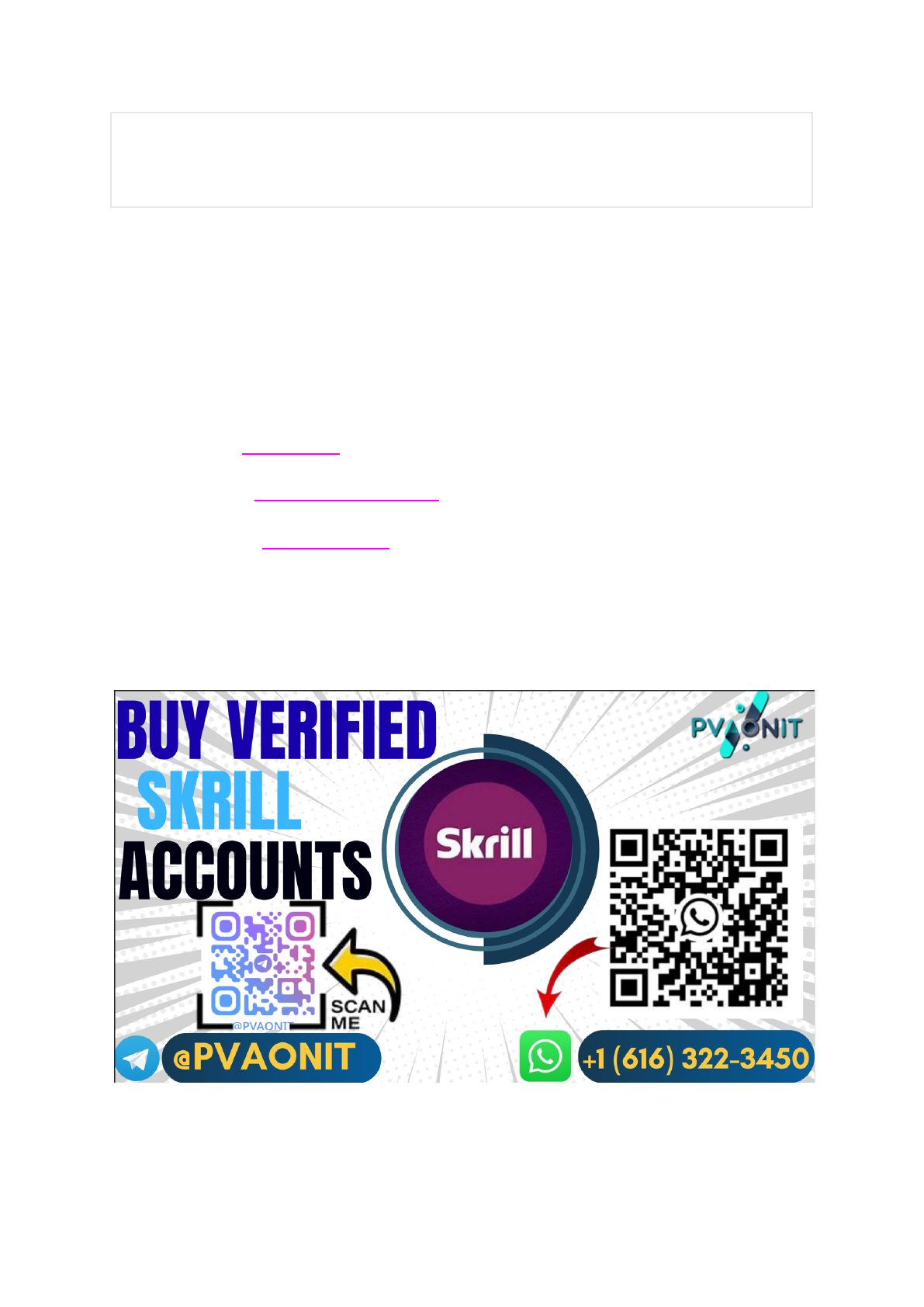 Best Places to Buy Verified Skrill Accounts Online: Top Picks Unlocking the potential of your financial transactions starts with the right tools, and Skrill is one of those essential tools. If you're looking to make your online transactions smoother and more secure, you might be considering purchasing a verified Skrill account. — — — — — — — — — — ➤If you want to more information just knock us– ➤Telegram: @pvaonit ➤WhatsApp: +1 (616) 322–3450 ▣Website link: pvaonit.com — — — — — — — — — — — — — — — — — — — — But where can you find a reliable source? You want assurance that your money is well-spent and that the accounts you buy are safe and legitimate. Here’s where we come in. We’ve scoured the internet to bring you the best places to buy verified Skrill accounts online. This guide is crafted with you in mind, ensuring you not only find what you need but also get the most value for your investment. Dive in to discover trusted vendors, learn insider tips, https://t.me/Pvaonit https://api.whatsapp.com/send?phone=16163223450 https://pvaonit.com and make an informed decision that could transform how you handle money online. Stay with us as we unveil the secrets to a seamless online financial experience. Why Choose Verified Skrill Accounts? Verified Skrill accountsoffer better security. They help keep your money safe. These accounts have fewer limits. You can send and receive more money. This makes them very useful. They also build trust with others. People know your account is real. You can use them for many online payments. A verified account often gets faster support. This is helpful if you have any problems. Many people like these accounts for these reasons. It's smart to get one for online use. Benefits Of Verified Accounts Verified Skrill accounts offer more securityand trust. Users enjoy faster transactions with fewer delays. These accounts help protect against fraudand scams. They offer higher limitsfor transfers and withdrawals. Verified accounts can access special features. This includes exclusive offers and discounts. Verification ensures a smoother experience. Having a verified account can make payments easier. It helps you manage your money better. Verified accounts are recognized by many online shopsand services. This makes buying and selling online simpler. These accounts build trustwith sellers and buyers. Many people prefer verified accounts. They feel safer and more secure. Security Features Of Skrill Skrill uses strong encryptionto keep money safe. Your personal datais protected. No one can see it without permission. Skrill has a two-step verificationprocess. This makes it hard for strangers to access your account. It uses a secure serverto protect transactions. Funds are transferred safely. The company follows strict security rules. This reduces risks. Skrill also has a fraud preventionsystem. It helps detect suspicious activities quickly. Accounts are monitored 24/7. Any unusual activity is flagged. Users receive alerts to stay informed. Your money is always securewith Skrill. Popular Platforms For Purchasing Skrill Accounts Buying verified Skrill accounts can be tough. Many platforms offer these accounts. Some are more trusted than others. Always check reviews before buying. Ratings help find reliable sellers. Ensure the account is verifiedand safe. Payment methods should be secure. Some sites offer quick delivery. Others may take longer. Choose a platform with good support. This helps if problems arise. Look for affordable prices. Compare different platforms for the best deal. Avoid sites with few user comments. This could be risky. — — — — — — — — — — ➤If you want to more information just knock us– ➤Telegram: @pvaonit ➤WhatsApp: +1 (616) 322–3450 ▣Website link: pvaonit.com — — — — — — — — — — — — — — — — — — — — Research is key when buying online. Good platforms have clear policies. They protect your purchase. Refund policiesare important. They ensure you get your money back if needed. Find sites that handle transactions well. Secure paymentoptions are crucial. Keep your details safe. Only buy from trusted sources. This avoids fraud and issues. Factors To Consider When Buying Choose a trusted seller with good reviews. Check if they offer verified Skrill accounts. Verified accounts are more secure and reliable. Look for transparent pricing. Hidden fees can surprise you later. Ensure the account has no past issues. A clean history is important. Customer support should be responsive. Fast help is vital if issues arise. Verify the account's origin. Some countries may have restrictions. Ensure the seller provides necessary documents. These documents prove account ownership. Ask about the account's transaction limits. Low limits may not suit your needs. Make sure the buying process is simple. Complicated steps can be frustrating. Check if the seller offers a money-back guarantee. A guarantee shows confidence in their service. Beware of too-good-to-be-true offers. Such offers are often scams. Always prioritize your safety and security. Stay informed and make smart choices. Top Websites For Buying Skrill Accounts Finding verified Skrill accounts can be tough. Some websites offer safe services. They help buyers get accounts without problems. AccsMarket is one option. They have a good reputation. Customers trust their services. Buyaccs.com is another choice. This site provides reliable accounts. People like their fast service. Accfarm is also worth checking. They sell verified accounts quickly. Many buyers recommend them. Social Tradings is a popular site. They have high-quality accounts. Buyers feel safe using them. SmmPortal has positive reviews too. They offer cheap prices. Many people buy from them. AccsMall sells accounts at good rates. Their customer support is helpful. These sites are trusted by many users. User Reviews And Rat