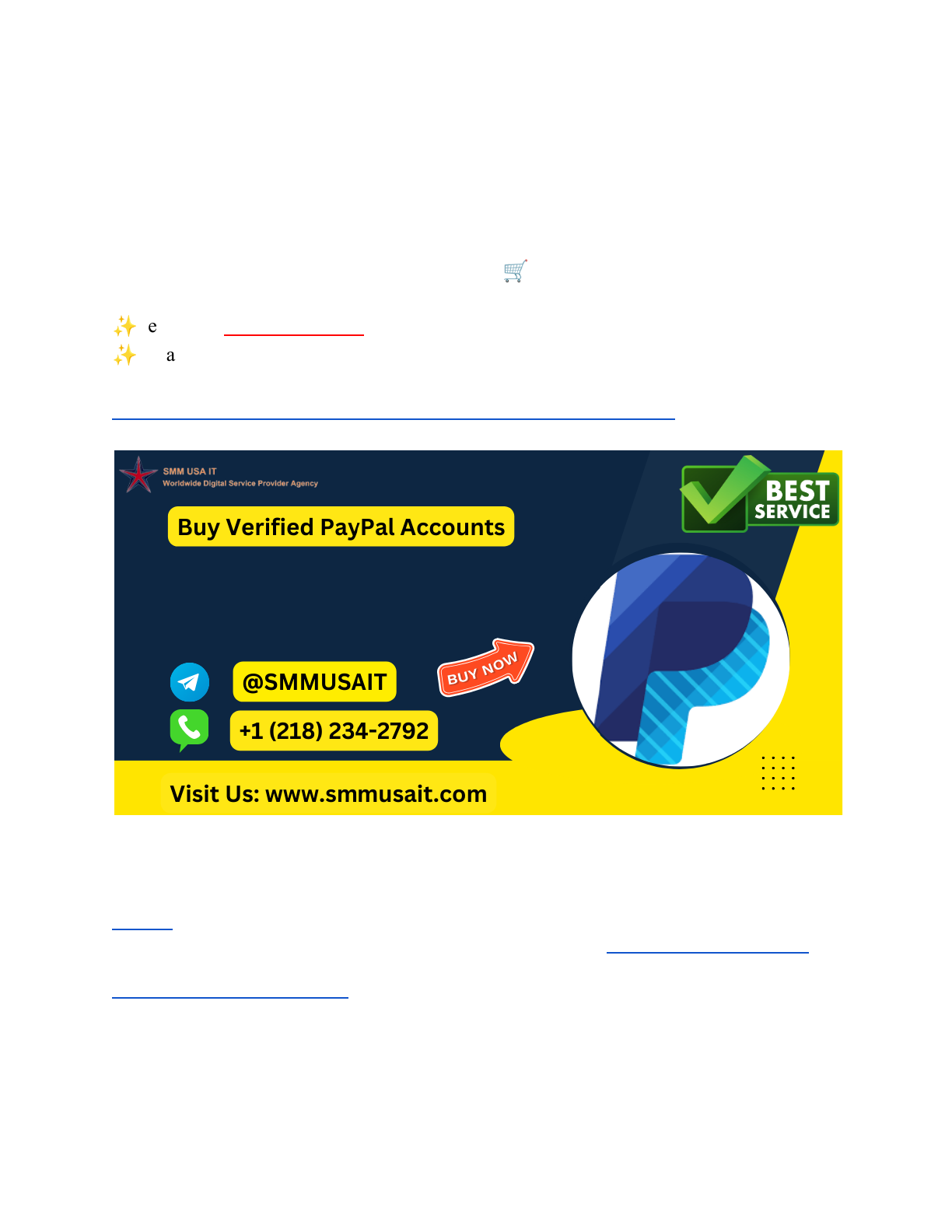 Step-by-Step Guide to Getting a Verified PayPal Account If you Need More help:➥24 Reply/Contact Us :🛒 Feel Free To (Contact Us): ✨Telegram: @SMMUSAIT ✨WhatsApp: +1 (218) 234-2792 More information visit our website: https://smmusait.com/product/buy-verified-paypal-accounts/ Buy Verified PayPal Accounts PayPal is one of the most widely used online payment platforms, offering secure and fast transactions worldwide. Many businesses and individuals require verified PayPal accounts for seamless transactions, increased credibility, and hassle-free withdrawals. If you are looking to buy verified PayPal accounts, this comprehensive guide will provide you with all the essential details. What is a Verified PayPal Account? https://t.me/smmusait https://smmusait.com/product/buy-verified-paypal-accounts/ https://t.me/smmusait https://smmusait.com/product/buy-verified-paypal-accounts/ https://t.me/smmusait A verified PayPal account means that the account holder has successfully linked their bank account, credit/debit card, and confirmed their identity. Verification increases account limits and enhances security. Why Buy a Verified PayPal Account? Purchasing a verified PayPal account offers multiple benefits, including: ● Instant access to a fully functional PayPal account ● Higher transaction limits ● Seamless international transactions ● Reduced restrictions and limitations Types of Verified PayPal Accounts There are different types of verified PayPal accounts available for purchase: 1. Personal Verified PayPal Account – Ideal for individual transactions and online shopping. 2. Business Verified PayPal Account – Suitable for e-commerce, freelancers, and companies handling a high volume of transactions. 3. Merchant PayPal Account – Designed for merchants who accept payments from customers globally. Features of a Verified PayPal Account ● Fully verified with linked bank and card ● Unlimited transaction capability ● Access to PayPal Buyer and Seller Protection ● Multi-currency support ● Secure and encrypted payments How to Choose the Right Verified PayPal Account? When purchasing a verified PayPal account, consider the following factors: ● The country of registration (some accounts have country-specific limitations) ● The level of verification completed ● Whether the account includes email and phone verification ● The seller’s reputation and customer feedback Where to Buy Verified PayPal Accounts? https://smmusait.com/product/buy-verified-paypal-accounts/ https://smmusait.com/product/buy-verified-paypal-accounts/ https://smmusait.com/product/buy-verified-paypal-accounts/ There are several platforms where you can purchase verified PayPal accounts, including: ● Online marketplaces ● Freelance service providers ● Social media forums and groups ● Specialized websites offering digital financial services ● If you Need More help:➥24 Reply/Contact Us :🛒 Feel Free To (Contact Us): ✨Telegram: @SMMUSAIT ✨WhatsApp: +1 (218) 234-2792 More information visit our website: https://smmusait.com/product/buy-verified-paypal-accounts/ Things to Consider Before Buying Before purchasing a verified PayPal account, consider the following: ● Authenticity: Ensure the account is genuinely verified. ● Security: Check if the credentials and details are original. ● Ownership Transfer: Verify that you will receive full access and ownership of the account. ● Seller Reputation: Look for reviews and ratings from previous buyers. How to Buy a Verified PayPal Account Safely? ● Choose a reputable seller with good reviews. ● Request proof of verification before making a payment. ● Ensure you receive login credentials, linked email, and phone details. ● Change all credentials upon receiving the account. Risks of Buying a Verified PayPal Account While buying a verified PayPal account may seem like an easy solution, it comes with risks such as: ● Account Freezing or Suspension: PayPal may suspend accounts that violate their policies. ● Fraudulent Sellers: Some sellers may provide fake or stolen accounts. ● Security Issues: If the account is not securely transferred, you risk losing access. https://t.me/smmusait https://smmusait.com/product/buy-verified-paypal-accounts/ https://smmusait.com/product/buy-verified-paypal-accounts/ https://smmusait.com/product/buy-verified-paypal-accounts/ How to Avoid Scams When Buying a Verified PayPal Account ● Purchase only from trusted sources. ● Avoid offers that seem too good to be true. ● Use escrow services for payment. ● Check the account’s history before purchasing. Alternatives to Buying Verified PayPal Accounts Instead of purchasing a verified account, consider these alternatives: ● Creating and Verifying Your Own Account: Follow PayPal’s official process for verification. ● Using PayPal Business Services: If you need additional features, upgrade to a PayPal Business account. ● Exploring Other Payment Gateways: Consider alternatives like Stripe, Skrill, or Wise. Legal Considerations of Buying a Verified PayPal Account Purchasing a PayPal account may violate PayPal’s Terms of Service. If PayPal detects an unusual login or ownership transfer, the account might get restricted or banned. Steps to Secure a Bought PayPal Account ● Change all login credentials immediately. ● Update the registered phone number and email. ● Enable Two-Factor Authentication (2FA). ● Avoid suspicious transactions that may raise red flags. How Much Does a Verified PayPal Account Cost? The price of a verified PayPal account depends on factors such as: ● The country of registration ● Account verification level ● Seller reputation ● Additional features (e.g., linked bank account, transaction history) Prices generally range from $50 to $500 depending on these factors. https://smmusait.com/product/buy-verified-paypal-accounts/ https://smmusait.com/product/buy-verified-paypal-accounts/ https://smmusait.com/product/buy-ve