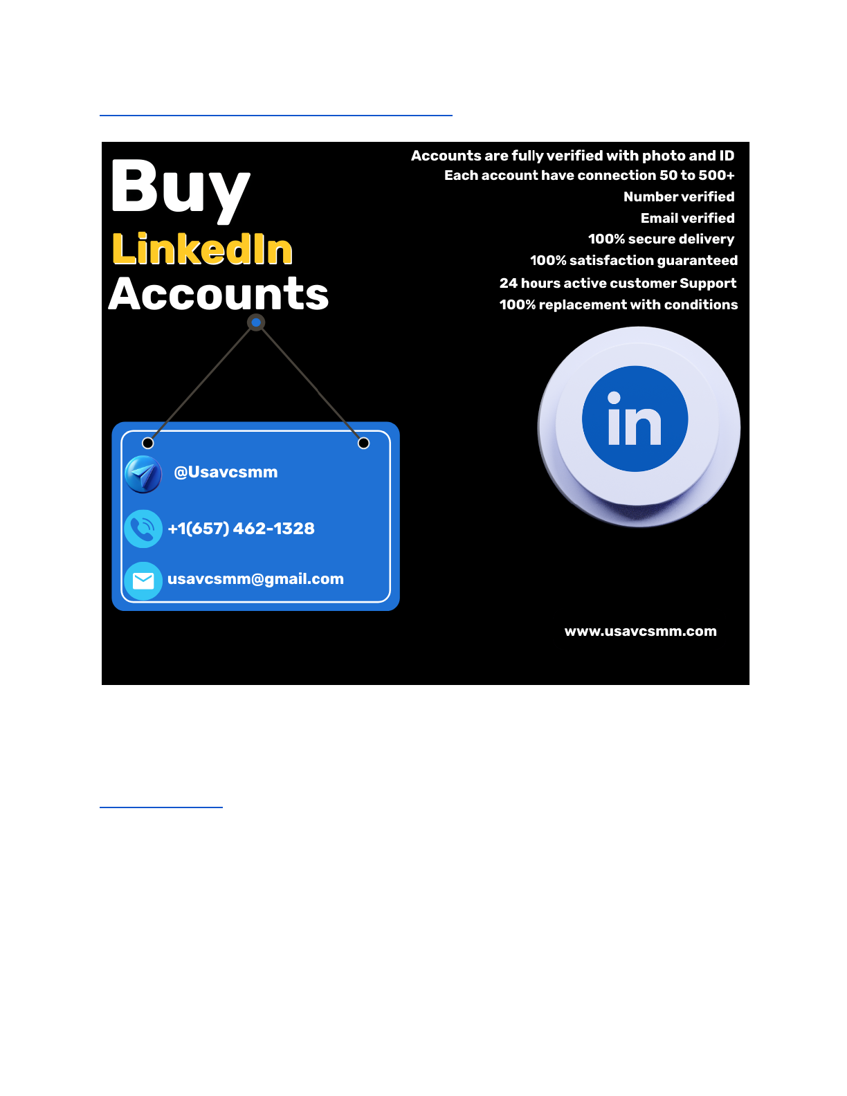 “The Truth About Buying LinkedIn Accounts in 2025” In today’s digital age, networking is more crucial than ever. With over 900 million users, LinkedIn stands as the premier platform for professionals looking to connect and grow their businesses. But what if you could elevate your presence on this powerful network with just a few clicks? Buy Linkedin Accounts can be a game-changer for entrepreneurs and marketers alike. Imagine stepping into conversations that matter or reaching out to potential clients with profiles that exude credibility from day one. If you’re ready to unlock new opportunities and supercharge your outreach efforts, let’s explore how acquiring verified LinkedIn accounts can transform your business strategy! If you want to know more. knock Us ➤E-mail : usavcsmm@gmail.com ➤WhatsApp : +1(657) 462-1328 ➤Telegram : @Usavcsmm https://usavcsmm.com/product/buy-linkedin-accounts/ https://usavcsmm.com/product/buy-linkedin-accounts/ Visit now: https://usavcsmm.com/product/buy-linkedin-accounts/ Importance of BuyLinkedin Accounts Buying LinkedIn accounts is increasingly becoming a strategic move for businesses aiming to enhance their online presence. With established profiles, you can tap into valuable networks effortlessly. Buy Linkedin Accounts These accounts come equipped with connections and endorsements that lend instant credibility. A well-curated profile showcases professionalism, making it easier to attract potential clients or partners. Furthermore, having multiple accounts allows teams to engage in outreach campaigns more effectively. You can diversify your marketing efforts across different industries without starting from scratch. The importance of these accounts extends beyond mere visibility; they also facilitate trust-building within your target audience. When people see an active and credible profile associated with your brand, they’re more likely to engage. Investing in verified LinkedIn accounts sets the foundation for meaningful connections that drive business growth and open doors to new opportunities. Buy LinkedIn Accounts – Verified & Ready for Professional Use Buy Linkedin Accounts that are verified and ready for professional use can transform your networking strategy. These accounts come pre-verified, ensuring you don’t waste time navigating the complexities of account creation. With a verified profile, you enhance your credibility instantly. Colleagues and potential clients recognize authenticity right away. This trust is paramount in today’s competitive marketplace. Additionally, these profiles often have established connections and histories, giving you an immediate advantage in outreach efforts. You’ll find it easier to engage with industry leaders and potential partners who may overlook new or unproven profiles. Utilizing ready-to-use Buy Linkedin Accounts saves valuable time while allowing you to focus on building relationships rather than starting from scratch. In this fast-paced digital landscape, efficiency is key to staying ahead of competitors. Purchase LinkedIn Profiles – Aged, Trusted & Business-Ready https://usavcsmm.com/product/buy-linkedin-accounts/ https://usavcsmm.com/product/buy-linkedin-accounts/ When you decide to purchase LinkedIn profiles, opting for aged and trusted accounts can significantly elevate your business strategy. These profiles often come with an established network, providing immediate access to connections that can lead to valuable partnerships. Aged accounts typically have a history of engagement. This means they carry more credibility in the eyes of potential clients or collaborators. With a well-maintained profile, businesses can showcase their expertise effectively. Investing in business-ready LinkedIn profiles also streamlines outreach efforts. You won’t need to start from scratch; instead, leverage existing connections for efficient marketing campaigns. Furthermore, these profiles are generally pre-verified and active, which shortens the time it takes to integrate them into your professional ecosystem. By choosing quality over quantity, you ensure that each account contributes meaningfully to your overall objectives. Buy Bulk LinkedIn Accounts – Ideal for B2B Marketing & Outreach Buying bulk LinkedIn accounts can significantly enhance your B2B marketing efforts. With a wider reach, you can connect with potential clients and partners more efficiently. These accounts allow for targeted outreach, letting businesses engage with specific industries or demographics seamlessly. Imagine the power of engaging multiple leads simultaneously. Bulk purchases also save time and resources. Instead of creating profiles from scratch, companies gain access to pre-established networks ready for interaction. Moreover, having numerous LinkedIn accounts helps diversify connection strategies. You can tailor content and messaging to different segments while maintaining an authentic presence across platforms. This approach not only boosts visibility but also fosters relationships within niche markets. As a result, you build credibility faster in competitive landscapes where first impressions matter immensely. Buy Linkedin Accounts for Sale – Real Profiles, Fast Delivery When you’re looking to enhance your professional presence, verified LinkedIn accounts are a game changer. These profiles come with authenticity and credibility that can elevate your networking efforts. Real profiles ensure that you’re connecting with genuine users. This reduces the risk of fake connections and enhances engagement within your industry. Fast delivery means you won’t have to wait long to get started on building valuable relationships. Buy Linkedin Accounts allows for immediate access to an established network. It’s like having a head start in the competitive business landscape where trust matters most. https://usavcsmm.com/product/buy-linkedin-accounts/ https://usavcsmm.com/product/buy-linkedin-accounts/ Whether you’re