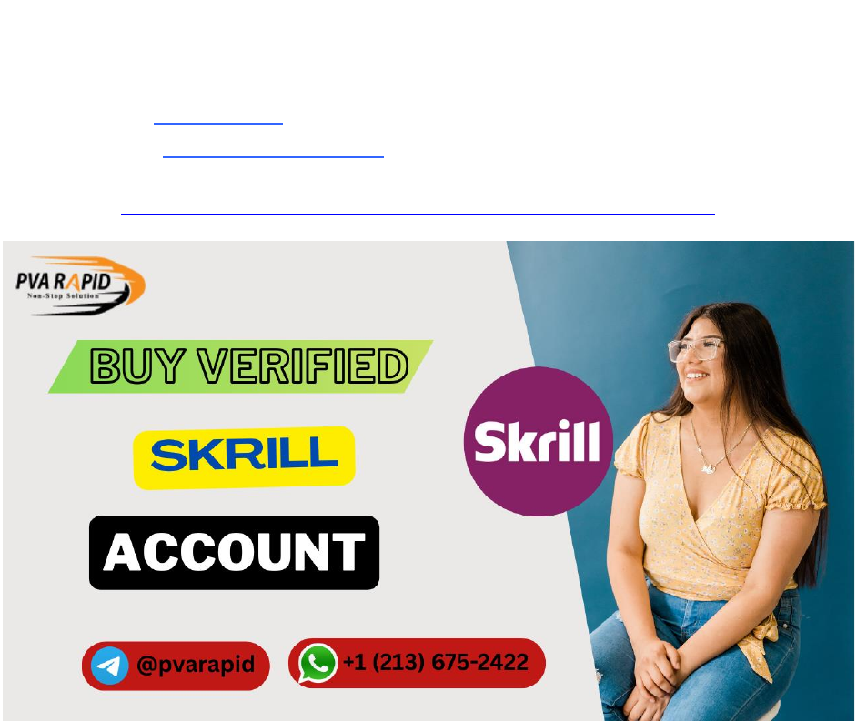 Buy Verified Skrill Accounts Are you navigating the world of online transactions and feeling a bit lost? You’re not alone. With countless digital wallets available, it can be overwhelming to find one that suits your needs. Enter Skrill—a powerful tool for managing money effortlessly across borders. Whether you're looking to send or receive payments, buy verified Skrill accounts can open up a world of convenience and security. But what exactly is Skrill? How does it work? And why should you consider buying a verified account instead of just signing up for one yourself? Stick around as we dive deep into everything you need to know about this platform, from setting up an account to maximizing its potential benefits. Your journey toward smooth and secure online transactions starts here! If you want to more information just contact now. 24 Hours Reply/Contact ➤E-mail: pvarapid@gmail.com ➤Telegram: @pvarapid ➤WhatsApp: +1 (213) 675-2422 Visit Now: https://pvarapid.com/product/buy-verified-skrill-accounts/ Skrill Ki? Beginner-er Complete Guide https://t.me/pvarapid https://wa.link/8kcmo8 https://pvarapid.com/product/buy-verified-skrill-accounts/ Skrill is a digital wallet that allows users to send, receive, and manage money online. It’s designed for convenience and security in today’s fast-paced financial landscape. With Skrill, you can fund your account via bank transfers or credit cards, making it easy to move funds globally. The platform supports various currencies, enabling seamless transactions across borders. One of the standout features is its low transaction fees compared to traditional banking methods. This makes it an attractive option for freelancers and businesses alike. Additionally, Skrill offers a prepaid card linked directly to your account for quick access to funds at physical stores or ATMs worldwide. With robust security measures in place, including two- factor authentication and encryption technologies, users can feel confident when managing their finances on this platform. Whether you're shopping online or sending money overseas, Skrill simplifies the process while keeping your information safe. What is Skrill? A Complete Beginner’s Guide Skrill is an online payment platform designed to facilitate digital transactions. It allows users to send and receive money globally with ease. Originally launched in 2001, Skrill has evolved into a widely-used service for individuals and businesses alike. Users can create accounts without complicated procedures, making it accessible for beginners. With Skrill, you can manage multiple currencies effortlessly. This feature appeals to frequent travelers or anyone conducting international business. The platform offers various tools for online shopping, gaming, and even cryptocurrency trading. With robust security measures in place, your financial data remains protected throughout all transactions. Mobile accessibility enhances its usability. The app provides on-the-go account management so you can stay connected wherever you are. Whether you're looking to make purchases or transfer funds quickly, Skrill simplifies the process while keeping user experience at the forefront. Where to Buy Verified Skrill Accounts?[pvarapid] When looking to buy verified Skrill accounts, it’s essential to choose reliable sources. Start by exploring online marketplaces that specialize in digital services. These platforms often offer a range of options. https://pvarapid.com/product/buy-verified-skrill-accounts/ https://pvarapid.com/product/buy-verified-skrill-accounts/ https://pvarapid.com/product/buy-verified-skrill-accounts/ https://pvarapid.com/product/buy-verified-skrill-accounts/ Another route is joining forums or communities focused on e-commerce and payment solutions. Members frequently share trusted sellers who provide verified accounts. Always check reviews before making a purchase. This can save you from potential scams and ensure you're getting a legitimate account. You might also consider reaching out to professional services that offer account verification assistance. They can guide you through the process while ensuring compliance with Skrill's regulations. Remember, it's crucial to prioritize security when purchasing online financial tools like Skrill accounts. How to Open a Skrill Account Step by Step Opening a Skrill account is straightforward. Start by visiting the official Skrill website. Look for the “Sign Up” button, usually prominently displayed. Next, select your country and preferred currency. This step is crucial as it determines how you’ll handle transactions later on. After that, fill in your personal details like name, email address, and phone number. Ensure accuracy to avoid issues during verification. You will then create a secure password. Choose something memorable yet strong—combining letters, numbers, and symbols works well. Once you’ve submitted your information, check your email for a verification link from Skrill. Click on this link to confirm your account. Log in to your new account and complete any additional verification steps required by Skrill for added security before you begin using it for transactions. How to Use a Verified Skrill Account? Using a verified Skrill account is straightforward. First, log in to your account on the Skrill website or app. Once inside, you can easily navigate through the dashboard. Here, you’ll find options for sending money, making payments, and managing currencies. To send funds, simply select “Send Money,” enter the recipient’s email address or phone number, and specify the amount. Choose your preferred payment method before confirming. For receiving payments, share your unique Skrill email with clients or friends. They can then transfer money directly to your account. Always keep an eye on transaction fees outlined in your dashboard. This will help manage costs effectively. Remember to enable two-factor authentication for added security when using your ver