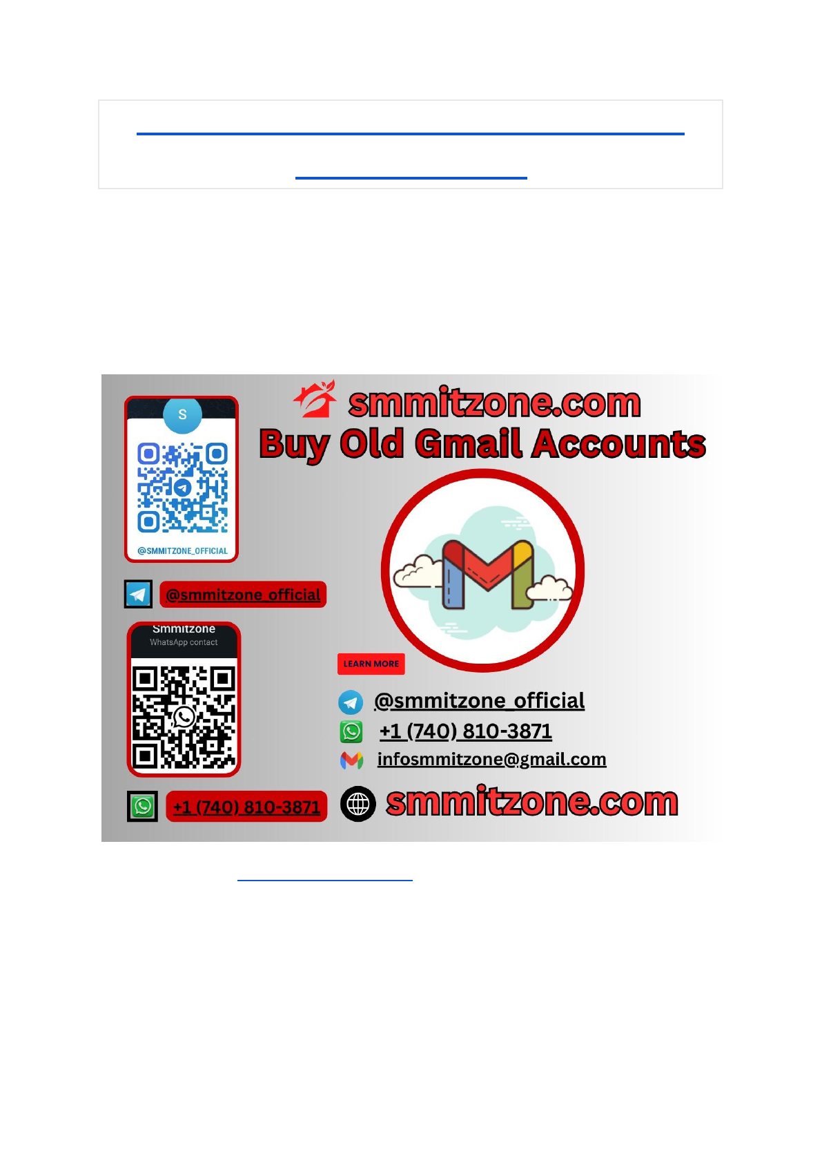Best Practices for Managing Old Email Accounts Safely 24-Hour Reply/Contact Email: infosmmitzone@gmail.com Telegram: @smmitzone_official WhatsApp: +1 (740) 810-3871 https://smmitzone.com/product/buy-old-gmail-accounts/ Are you looking to buy old Gmail accounts but don’t know where to start? You’re not alone. Having an aged Gmail account can unlock many benefits—from improving your online credibility to boosting your marketing efforts. But how do you make sure you get a reliable account that fits your needs? You’ll discover everything you need to know before buying old Gmail accounts. By the end, you’ll feel confident making a smart choice that saves you time and helps you reach your goals faster. Keep reading to find out how! https://smmitzone.com/product/buy-old-gmail-accounts/ https://smmitzone.com/product/buy-old-gmail-accounts/ https://smmitzone.com/product/buy-old-gmail-accounts/ Benefits Of Old Gmail Accounts Old Gmail accounts offer several benefits for personal and business use. These accounts have a history that can help you in many ways. They come with trust and credibility that new accounts lack. Old accounts can save time and effort. They often have a verified email age and activity. This helps in social media, marketing, and online projects. Using old Gmail accounts can improve your online presence quickly. Seo Advantages Of Old Gmail Accounts Search engines trust older accounts more than new ones. This trust can help improve your website's ranking. Old Gmail accounts have a good reputation with Google. This reputation can help in link building and promotions. Improved Email Deliverability Old Gmail accounts have established sending history. This reduces the chance of emails landing in spam. Good deliverability helps your messages reach more people. It increases the success of email marketing campaigns. Access To Established Contacts Some old Gmail accounts come with built-in contacts. These contacts can help expand your network fast. It saves time on building new connections from scratch. This is useful for business outreach and collaboration. Better Account Recovery Options Old accounts often have linked recovery information. This makes account recovery easier if you forget passwords. It adds security and peace of mind. You avoid losing access to important emails and data. Trust And Credibility For Online Activities Old Gmail accounts look more legitimate to websites. They help you avoid verification blocks and restrictions. This is important for signing up on new platforms. It helps build trust faster with online services. How Account Age Builds Trust Account age plays a key role in building trust online. Older Gmail accounts seem more reliable. They show a long history of consistent use. People and systems trust accounts that are not brand new. Buying old Gmail accounts can give an instant edge. These accounts have a record that proves they are genuine. Trust grows naturally with time. It helps in business, marketing, and communication. What Makes Older Gmail Accounts More Trusted? Older accounts have a history of activity. They have sent emails, received messages, and stayed active. This history tells email providers the account is real. It lowers the chance of the account being marked as spam. How Age Affects Email Deliverability Email systems look at account age to decide if messages are safe. New accounts often face strict checks. Older accounts get more freedom to send emails. This improves the chance that emails reach the inbox. Why Businesses Prefer Aged Accounts Businesses need trust to connect with customers. Old accounts build credibility fast. They help avoid blocks and bans. This means smoother communication and better results. Boosting Reach With Established Emails Boosting reach with established emails means using older Gmail accounts to grow your audience faster. These accounts have a history that new accounts lack. This history helps build trust with email services and users. It can improve your email delivery and open rates. Old Gmail accounts often have better sender reputation. This reputation reduces the chances of your emails landing in spam folders. Using these accounts can increase your message visibility. This makes it easier to reach more people quickly. Improved Email Deliverability Established Gmail accounts have a proven track record. Email providers recognize these accounts as trustworthy. Emails sent from them are less likely to be blocked. This leads to higher inbox placement rates. Your messages reach the intended audience more reliably. Enhanced Credibility With Recipients Recipients see older email addresses as more credible. They may be less suspicious of spam. This encourages them to open and read your emails. A familiar or established email address builds user confidence. It helps create a positive impression from the start. Access To Existing Contacts And History Some old Gmail accounts come with existing contacts. This can save time building a new list. Past email history can provide useful insights. You can analyze what content worked well before. This helps tailor your messages to the audience’s interests. 24-Hour Reply/Contact Email: infosmmitzone@gmail.com Telegram: @smmitzone_official WhatsApp: +1 (740) 810-3871 https://smmitzone.com/product/buy-old-gmail-accounts/ Where To Find Old Gmail Accounts Finding old Gmail accounts can help with various online needs. These accounts often have established histories and trusted profiles. They can be useful for marketing, social media, or business purposes. Knowing where to find them is the first step. Several places offer old Gmail accounts safely and reliably. Choosing the right source ensures account quality and security. Here are some common options to explore. Online Marketplaces For Old Gmail Accounts Online marketplaces specialize in selling old Gmail accounts. They list accounts with detailed descriptions and age. Buyers can select accounts based on their needs. These 