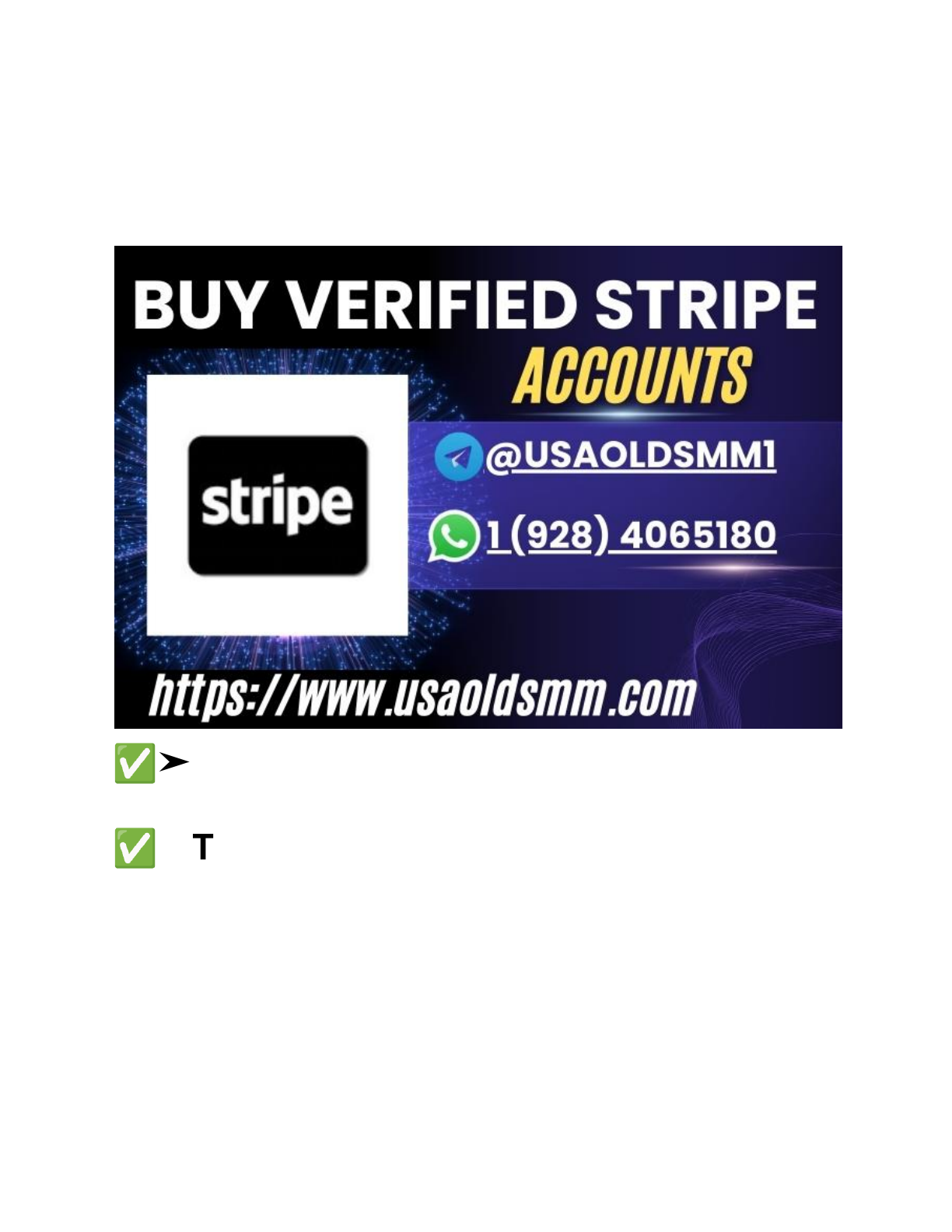 The Benefits of Stripe Accounts in the Digital Economy ✅➤WhatsApp:+1 (928) 4065180 ✅➤Telegram: @usaoldsmm1 In today’s rapidly evolving financial landscape, Stripe has emerged as one of the most reliable and forward-thinking platforms for processing online payments. The benefits of having a Stripe account go far beyond simple transactions. For individuals, startups, and established businesses alike, Stripe offers a powerful and scalable solution that supports modern commerce across borders and industries. Its appeal lies in the flexibility, trust, and technological sophistication it brings to anyone looking to build or manage a business in the digital world. One of the most obvious advantages of using a Stripe account is the ability to accept payments globally with relative ease. Stripe supports payments in a wide variety of currencies and payment methods, enabling businesses to sell their products or services to customers in different countries without requiring separate bank accounts or complex currency conversion systems. This makes it particularly appealing for digital creators, freelancers, and entrepreneurs who operate in global markets and need a streamlined way to receive money across borders. Beyond its global reach, Stripe offers a seamless user experience that is highly developer-friendly. Unlike many traditional payment processors that require clunky integrations or long onboarding periods, Stripe was designed with modern infrastructure in mind. Developers can easily integrate Stripe into websites, apps, or platforms using simple APIs, allowing them to customize payment experiences, automate invoicing, and manage subscriptions without external support. This level of control gives businesses the ability to build tailored solutions that align perfectly with their business models. Another major benefit of Stripe accounts is the reliability and speed with which payments are processed. In a world where cash flow is critical—especially for small businesses and startups—Stripe enables users to receive payouts to their linked bank accounts on a regular schedule. Many users appreciate that funds can be deposited within a few business days, sometimes even faster, depending on their region and account history. This speed ensures businesses can maintain liquidity and meet operational needs without waiting weeks for payments to clear. Security is another area where Stripe accounts shine. Stripe takes compliance and customer data protection seriously, operating under strict global standards for security and privacy. The platform uses advanced encryption methods, fraud detection systems, and regulatory frameworks to ensure that payment data is safe from unauthorized access. For users, this translates into peace of mind, knowing that both their data and their customers’ data are handled with care and protected against evolving digital threats. Stripe also offers transparency in its pricing model, which is appreciated by many users. Rather than locking users into confusing fee structures or long-term contracts, Stripe provides a straightforward per-transaction pricing system. This predictability makes it easier for businesses to forecast their expenses and build pricing strategies that account for payment processing costs. As a result, business owners can focus on growth without worrying about hidden charges or sudden shifts in fees. Another valuable aspect of Stripe accounts is the platform's suite of business tools that go beyond basic payment acceptance. Users can access features like automated billing, recurring subscriptions, fraud monitoring, and even financial reporting. Stripe’s dashboard gives users a detailed view of their earnings, transactions, customer activity, and dispute resolutions. This centralization of information helps businesses make better decisions, track revenue in real-time, and respond quickly to issues when they arise. The ability to handle everything in one place reduces the need for third-party systems and makes operations more efficient. Moreover, Stripe supports a wide range of business models. Whether someone is running a traditional online store, offering subscription-based services, launching a donation platform, or managing a marketplace with multiple vendors, Stripe has functionality to support all of these use cases. This makes it not only versatile but also future-proof for growing businesses. As companies evolve or diversify, they can continue using Stripe without the need to migrate to a new payment system. Stripe’s support for innovation is also a strong benefit. The platform is constantly evolving, adding new features and expanding to new regions. This commitment to improvement means users benefit from regular updates, new tools, and better performance over time. Whether it’s support for new payment methods, mobile optimization, or integrations with other platforms, Stripe keeps pace with technological advancements and business needs. Perhaps one of the most underrated benefits of Stripe accounts is the platform’s commitment to compliance and legal alignment. Stripe takes on much of the regulatory burden associated with handling payments, including anti-money laundering policies, know-your-customer procedures, tax handling in certain jurisdictions, and data protection compliance. This means users can focus on their business without worrying about falling out of step with legal requirements in multiple countries. For freelancers and individual service providers, a Stripe account can be a gateway to professional legitimacy. Being able to accept card payments, issue invoices, and send professional receipts can enhance a personal brand and build trust with clients. It’s not just about getting paid—it’s about presenting oneself as a professional and credible operator in the marketplace. Stripe enables this through its clean interface, secure reputation, and ease of use. In many regions, Stripe also supports mobile-first operat