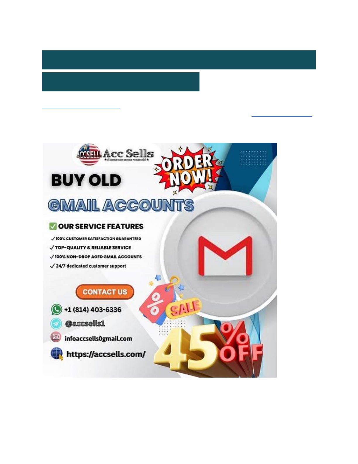 Top 63 Best Sites to Buy Old Gmail Accounts in This Era Buying old Gmail accounts might seem like a weird idea at first. Why would you pay for something you can just create in seconds, right? But here’s the deal — an aged Gmail account isn’t the same as a brand-new one. People buy old Gmail accounts because they carry trust, history, and deliverability that new accounts don’t have. Whether you’re into email marketing, want to avoid Google’s annoying verifications, or need a reliable account for business tools, old Gmail accounts can save you time, effort, and stress. In this guide, we’re going to break it all down in plain English. No fancy terms. No complicated tech talk. https://accsells.com/product/buy-old-gmail-accounts/ https://accsells.com/product/buy-old-gmail-accounts/ What Is an Aged Gmail Account? An aged Gmail account is just what it sounds like — a Gmail that was created a long time ago. It might be one year old. Or five. Or even ten. The older it is, the more valuable it becomes, especially in the digital world. You’re not buying the brand — you’re buying the trust and history attached to that account. Why Do People Buy Old Gmail Accounts? Let’s keep it real — you can create a Gmail in 30 seconds. But a brand-new Gmail comes with limits: ● Sends often go to spam ● You get low sending limits ● Phone verification is required ● You may get flagged for suspicious activity easily But old Gmail accounts? They’ve been used. They’ve been logged in from normal devices over time. They’re like a person with a clean record — Google doesn’t treat them as suspicious. Here’s why people want them: 🔹 Email Deliverability Want to send cold emails for sales? Newsletters? Aged accounts have a better chance of landing in someone’s inbox. 🔹 Bypass Phone Verification Old accounts usually already passed phone or recovery verification. That means fewer obstacles when logging in or using other services. 🔹 Trust With Google Services Old accounts are less likely to be flagged when you use them for YouTube, Google Ads, Drive, or business tools. 🔹 More Features Unlocked Some services unlock limits gradually. Aged accounts may already have higher sending limits, full access to Gmail features, and are accepted faster by third-party tools. How Old Is “Old Enough”? https://accsells.com/product/buy-old-gmail-accounts/ Most people agree: ● 1–2 years old: Decent. Good for beginners. ● 3–5 years old: Trusted and stable. ● 5+ years old: Highly trusted. Premium accounts. In general, anything over a year is helpful, but the older, the better — as long as the account hasn’t been abused. What Can You Use an Aged Gmail Account For? Here are common uses: PurposeWhy It HelpsEmail MarketingHigher inbox rates, fewer bouncesCold OutreachLess chance of getting blocked or flaggedYouTubeOlder accounts = faster monetization setupGoogle AdsLess chance of suspensionSEO / BacklinkingUse aged accounts to create trusted profilesTool Sign-UpsAvoid frequent CAPTCHA or re-verification What Makes an Aged Gmail Account “Good”? Not all old Gmail accounts are the same. Some are high-quality, while others are basically useless or risky. Here’s what a good one looks like: ✅ Hasn’t been flagged or banned ✅ No suspicious login history ✅ Password, recovery phone, and email can be changed ✅ Two-factor authentication is OFF (so you can set your own) ✅ Clean inbox — no spam abuse ✅ Can send and receive emails Avoid anything that looks fishy or you can’t fully control. Things to Check Before You Buy Before you hand over your money (or crypto, or whatever you’re using), check these points: 🔸 Creation Date — Ask for proof of the age. 🔸 Full Access — You must be able to change the password and recovery details. https://accsells.com/product/buy-old-gmail-accounts/ 🔸 Clean History — No signs of spam, no login alerts, no strange country logins. 🔸 Activity — Some light activity (sent emails, logins) is actually good. Shows it’s “warmed up.” 🔸 Language/Region — Make sure the account is usable for your country or language. Step-by-Step: What to Do After Buying Let’s say you’ve bought an aged Gmail account. Here’s exactly what to do next: ✅ Step 1: Log In From a Safe Device Use a clean browser or private window. Don’t log in from a VPN right away — it might trigger alerts. ✅ Step 2: Change the Password Go to settings, change the password immediately. ✅ Step 3: Update Recovery Info Add your own phone number and backup email. Remove the old ones. ✅ Step 4: Enable 2FA Two-factor authentication keeps your account safe. Use Google Authenticator or SMS. ✅ Step 5: Start Using It Slowly Don’t send 100 emails on day one. Gmail will think it’s a spam bot. Use it gently for a few days. How to “Warm Up” the Gmail Account “Warm up” means making the account look natural before heavy use. Here’s how: 📧 Send 5–10 emails per day to real addresses 📥 Open and reply to a few incoming emails ⏱ Wait at least 7–14 days before serious activity 🔄 Use services like Drive, Docs, or Calendar 🧭 Log in regularly from one IP address https://accsells.com/product/buy-old-gmail-accounts/ You’re basically teaching Gmail: “Hey, I’m a real user.” Red Flags — Signs of a Bad Account Stay away from: 🚩 Password can’t be changed 🚩 Recovery info not editable 🚩 Location locked (e.g., only usable from one country) 🚩 Login asks for instant verification 🚩 Inbox full of spam or banned messages If any of these happen — don’t use it. You’ll lose access or worse. Risks of Buying Aged Gmail Accounts We won’t lie — there are risks. Here’s the honest list: RiskWhat Could HappenGoogle Detects TransferAccount gets locked or bannedBad SellerYou never get access, or it’s fakeLegal IssuesNot illegal, but breaks Google’s termsPhishing HistoryOld account used in scams may be blacklistedRecov