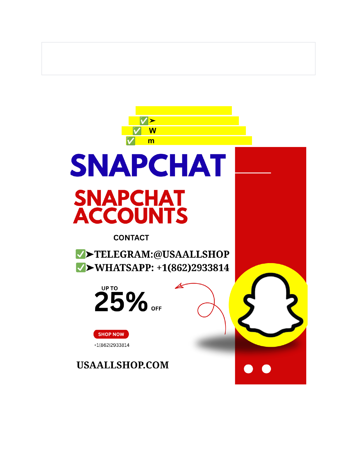 What is the Easiest Way to Buy a Snapchat Account, Step by Step? Ultimate Guide Looking to buy a Snapchat account but don’t know where to start? You’re in the right place. 1. 24 Hours Reply/Contact 2. ✅➤Telegram:@usaallshop 3. ✅➤Whatsapp: +1(862)2933814 4. ✅➤Email: usaallshop@gmail.com Finding the easiest way to buy a Snapchat account can save you time, money, and hassle. In this guide, you’ll get a simple, step-by-step plan that anyone can follow—no tech skills needed. By the end, you’ll feel confident and ready to make your purchase safely and smoothly. Keep reading to discover how to get your perfect Snapchat account without stress or confusion. Legal And Safety Considerations Buying a Snapchat account might seem like a quick way to start with an established profile. Yet, it carries many legal and safety concerns. Understanding these concerns helps avoid serious trouble. This section explains the main points about the risks, platform rules, and privacy protection involved in buying Snapchat accounts. Risks Of Buying Accounts Purchasing Snapchat accounts is risky. Many accounts are sold without proper ownership proof. This can lead to losing access or facing legal problems. Some risks include: ● Account Suspension:Snapchat can detect account sales and ban those accounts. ● Scams:Sellers might disappear after payment, or sell hacked accounts. ● Privacy Issues:Previous owners may still have access to your account data. ● Fake Followers:Bought accounts often have fake or inactive followers, reducing value. Here is a simple table showing common risks: Risk Description Potential Impact Account Ban Violation of Snapchat’s terms by selling accounts Loss of account and investment Scam Fake sellers or stolen accounts Financial loss and no account access Privacy Breach Previous owner accesses your data Data theft and security risks Platform Policies https://usaallshop.com Snapchat's terms of serviceclearly forbid buying or selling accounts. Violating these rules can cause: ● Permanent account suspension ● Loss of all data and contacts ● Blocked access to Snapchat services Snapchat wants users to create their own accounts for safety and trust. Here are key points from Snapchat’s policies: 1. Accounts must be created by the real user. 2. Sharing or selling accounts is prohibited. 3. Users must not impersonate others. 4. Violations lead to strict penalties. Breaking these rules risks more than losing the account. It may affect your reputation online and cause legal issues. Protecting Your Privacy Privacy is critical when handling Snapchat accounts. Buying an account can expose personal data or lead to hacking. Follow these tips to stay safe: ● Verify Seller Identity:Only trust verified and reliable sellers. ● Change Passwords Immediately:Update passwords right after purchase. ● Enable Two-Factor Authentication:Add extra security to your account. ● Check Account History:Ask for proof of account ownership and activity. ● Avoid Sharing Sensitive Info:Never share passwords or verification codes. Use strong passwords with a mix of letters, numbers, and symbols: Example: SnapUser!2024Secure Protecting your privacy reduces chances of hacking and fraud. Always be cautious and prioritize your data security. Where To Find Snapchat Accounts For Sale Finding the easiest way to buy a Snapchat account starts with knowing where to find reliable sellers. Many platforms offer Snapchat accounts for sale, but choosing the right place ensures safety and good value. This section explains the best sources to find Snapchat accounts for sale. Understanding these options helps you make an informed decision quickly and securely. Online Marketplaces Online marketplaces are popular spots to buy Snapchat accounts. These platforms host many sellers and offer a wide range of accounts with different follower counts and activity levels. Buyers enjoy the convenience of browsing several options in one place. Some key features of online marketplaces include: ● Variety:Accounts with different niches and follower sizes. ● Reviews:Seller ratings help judge trustworthiness. ● Secure payment:Many marketplaces offer escrow services to protect buyers. Here is a simple table showing popular online marketplaces: Marketplace Features Payment Options PlayerUp Verified sellers, escrow service PayPal, Credit Card EpicNPC Large user base, reviews PayPal, Cryptocurrency Fameswap Focus on social media accounts Credit Card, PayPal Check seller feedback carefully. Look for accounts with a clear history and active followers. Avoid deals that seem too cheap. These may be scams or fake accounts. Social Media Groups Social media groups on platforms like Facebook and Telegram offer another place to find Snapchat accounts for sale. These groups often have direct contact with sellers, allowing quick communication. Advantages of social media groups include: ● Direct deals:No middleman means better prices. ● Community feedback:Group members can share their buying experiences. ● Varied options:Different account types and prices. Use these tips when joining groups: 1. Search for groups named “Snapchat accounts for sale” or similar. 2. Read group rules before posting or messaging. 3. Ask for proof of account ownership. 4. Negotiate prices safely. Always be cautious with payment methods. Use platforms that offer buyer protection if possible. Avoid sending money before verifying the account details. Specialized Forums Specialized forums are websites dedicated to buying and selling social media accounts. These forums attract experienced buyers and sellers, making them a trusted place for Snapchat accounts. Key features of specialized forums: ● Expert community:Members often share tips and warnings. ● Detailed listings:Sellers provide full account stats and screenshots. ● Moderation:Forums usually have rules to reduce scams. Popular forums include: ● Reddit’s r/AccountMarket ● PlayerUp foru