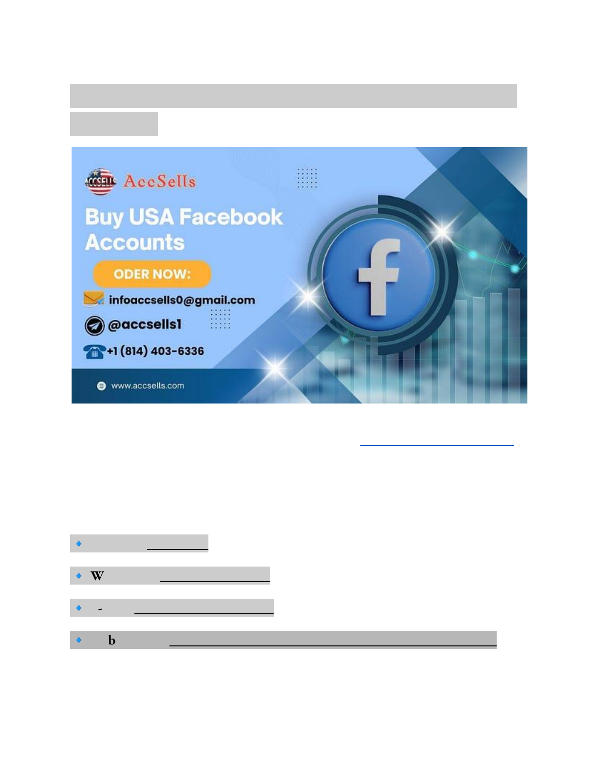 Buy USA Facebook Accounts for Marketing & Ads 2025 Are you looking to jumpstart your Facebook marketing in the USA? Maybe you want instant access to multiple accounts for campaigns, outreach, or ads. Buying USA Facebook accounts can save you hours of setup time, especially if you’re targeting American audiences. But hold on — there’s more to it than just buying and logging in. In this guide, we’ll cover everything from benefits, risks, safety tips, and trusted sellers to help you make informed choices. 24 Hours Reply/ Contact : – 🔹 Telegram: @accsells1 🔹 WhatsApp: +1 (814) 403–6336 🔹 E-mail: infoaccsells0@gmail.com 🔹 Website Visit: https://accsells.com/product/buy-usa-facebook-accounts/ What Are USA Facebook Accounts? https://accsells.com/product/buy-usa-facebook-accounts/ https://t.me/accsells1 https://api.whatsapp.com/send?phone=18144036336 mailto:infoaccsells0@gmail.com https://accsells.com/product/buy-usa-facebook-accounts/ Definition and Key Features A USA Facebook account is a Facebook profile or page that is registered in the United States. These accounts are valuable because they appear local to American audiences, which can help boost ad engagement and reach. Types of Facebook Accounts Personal Accounts Personal accounts are standard profiles used for connecting with friends or family. Businesses sometimes use these for small-scale campaigns or testing. Business Accounts Business accounts are linked to Facebook Business Manager, Pages, and Ads Manager. They allow for large-scale advertising and team management. Verified & Aged Accounts ● ● Aged Accounts: Older accounts often have a higher trust score with Facebook, which may prevent account bans during ad campaigns. ● ● ● Verified Accounts: Accounts with verification (phone/email) are considered more credible, reducing the risk of restrictions. ● 24 Hours Reply/ Contact : – 🔹 Telegram: @accsells1 🔹 WhatsApp: +1 (814) 403–6336 🔹 E-mail: infoaccsells0@gmail.com 🔹 Website Visit: https://accsells.com/product/buy-usa-facebook-accounts/ Why Buy USA Facebook Accounts? https://accsells.com/product/buy-usa-facebook-accounts/ https://t.me/accsells1 https://api.whatsapp.com/send?phone=18144036336 https://accsells.com/product/buy-usa-facebook-accounts/ Instant Access for Marketing Creating multiple accounts from scratch is slow and sometimes risky. Buying accounts lets you start campaigns instantly. Aged Accounts for Higher Trust Older accounts are less likely to trigger Facebook’s automated spam checks, improving ad approval rates. Bulk Accounts for Campaigns If you need multiple accounts for outreach or testing, buying in bulk is easier than creating them individually. Verified Accounts for Safety & Credibility Accounts with verified emails or phone numbers are less likely to get flagged, keeping your marketing smooth and reliable. Benefits of Buying USA Facebook Accounts Save Time and Effort Forget about waiting days for new accounts to age or be verified. You can jump straight into advertising. Better Ad Approval Rates Facebook tends to trust aged and verified accounts more, reducing ad disapproval rates. Increased Outreach & Engagement With multiple accounts, you can reach wider audiences, join groups, and manage pages effectively. Hassle-Free Campaign Management Some sellers provide accounts pre-linked to Business Manager or Ads Manager, saving setup time. How to Choose the Right Seller Reputation & Reviews Always buy from verified sellers with real reviews. Platforms like AccSells.com provide trustworthy accounts. Delivery Time & Support Check if the seller offers fast delivery and customer support in case of login or access issues. Payment Options & Refund Policies Make sure the seller has secure payment methods and clear refund policies to avoid scams. Risks of Buying Facebook Accounts Policy Violations & Suspensions Facebook’s terms forbid buying/selling accounts. Purchased accounts can be suspended if detected. Fake or Compromised Accounts Some accounts may be fake, previously banned, or compromised, risking security or ad bans. Security & Privacy Concerns Prior users may still have recovery access, so always secure the account immediately after purchase. Step-by-Step Guide to Using a Purchased Account Logging In Safely Use secure devices and networks to log in. Avoid shared computers or public Wi-Fi. Changing Passwords & Security Settings Immediately change passwords, enable two-factor authentication, and update recovery info. Setting Up Ads and Pages Link the account to Business Manager, create Pages, and configure Ads Manager for campaigns. 24 Hours Reply/ Contact : – 🔹 Telegram: @accsells1 🔹 WhatsApp: +1 (814) 403–6336 🔹 E-mail: infoaccsells0@gmail.com 🔹 Website Visit: https://accsells.com/product/buy-usa-facebook-accounts/ Best Practices for Safe Purchasing Verify Seller & Account History Ask about account age, verification, and past usage to avoid suspended or flagged accounts. Enable Two-Factor Authentication This adds an extra layer of protection to prevent unauthorized access. Use Escrow or Secure Payment Options Avoid sending money directly; use trusted platforms that offer escrow services. Top Platforms to Buy USA Facebook Accounts AccSells.com Overview AccSells.com is a trusted platform providing aged and verified Facebook accounts for marketers and businesses, with fast delivery and customer support. Other Trusted Marketplaces https://t.me/accsells1 https://api.whatsapp.com/send?phone=18144036336 https://accsells.com/product/buy-usa-facebook-accounts/ https://accsells.com/product/buy-usa-facebook-accounts/ Other platforms include UseViral, SidesMedia, and Growthoid, offering verified accounts with secure payment and reliable reviews. How to Maximize Account Performance Consistent Posting & Engagement Keep accounts active by posting regularly and interacting with followers. Targeting the Right Audience Focus on relevant American audiences using Fa