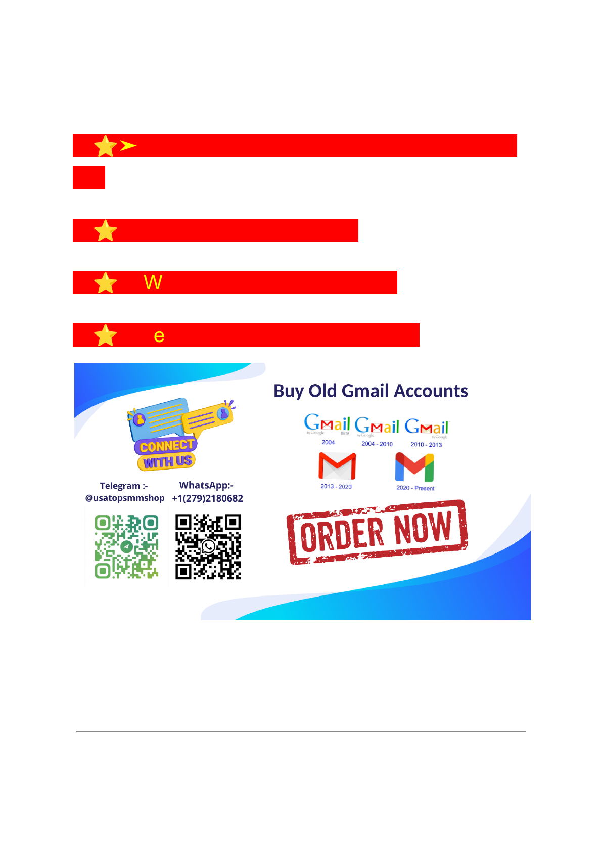 Buy Old Gmail Accounts – A Complete Guide ➤⭐➤ If you want to more information just knock us– ➤⭐➤ 24 Hours Reply/Contact ➤⭐➤ WhatsApp: +1(279)2180682 ➤⭐➤ Telegram :- @usatopsmmshop Gmail, Google's flagship email service, has become a vital tool for both personal and professional communication since its launch in 2004. With billions of users globally, a Gmail account is practically essential in today’s digital world. Whether you're a marketer, business owner, or digital entrepreneur, buying old Gmail accounts can offer advantages like improved deliverability, trust, and access to Google services. Here’s everything you need to know. Why Buy Old Gmail Accounts? Older Gmail accounts are often seen as more trustworthy due to their age and established history. They tend to perform better in terms of email deliverability and are less likely to be flagged as spam. Businesses often purchase aged Gmail accounts to: ● Build credibility in email marketing campaigns ● Access other linked Google services (Drive, YouTube, Ads, etc.) ● Maintain privacy or anonymity ● Recover accounts for business continuity ● Manage multiple operations or projects with separate inboxes How to Buy an Old Gmail Account ➤⭐➤ If you want to more information just knock us– ➤⭐➤ 24 Hours Reply/Contact ➤⭐➤ WhatsApp: +1(279)2180682 ➤⭐➤ Telegram :- @usatopsmmshop Purchasing aged Gmail accounts is a straightforward process. You can obtain them from trusted providers who specialize in selling verified accounts. Here’s how it typically works: 1. Submit a Request – Choose the type and quantity of Gmail accounts you want. 2. Verification – The provider may verify your details to prevent misuse. 3. Payment – Pay via PayPal, crypto, or credit/debit cards depending on the seller’s options. 4. Delivery – Receive instant or scheduled delivery of login credentials. Types of Gmail Accounts Available for Sale There are different categories of Gmail accounts based on user needs: ● Aged Gmail Accounts – Created years ago, with or without activity history. ● Phone Verified Accounts (PVA) – Verified using a unique phone number, ensuring security. ● Business Gmail Accounts – Linked to G Suite/Google Workspace. ● Bulk Gmail Accounts – Sold in large quantities for agencies or marketing purposes. ● Gmail Accounts with Profile Details – Come with pre-filled names, addresses, or photos. Pricing for Aged Gmail Accounts ➤⭐➤ If you want to more information just knock us– ➤⭐➤ 24 Hours Reply/Contact ➤⭐➤ WhatsApp: +1(279)2180682 ➤⭐➤ Telegram :- @usatopsmmshop The cost depends on several factors: ● Age of the Account – Older accounts are generally more expensive. ● Verification Status – Phone verified or two-step accounts may cost more. ● Country of Origin – US, UK, and Canadian accounts often carry a premium. ● Account Activity – Accounts with usage history or attached services (YouTube, Drive) are more valuable. On average, aged Gmail accounts can start at $5–$20 each, with discounts available on bulk purchases. Can You Buy Gmail Accounts Without a Phone Number? ➤⭐➤ If you want to more information just knock us– ➤⭐➤ 24 Hours Reply/Contact ➤⭐➤ WhatsApp: +1(279)2180682 ➤⭐➤ Telegram :- @usatopsmmshop Yes, it's possible to purchase old Gmail accounts that do not require immediate phone verification. However, it’s recommended to secure your new Gmail with 2FA (Two-Factor Authentication) or link it to a phone number for added security. How to Use Purchased Gmail Accounts Safely If you decide to buy Gmail accounts, follow these best practices: ● Change Passwords Immediately ● Enable Two-Factor Authentication (2FA) ● Avoid Suspicious Activity (mass emails, spam) ● Use Secure Devices and VPNs ● Keep Login Info Safe This will help prevent getting the account locked or flagged by Google. Where to Buy Old Gmail Accounts ➤⭐➤ If you want to more information just knock us– ➤⭐➤ 24 Hours Reply/Contact ➤⭐➤ WhatsApp: +1(279)2180682 ➤⭐➤ Telegram :- @usatopsmmshop Look for verified vendors that specialize in digital accounts. Some providers offer features like: ● Instant delivery ● Multiple location options (USA, India, UK, etc.) ● Custom profiles and bulk order support ● High-quality, unused Gmail accounts Be cautious when dealing with third-party sellers. Always check for reviews, refund policies, and communication responsiveness. Buying Gmail Accounts in Bulk If you're scaling operations or managing multiple marketing campaigns, buying Gmail accounts in bulk can be cost-effective. Reputable providers offer quantity discounts and fast delivery for: ● Bulk Gmail Accounts USA ● Aged Gmail Accounts for Marketing ● Gmail Accounts with Phone Numbers ● Verified Business Gmail Accounts Can You Recover Your Old Gmail Account Instead? ➤⭐➤ If you want to more information just knock us– ➤⭐➤ 24 Hours Reply/Contact ➤⭐➤ WhatsApp: +1(279)2180682 ➤⭐➤ Telegram :- @usatopsmmshop Yes, if you lost access to your Gmail account, try Google's recovery options first. If you remember your last password or recovery email, you can usually get it back. Enable recovery methods like 2FA and security questions to protect your account from being compromised again. Final Thoughts Buying old Gmail accounts can be a strategic move for digital marketers, business owners, or anyone needing aged and trusted email addresses. Whether you're looking for individual accounts or need to purchase in bulk, ensure you're buying from a reliable source and take steps to use the accounts responsibly. If you're ready to buy aged Gmail accounts today, make sure to choose a provider that guarantees security, fast delivery, and responsive customer support. Buy Old Gmail Accounts – A Complete Guide ➤⭐️➤ If you want to more information just knock us– ➤⭐️➤ 24 Hours Rep