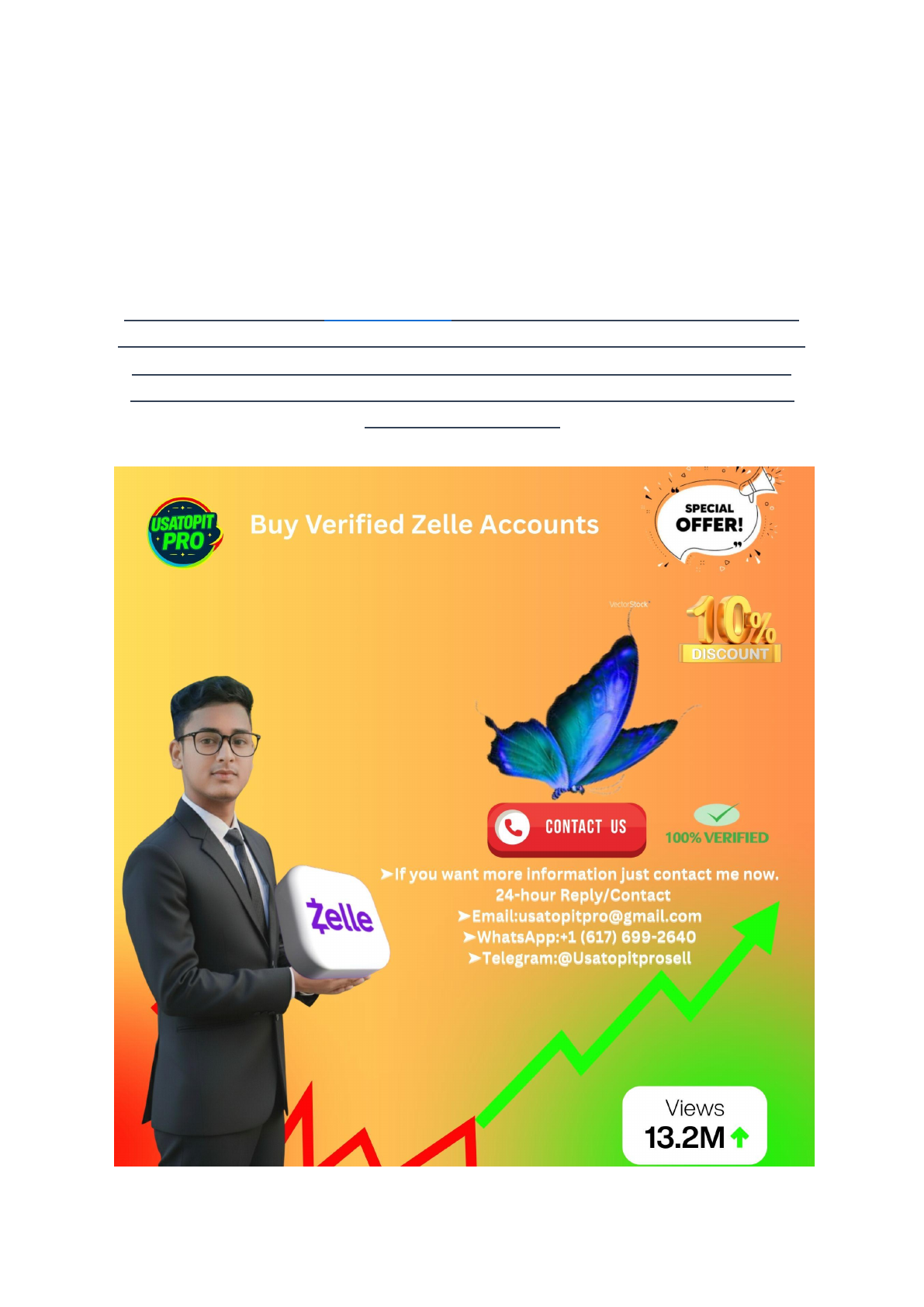 Zelle Limits & Verification Explained — What You Need to Know The demand for verified Zelle accounts in the United States has jumped in recent years. As digital payments grow more common, people want fast and trusted ways to send and receive money. Zelle fills that need for individuals, freelancers, and even small businesses. But as demand grows, some try to skip the wait and buy verified Zelle accounts. https://usatopitpro.com/?post_type=product&p=357&preview=true Zelle’s popularity has led to a thriving market for these accounts, but this shortcut comes with risks. People interested in buying a verified Zelle account need to think about legal and safety factors first. There are real risks, from banking issues to fraud and even fines. Let’s break down what a verified Zelle account is, why someone might want to buy one, and what to watch out for in this complicated market. What Are Verified Zelle Accounts? A verified Zelle account is more than just a sign-up. It’s an account linked to a real person, with identity, email, and bank account information checked by Zelle’s system. This process lets users send and receive money with confidence. Verified accounts come with extra trust and security. That’s important, since Zelle lets users transfer money in seconds. For buyers, a verified account promises fewer holds, higher limits, and less risk of getting flagged for suspicious activity. Common use cases include: ● Freelancers who need instant payments ● Small business owners managing customer invoices ● E-commerce sellers wanting reliable payment tools ● People locked out of their main bank accounts Most buyers want speed and security, especially if their own accounts have been restricted. Zelle’s Verification Process Explained Zelle makes sure users are real people by checking: 1. Identity Verification: You must provide valid personal details, like your name and address. 2. Email Check: Each account needs a unique, working email address. 3. Bank Account Link: The account must be connected to a U.S. bank account. 4. Two-Factor Authentication: Some banks require extra security steps, adding a layer of protection. https://usatopitpro.com/?post_type=product&p=357&preview=true https://usatopitpro.com/?post_type=product&p=357&preview=true https://usatopitpro.com/?post_type=product&p=357&preview=true Zelle’s system looks for odd patterns or mismatches. If something seems off, they can freeze the account or slow down transfers. That’s why getting past these checks isn’t simple, and why verified accounts are in high demand. Who Needs to Buy Verified Zelle Accounts? Not everyone has the patience or ability to pass Zelle’s checks. Some people face urgent needs or roadblocks that make buying attractive. ● New small businesses may need a payment channel while setting up their official company info. ● Gig workers who lost access to their main Zelle account might need a backup. ● People in restricted industries could have trouble with regular verification. ● Online sellers may want extra accounts to handle customer payments or spread risk. ● Anyone who lost banking privileges due to errors or disputes could seek a verified account to stay in business. While these scenarios are common, it’s important to weigh the real risks and consequences. Risks and Considerations When Purchasing Verified Zelle Accounts Buying a verified Zelle account might sound easy, but this shortcut often has hidden costs. Before risking your money, know the legal, ethical, and financial issues. Table: Risks of Buying a Verified Zelle Account Legal and Ethical Implications Buying and selling Zelle accounts usually breaks Zelle’s terms of service. U.S. banks and regulators frown on this practice, seeing it as a way to skirt the rules. If the original account owner reports a sale, buyers risk getting kicked off Zelle, losing their funds, or facing banking bans. Under U.S. law, trading verified financial accounts can even lead to fines or worse if the account is linked to fraud or money laundering. Banks keep detailed records and cooperate with legal investigations. You might https://usatopitpro.com/?post_type=product&p=357&preview=true r now, but long-term trouble could wait around the corner. ➤If you want more information just contact me now. 24-hour Reply/Contact ➤Email:usatopitpro@gmail.com ➤WhatsApp:+1 (617) 699-2640 ➤Telegram:@Usatopitprosell https://wa.me/16176992640 https://t.me/Usatopitprosell How to Spot and Avoid Common Scams The market for verified Zelle accounts is crowded with scammers. Many claim to sell “ready-to-use” accounts but disappear after payment, or deliver accounts that get frozen soon after use. Warning signs of a scam include: ● No verifiable contact info: Sellers who hide their identity or only use encrypted chat apps. ● Pressure tactics: Demands for quick payment or stressing “last chance” deals. ● Too-good-to-be-true offers: Prices much lower than market average. ● Refusal to use safe escrow: Reputable sellers agree to safe, third-party payment methods. Best practices to protect yourself: ● Ask for proof of verification, like screenshots with recent activity. ● Use secure payment and escrow services when possible. ● Check reviews and reputation before dealing with any seller. ● Don’t share personal info with unknown sources. Remember, if your purchased account gets flagged, you could be locked out with money left inside and no way to recover it. Zelle and banks rarely help with accounts bought outside the usual process. Conclusion Buying verified Zelle accounts in the USA is tempting for those who want quick access to fast digital payments. While verified accounts help users send and receive money securely, the risks of buying one are high. Legal issues, banking bans, and scams are common problems. U.S. laws and Zelle’s terms make it risky for both buyers and sellers. If you need access to and verify your own account. For busine