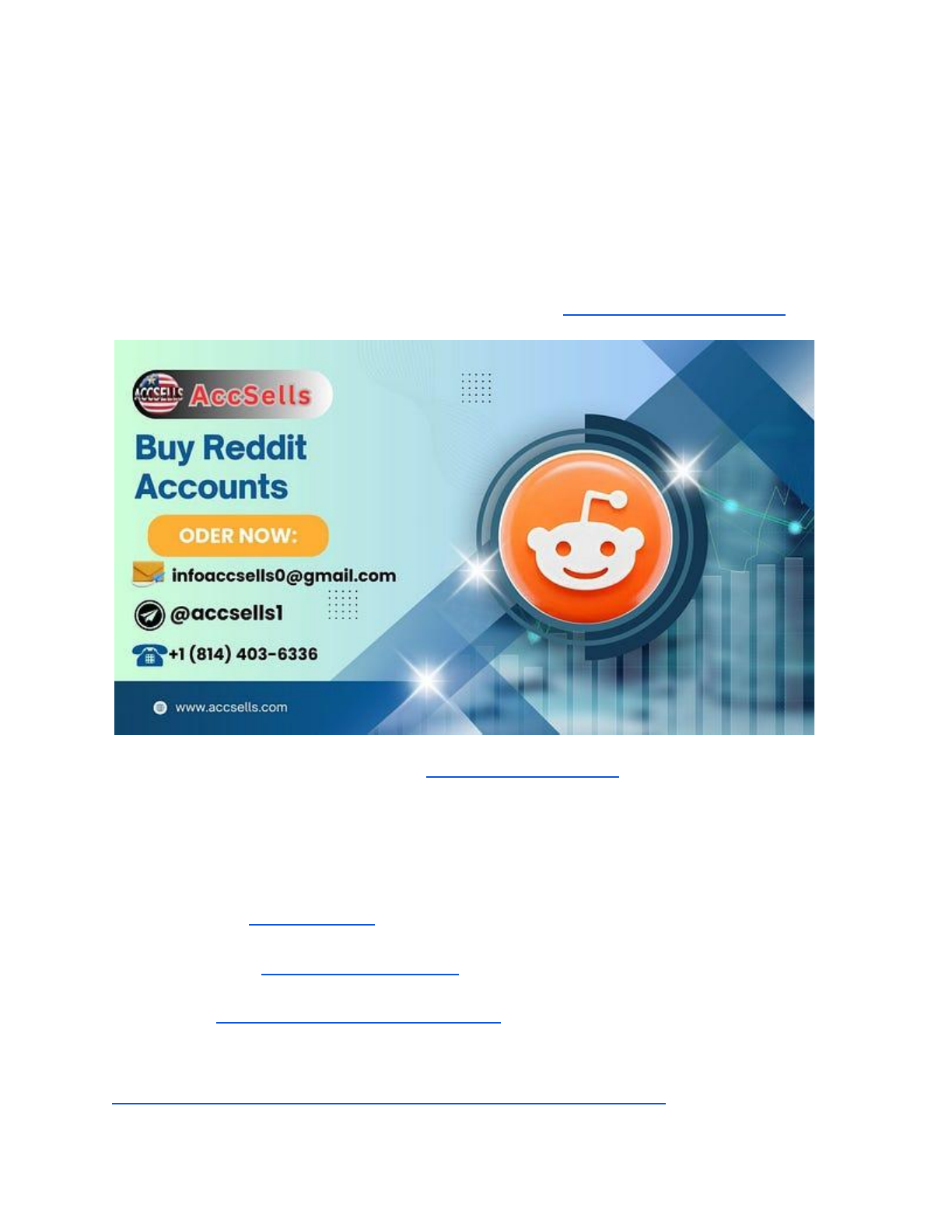 Top 5 Providers to Buy Reddit Accounts Safely Reddit is a vast platform where users share content, engage in discussions, and build communities. One of the key metrics that measure a user’s influence on Reddit is Karma. Want to know the most reliable source for buying Reddit Accounts? If You want to more information just contact now 24 Hours Reply/ Contact : – ⇅ Telegram: @accsells1 ⇅ WhatsApp: +1 (814) 403–6336 ⇅ E-mail: infoaccsells0@gmail.com ⇅ Website Visit: https://accsells.com/product/buy-reddit-accounts/ https://accsells.com/product/buy-reddit-accounts/ https://accsells.com/product/buy-reddit-accounts/ https://t.me/accsells1 https://api.whatsapp.com/send?phone=18144036336 mailto:infoaccsells0@gmail.com https://accsells.com/product/buy-reddit-accounts/ https://accsells.com/product/buy-reddit-accounts/ For businesses and individuals looking to leverage Reddit for marketing, buying Reddit accounts with high Karma can be a strategic move. This post delves into various aspects of buying Reddit Karma accounts, including benefits, risks, and best practices. What is Reddit Karma? Reddit Karma is a score that reflects a user’s contributions to the platform. It is earned through upvotes on posts and comments. Higher Karma indicates a more reputable and active user. Karma is divided into post Karma and comment Karma. Post Karma is earned when users upvote your posts, while comment Karma comes from upvotes on your comments. Both types of Karma contribute to your overall score. Benefits of Buying Reddit Karma Accounts Buying Reddit Karma accounts can provide several advantages. It can give you an instant boost in credibility. High Karma accounts are often perceived as more trustworthy. For businesses, it can enhance marketing efforts. A high Karma account can help in promoting products or services more effectively. It can also increase engagement and visibility. https://accsells.com/product/buy-reddit-accounts/ How to Choose a Reliable Seller Choosing a reliable seller is crucial. Look for trusted Reddit account providers. Check reviews and testimonials. Ensure the seller offers verified Reddit accounts. PVA Reddit accounts (phone-verified accounts) are more secure. Verify the account’s history and activity. Risks Involved There are risks involved in purchasing Karma accounts. One major risk is getting scammed. Always buy from verified Reddit accounts sellers. Another risk is account suspension. Reddit has strict policies against buying and selling accounts. Violating these can lead to bans. Legal Implications Buying Reddit accounts can have legal implications. Reddit’s terms of service prohibit account resale. Violating these terms can result in legal action. It’s important to understand the legal risks. Consult with a legal expert if necessary. Ensure you are aware of all potential consequences. How to Verify the Authenticity of a Karma Account Verifying the authenticity of a Karma account is essential. Check the account’s activity history. Look for consistent engagement. Verify the account’s Karma score. Ensure it matches the seller’s claims. Use tools to check for fake engagement. Pricing The pricing of Reddit Karma accounts varies. Factors include the amount of Karma and account age. Established Reddit accounts with high Karma are more expensive. Compare prices from different sellers. Look for competitive rates. Ensure you get value for your money. How to Transfer Ownership of a Reddit Account Transferring ownership of a Reddit account involves several steps. First, change the account’s email address. Ensure the new owner has access. Next, update the password. Make sure the new owner can log in. Finally, transfer any linked services or subscriptions. Best Practices for Using Purchased Karma Accounts Using purchased Karma accounts requires best practices. First, avoid suspicious activity. Reddit monitors for unusual behavior. Engage genuinely with the community. Post relevant content. Avoid spamming or excessive self-promotion. How to Avoid Getting Banned on Reddit Avoiding a ban on Reddit is crucial. Follow Reddit’s rules and guidelines. Avoid buying Reddit bot accounts. Engage in meaningful discussions is important on Reddit. Avoid controversial topics. Report any suspicious activity to Reddit admins. Alternatives to Buying Reddit Karma Accounts There are alternatives to buying Reddit Karma accounts. One option is Reddit Karma farming. This involves earning Karma organically. Another option is using Reddit marketing services. These services can help boost engagement. They can also assist in growing your account. How to Increase Karma Organically Increasing Karma organically is possible. Post high-quality content. Engage with popular subreddits. Comment on trending posts. Provide valuable insights. Avoid spamming or low-effort posts. Common Scams in the Reddit Karma Market The Reddit Karma market has common scams. One scam is selling fake accounts. These accounts have artificially inflated Karma. Another scam is account hacking. Scammers may steal your account. Always buy from trusted Reddit account providers. How to Maintain Anonymity When Buying Accounts Maintaining anonymity when buying accounts is important. Use a secure payment method. Avoid sharing personal information. Use a VPN for added security. Ensure your transactions are private. Protect your identity at all costs When you buy a Reddit Account with Karma, the value of the Reddit Account is dictated by its Age and the amount of Karma it has. Below we will explain what this means and why it matters. Age — This is the most straightforward statistic that we look at. The older a Reddit Account is, the more valuable it becomes. Karma — Karma is the equivalent of likes/dislikes that you see on many other social media platforms. Karma is basically the sum of upvotes and downvotes that a Reddit Account has received. The thing that makes Reddit unique is that Reddit differientiates between Karma you 