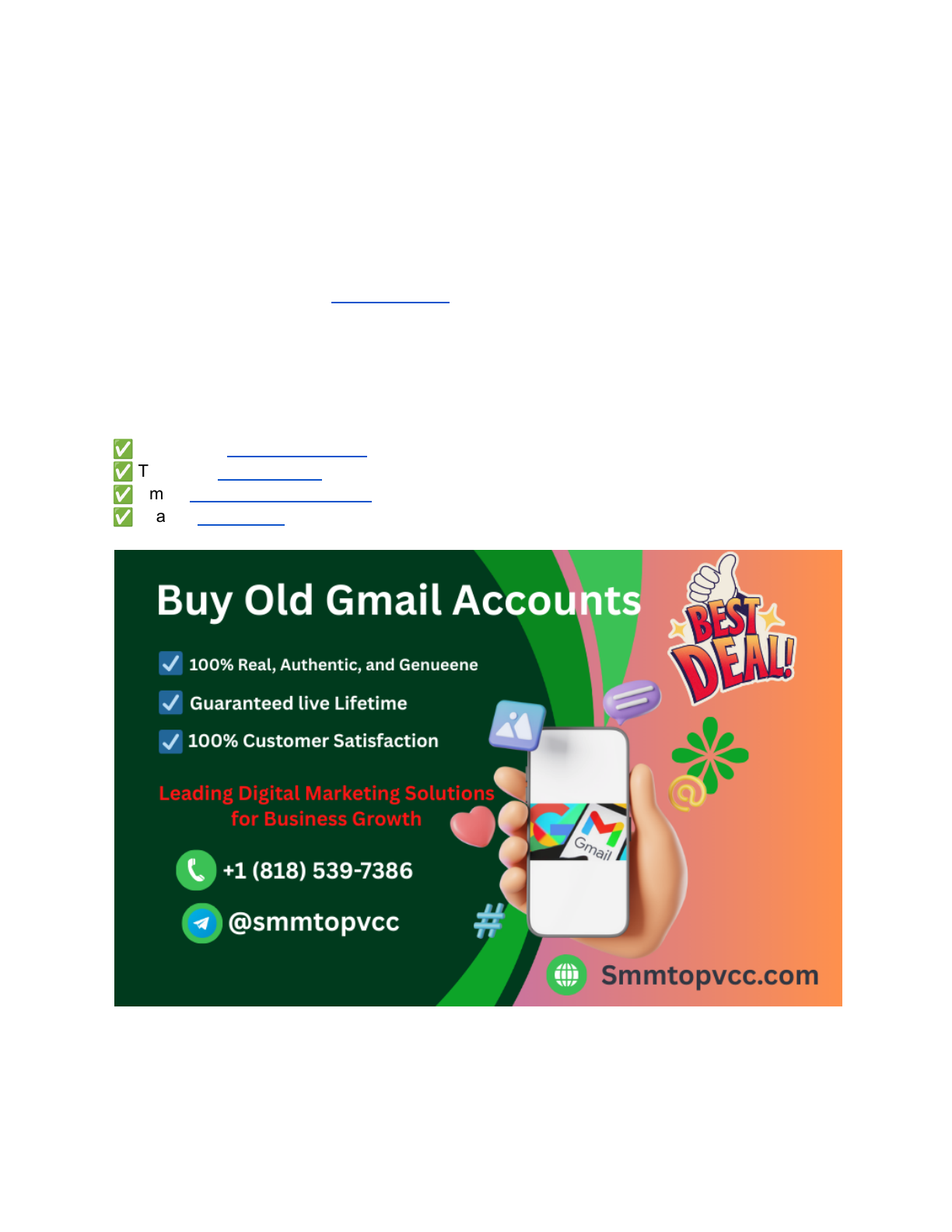 Buy Old Gmail Accounts Fast Step-by-Step Process In today’s digital business environment, email accounts are more than just a communication tool—they are a cornerstone of marketing, automation, testing, and online operations. For businesses and digital marketers, having multiple reliable Gmail accounts can make the difference between smooth campaigns and constant setbacks. While creating new accounts is always an option, buying old Gmail accounts fast has become an efficient strategy for businesses looking to save time, increase credibility, and scale operations seamlessly. This guide outlines a step-by-step process for acquiring old Gmail accounts quickly while ensuring safety, security, and reliability. If you want to know more info, please contact us- ✅ WhatsApp: +1 (818) 539-7386 ✅ Telegram: @smmtopvcc ✅ Email: smmtopvcc@gmail.com ✅ Teams: smmtopvcc Understanding the Need for Old Gmail Accounts https://smmtopvcc.com/product/buy-old-gmail-accounts/ https://wa.me/18185397386 https://telegram.me/smmtopvcc mailto:smmtopvcc@gmail.com https://teams.live.com/l/invite/FEAGzJUnmW2074H2gE Old Gmail accounts are accounts that have been active for months or even years and carry a history of consistent activity. They are considered more trustworthy by Google and are less likely to be flagged for spam or suspicious behavior. Businesses benefit from these accounts for email marketing, outreach, testing workflows, automation, and managing multiple online profiles. The credibility associated with older accounts enhances email deliverability and reduces the risk of account restrictions. Understanding why old accounts are valuable is the first step in making informed purchasing decisions. Identifying the Right Type of Accounts Not all Gmail accounts are created equal. When looking to buy old Gmail accounts, businesses should focus on accounts that have been genuinely active, have verified recovery options, and are free from any prior violations. The age of the account, its activity history, and associated recovery information play a critical role in its reliability. Accounts with clean histories, verified phone numbers, and consistent usage patterns are ideal for business purposes. Selecting the right type of account ensures smooth operation and long-term usability for campaigns and online workflows. Finding Reputable Providers Acquiring old Gmail accounts fast requires working with trustworthy providers. Reputable vendors have transparent processes, positive customer reviews, and clear terms of service. They offer accounts with verified phone numbers, recovery options, and detailed account histories. Businesses should evaluate providers carefully to avoid scams, compromised accounts, or accounts with hidden restrictions. Partnering with experienced vendors ensures that the purchased accounts function as promised and meet operational needs without unexpected interruptions. Evaluating Account Details Before finalizing a purchase, evaluating the details of each account is essential. Checking account age, activity levels, recovery options, and location settings helps ensure compatibility with business goals. Accounts with suspicious activity or prior flags may pose risks when used for outreach or automation. Verifying the authenticity and functionality of each account protects the business from potential setbacks and ensures that email campaigns, testing environments, and other workflows proceed smoothly. Careful evaluation is a small step that saves significant time and trouble later. Streamlining the Purchase Process Buying old Gmail accounts fast involves a streamlined approach to minimize delays. Businesses should identify the number of accounts required, confirm specifications with the provider, and https://smmtopvcc.com/product/buy-old-gmail-accounts/ request accounts with verified recovery options. Clear communication with the vendor about account details, delivery timelines, and support policies speeds up the purchasing process. Using bulk purchasing options from reliable vendors allows businesses to acquire multiple accounts at once, reducing setup time and enabling immediate deployment for campaigns and operations. If you want to know more info, please contact us- ✅ WhatsApp: +1 (818) 539-7386 ✅ Telegram: @smmtopvcc ✅ Email: smmtopvcc@gmail.com ✅ Teams: smmtopvcc Securing Purchased Accounts Once the accounts are acquired, securing them is a crucial step. Updating passwords, adding recovery information, and enabling two-factor authentication protect accounts from unauthorized access. Monitoring account activity regularly helps detect any unusual behavior and maintain account integrity. Internal policies on account usage, such as restricting access to authorized team members, further enhance security. Businesses that prioritize account protection can use purchased Gmail accounts confidently, minimizing risks and ensuring continuous operational efficiency. Ethical and Legal Considerations While buying old Gmail accounts is a legitimate business practice, ethical and legal guidelines must be followed. Accounts should never be used for spamming, phishing, or violating Google’s terms of service. Responsible use maintains account credibility, prevents suspensions, and protects the business from legal issues. Transparency with team members regarding account management policies, access, and monitoring ensures accountability. Ethical usage is not just about compliance—it is also about maintaining trust and credibility in digital operations. Integrating Accounts into Business Operations After securing old Gmail accounts, integrating them strategically into business operations maximizes value. Assigning accounts specific functions such as marketing outreach, testing, or customer support ensures organized management. Rotating account usage prevents excessive activity on a single account and maintains credibility. Combining these accounts with email marketing platforms, CRM systems, or
