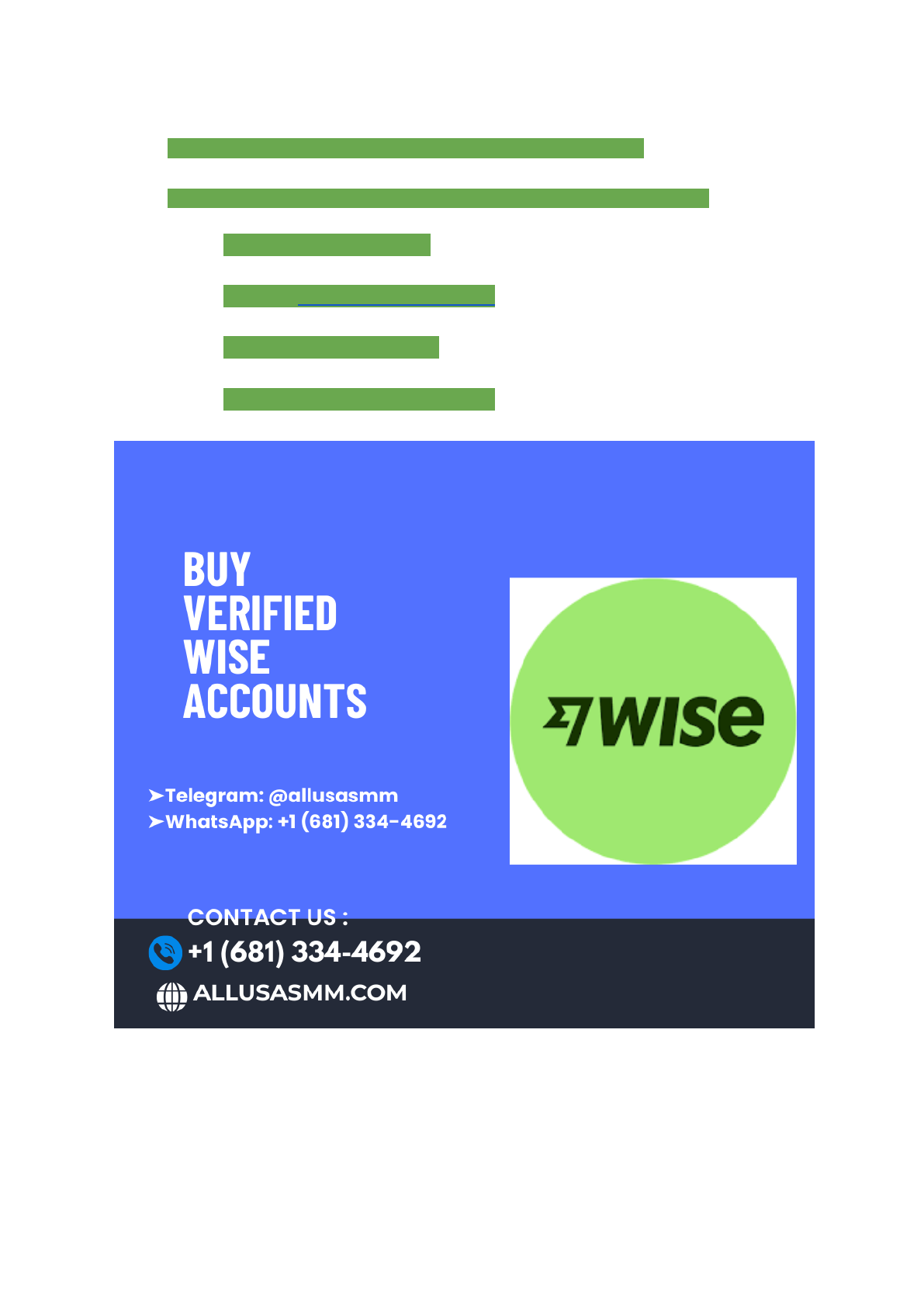 How to Verify Your Wise Account — Step-by-Step KYC & Setup Our Website:https://allusasmm.com/product/buy-verified-wise-accounts/ we are online 24/7 hours ➤Email: allusasmm@gmail.com ➤Telegram: @allusasmm ➤WhatsApp: +1 (681) 334-4692 How to create an USD account on Wise? It is simple and easy to create an USD account with Wise. Begin by going to the Wise website or installing the app. After you get there, sign up for an account using your email. You’ll also need to generate a safe password. Next, verify your identity. mailto:allusasmm@gmail.com This will most likely be by uploading a proof of identification like a passport or driver’s license. Take a load off knowing that you are squeezing every bit of potential out of every transaction that you send. Buy wise accounts after checking verified status. After that, navigate to the ‘Balances’ section in your dashboard. There, you’ll be able to add different currencies. Imagine managing many currencies or making cross-border money transfers without the surprise fees eating into your balance. If you’re an entrepreneur growing your business international or someone who is a regular remitter abroad, being aware of the ins and outs of Wise accounts can elevate your financial management to the next level. What is the benefit to buy verified Wise accounts”? Buy verified Wise accounts from allusasmm.com our accounts offer several advantages for the users. Firstly, it gives an easy experience in transact money to foreign countries (internationally). The verified account enjoys tighter security systems to secure your transactions. A verified account also increases the payment limits and reduces the holdup in the processing of payments. This is vital for businesses or individuals sending or receiving bulk sums of money internationally on frequent occasions. I n addition, you get to access lower fees than with the old banking ways. This translates into huge savings over time, particularly for frequent users such as freelancers or expatriates. Ease of accessibility is yet another advantage. Having a verified Wise account means having multiple currencies easily managed so you can instantly make the most out of great exchange rates. It validates your credibility as a receiver and sender in the global economy. How can individuals buy verified Wise accounts? If you buy verified Wise accounts, you can easily handle e-money transactions properly done. Review of those sites that provide these accounts and are genuine sellers. Check if they possess good reviews and what other customers or users comment regarding them. Once you’ve located a reputable source, register on their website. You may be required to provide some personal information in the process, so just make sure it’s secure. Transfer Wise a groundbreaking system that has overturned sending and receiving money internationally on its head. How wise accounts masters currency conversion for global payments? Wise uses the perfect and real-market exchange rate for currency conversion. This ensures transparency and fair rates without hidden fees. Wise, formerly TransferWise, is a popular financial service for international transactions. The company focuses on providing a transparent and cost-effective way to send money across borders. Traditional banks often charge high fees and use inflated exchange rates. Wise, on the other hand, applies the mid-market rate, which is the fairest rate available. This approach eliminates hidden costs, making it a preferred choice for many users. The platform is user-friendly, allowing seamless transfers between various currencies. Wise’s commitment to fairness and transparency has revolutionized the way people handle international money transfers. It is an ideal solution for anyone looking to save on currency conversion fees. The machine learning technology of wise makes currency conversion fast and reliable. Why wise assist users to get the opportunities and how? Wise allows you to hold multiple currencies in one account. This makes it easy to manage money globally. You can receive payments in different currencies. Then, you can convert them at low rates. Wise uses the real exchange rate. This means you get the best value. No hidden fees are charged. It is great for businesses with international clients. Buy aged wise accounts at usaallsmm.com at the best rate. Wise integrates with many popular payment gateways. This helps in processing payments smoothly. You can accept payments in various currencies. The funds can be converted and deposited in your account. Everything happens quickly and efficiently. This saves you time and money. It is perfect for global e-commerce stores. Wise makes international transactions simple and cost-effective. Buy UK wise accounts at the best rate.Why wise is better than traditional bank in money transaction and withdraw? Traditional banks in the maximum time charge high cost for international transfers. These fees can add up quickly. Banks also use unfavorable exchange rates. This means you get less money in your transfer. Transfers can take several days to complete. This causes delays and inconvenience. Hidden fees are another issue. You might not know the full cost until later. These limitations make traditional banks less appealing for global transfers. Wise aims to offer transparent fees. You know the cost upfront. Their exchange rates are close to the real market rate. This gives you more information about the value for https://usaallsmm.com/product/buy-old-gmail-accounts/ your money. Transfers are usually faster. Most complete in a few hours. This saves time and reduces stress. Wise also has a user-friendly interface. It is easy to set up and track transfers. This makes Wise a popular choice for international money movement. Buy UK wise accounts. How USA, UK aged wise accounts reduce foreign transaction fees? Wise accounts help businesses save on foreign transaction fees by offering low-cost currency conversion.