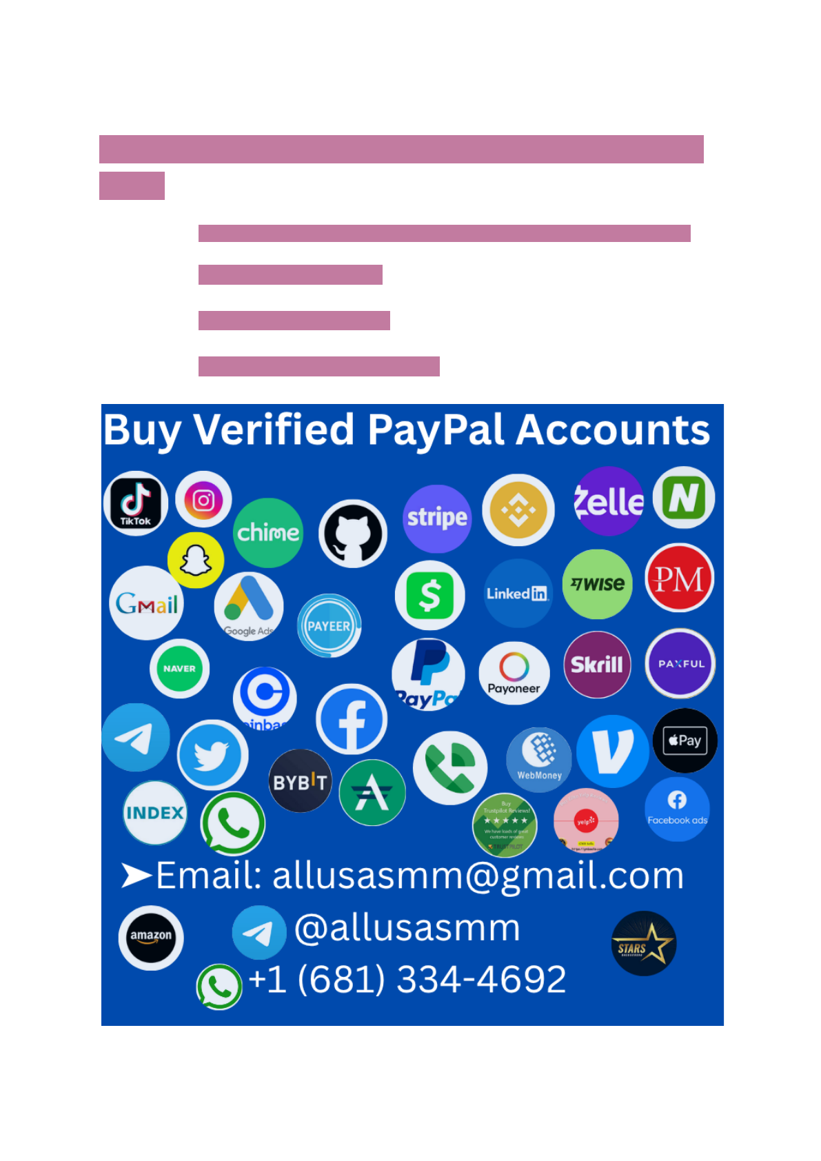How to Verify Your PayPal Account — Step-by-Step Setup & KYC Website:https://allusasmm.com/product/buy-verified-paypal-accous/ we are online 24/7 hours ➤Telegram: @allusasmm ➤WhatsApp: +1 (681) 334-4692 Instead of taking risks by buying a verified account, there are safer, ethical ways to get the benefits of one. Here’s how. Steps to Verify Your Own PayPal Account You don’t need special skills to verify your PayPal account. Just follow these simple steps: 1. Sign in to Your PayPal Account: If you don’t have an account yet, create one on PayPal’s website or app. 2. Link a Bank Account or Card: Navigate to the settings section and click on “Link a bank account” or “Link a card.” Enter the required details. 3. Confirm Your Financial Institution: PayPal might send small deposit amounts to your bank account. Use these amounts to confirm the link. 4. Verify Email Address: Ensure you’ve verified the email address associated with your buy veriy PayPal account by clicking on the confirmation link they send. 5. Complete Identity Verification (if required): Some users, especially business accounts, may need to provide additional documents, such as a driver’s license or utility bill, for full verification. What are the measurementsshould consider before buying a business PayPal? In PayPal Business account, few distinct information and documentation are needed. Business owners must provide their legal business name, a contact address, phone number and others. A valid email account is also essential for account communications. Documentation to verify the business includes proof of business registration, such as articles of incorporation, and EIN confirmation from the IRS. Buy PayPal accounts with transaction history. Additionally, the business owner’s identity must be confirmed with a government-issued ID. For linking bank accounts and credit cards, a bank statement or a credit card statement is typically requested. This confirms the account holder’s name and the financial institution’s details. Proper documentation, such as proof of business ownership, legal documents, and financial statements, should be readily available. Buy verified PayPal accounts at the best provider usaallsmm.com Why should you choose PayPal as a payment solution? https://allusasmm.com/ https://allusasmm.com/ Among all payment methods, pushing consumers towards online transactions is important. The ease and convenience of digital payments have become apparent, leading to a substantial shift in consumer behavior. PayPal, a leader in the market, stands out as a trusted platform for secure online transactions. Buy PayPal accounts for your asset safety. People often opt for verified PayPal accounts for their reliability and widespread acceptance. Verified accounts reduce the risk of transaction disputes and increase trust among users and merchants alike. There is also a growing trend of purchasing aged PayPal accounts, which are perceived as more stable and trustworthy due to their established history. How to sustain a PayPal Business Account? Creating a lasting PayPal Business account involves strict adherence to their policies. Users must regularly review PayPal’s User Agreement and ensure their operations comply. Proper documentation, such as proof of business ownership, legal documents, and financial statements, should be readily available. Buy personal PayPal accounts or business one. Dealing with audits and account limitations demands transparency and preparedness. Keeping meticulous records of transactions can aid in addressing any concerns from PayPal. It’s crucial to respond promptly to requests for information to avoid service disruptions. Users should also be aware of transaction limits and maintain accurate personal information Why to buy aged PayPal accounts with transaction? Buy aged PayPal accounts with transaction history, can significantly reduce account limitations. This is due to the established financial records that signal trustworthiness to PayPal’s monitoring systems. Users often face fewer restrictions as a result of proven transactional behavior. People often prefer PayPal accounts with transaction history due to increased financial freedom. Higher transaction limits are a key feature, allowing for larger amounts to be sent or received. This is especially beneficial for business transactions and individuals who deal with high-value items. A history of genuine transactions can aid in the quick resolution of disputes. It also helps in identifying unusual patterns that could indicate fraud. This security advantage is vital for maintaining secure online transactions. Why e-commerce want to buy PayPal accounts with transaction history? In maximum cases, businesses want to buy PayPal accounts with transaction history to ensure credibility and ease of use. These accounts are often perceived as more trustworthy by other users and vendors. PayPal’s reputation for security means that an account with a positive history is a valuable asset. It suggests a pattern of secure and successful exchanges, which can be especially appealing for those engaging in frequent or high-volume online trading. Most of the businesses and giant e-commerce platforms want to buy Paypal accounts with transaction history. They want to buy PayPal for their business purpose for immediate trust and credibility boosting. Peoples and all PayPal users feel secure knowing the account has a proven track transaction history. Trust is crucial for online transactions, and a history of successful dealings reassures customers. Transaction history enhances customer relationships and loyalty. An aged account with real transaction history, express the reliability and legitimacy. Why Business and forex, crypto, and binary traders buy aged PayPal accounts? Businesses and traders (crypto, Binary, and forex) buy aged PayPal accounts for their enhanced and reliable credibility and higher transaction limits. The stability and