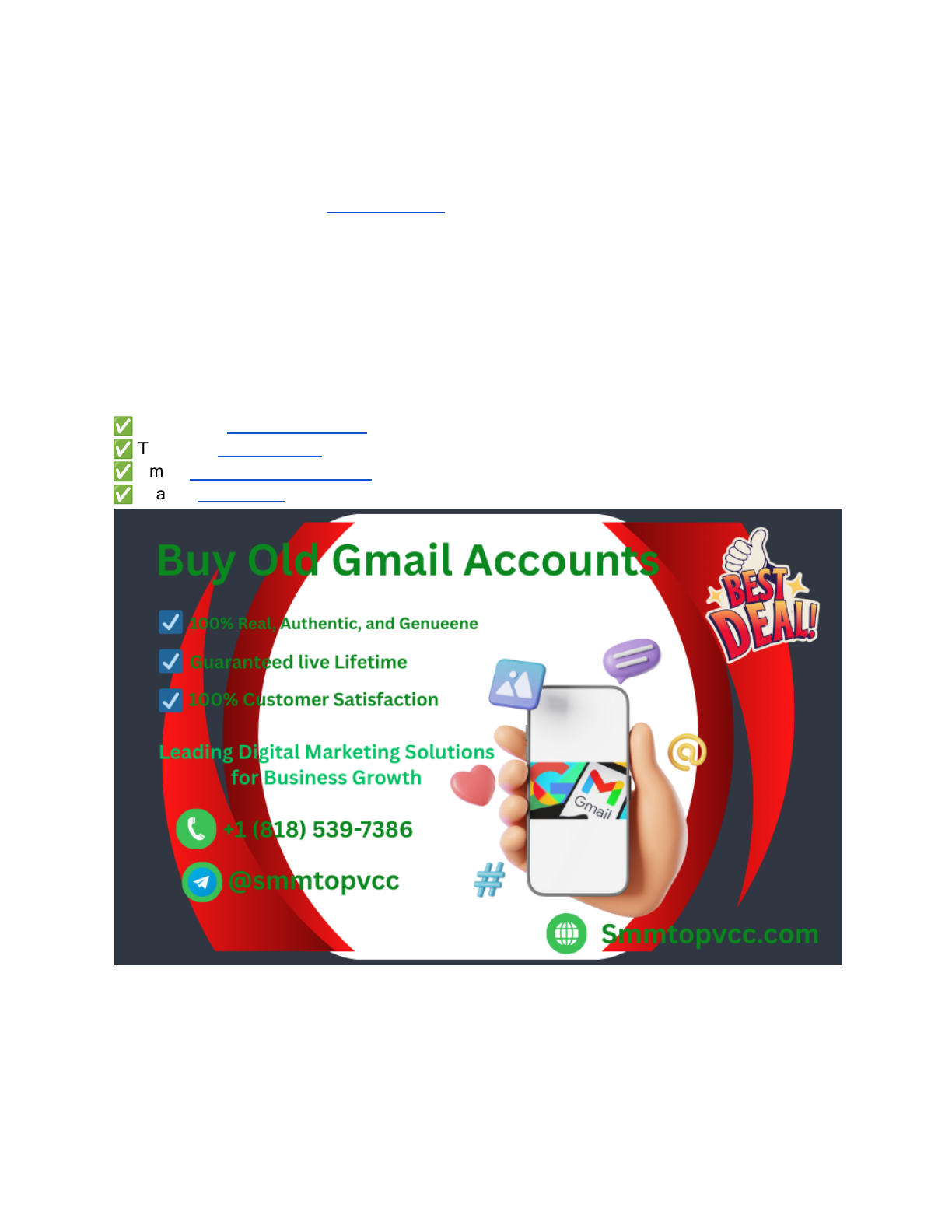 Buy Old Gmail Accounts: How to Spot Legit Sellers In today’s digital landscape, Gmail accounts have become essential tools for businesses, marketers, developers, and online entrepreneurs. These accounts support email marketing campaigns, automation workflows, multi-platform management, and testing environments. While creating new accounts is always an option, many professionals turn to buying old Gmail accounts for reliability, credibility, and operational efficiency. However, the market for old Gmail accounts is crowded, and not all sellers are trustworthy. Knowing how to spot legit sellers is critical to ensure security, value, and smooth operations. If you want to know more info, please contact us- ✅ WhatsApp: +1 (818) 539-7386 ✅ Telegram: @smmtopvcc ✅ Email: smmtopvcc@gmail.com ✅ Teams: smmtopvcc Why Legitimacy Matters The importance of purchasing Gmail accounts from legitimate sellers cannot be overstated. Accounts from unreliable sources can be compromised, flagged, or restricted, which can disrupt marketing campaigns, testing workflows, or operational processes. Legit sellers provide verified https://smmtopvcc.com/product/buy-old-gmail-accounts/ https://wa.me/18185397386 https://telegram.me/smmtopvcc mailto:smmtopvcc@gmail.com https://teams.live.com/l/invite/FEAGzJUnmW2074H2gE accounts with clean histories, proper recovery options, and functional credentials. Partnering with credible vendors ensures that businesses acquire accounts that meet their needs without exposing them to risks such as security breaches, fraud, or service violations. Signs of a Legitimate Seller Trustworthy sellers exhibit transparency and professionalism in their operations. They provide detailed information about the accounts they offer, including age, activity history, recovery options, and verification status. Clear communication, responsive support, and verifiable reviews from past clients are strong indicators of reliability. Legit sellers also clarify their terms of service, provide secure payment methods, and often offer guarantees or replacement policies. These factors collectively signal credibility and reduce the risk of acquiring compromised accounts. Red Flags to Avoid Recognizing potential red flags is as important as spotting positive indicators. Sellers who refuse to provide details about account history, verification, or recovery options may not be trustworthy. Unrealistically low prices or promises of large quantities of accounts without verification should be approached with caution. Lack of customer feedback, hidden fees, or vague terms of service can also indicate risk. Avoiding such sellers helps businesses prevent disruptions, fraud, and wasted resources while ensuring purchased accounts are functional and secure. Evaluating Account Authenticity Before purchasing, evaluating the authenticity of Gmail accounts is crucial. Legit sellers provide accounts that have been genuinely active, with consistent usage patterns and no prior violations. Accounts with verified phone numbers or linked secondary emails are more secure and easier to manage. Testing a small batch of accounts before committing to bulk purchases can further confirm their functionality and reliability. This careful evaluation ensures that businesses receive accounts that perform as expected and can be integrated seamlessly into marketing or operational workflows. Checking Reviews and Reputation Customer reviews and online reputation are valuable indicators of a seller’s legitimacy. Trusted sellers often have a track record of positive feedback from buyers who confirm the quality and authenticity of accounts. Checking forums, social media groups, or review platforms for mentions of the seller can provide additional insights. Reputable vendors also engage with customers, address concerns promptly, and provide transparent information about their https://smmtopvcc.com/product/buy-old-gmail-accounts/ services. Prioritizing sellers with verifiable reputations minimizes the risk of encountering fraudulent accounts or unreliable service. Communication and Support Legit sellers prioritize clear communication and ongoing support. They answer inquiries promptly, clarify account details, and provide guidance on secure usage. Sellers offering responsive customer support demonstrate professionalism and accountability. This level of communication is particularly important when buying accounts in bulk, as businesses may need assistance with delivery, verification, or troubleshooting. Vendors who maintain open and transparent channels help businesses feel confident in their purchase decisions. If you want to know more info, please contact us- ✅ WhatsApp: +1 (818) 539-7386 ✅ Telegram: @smmtopvcc ✅ Email: smmtopvcc@gmail.com ✅ Teams: smmtopvcc Security and Recovery Options Verified accounts with security features such as recovery email addresses or linked phone numbers are safer and easier to manage. Legit sellers ensure that purchased accounts can be recovered if access is lost and provide information on how to secure them post-purchase. Two-factor authentication guidance, password update instructions, and other security measures are signs of a responsible vendor. Ensuring accounts have robust security reduces the risk of unauthorized access, operational disruption, or compliance issues. Payment Safety Payment safety is a critical consideration when buying old Gmail accounts. Legitimate sellers offer secure, traceable payment methods and avoid unverified or unconventional platforms. They provide clear invoices, receipts, and confirmation of account delivery. Avoiding sellers who request cash transfers, cryptocurrency without safeguards, or other high-risk payment methods helps protect businesses from fraud. Secure payment processes are a reflection of a seller’s professionalism and reliability. Bulk Purchase Considerations Businesses often require multiple accounts for marketing campaigns, testing, or operations. Legit s