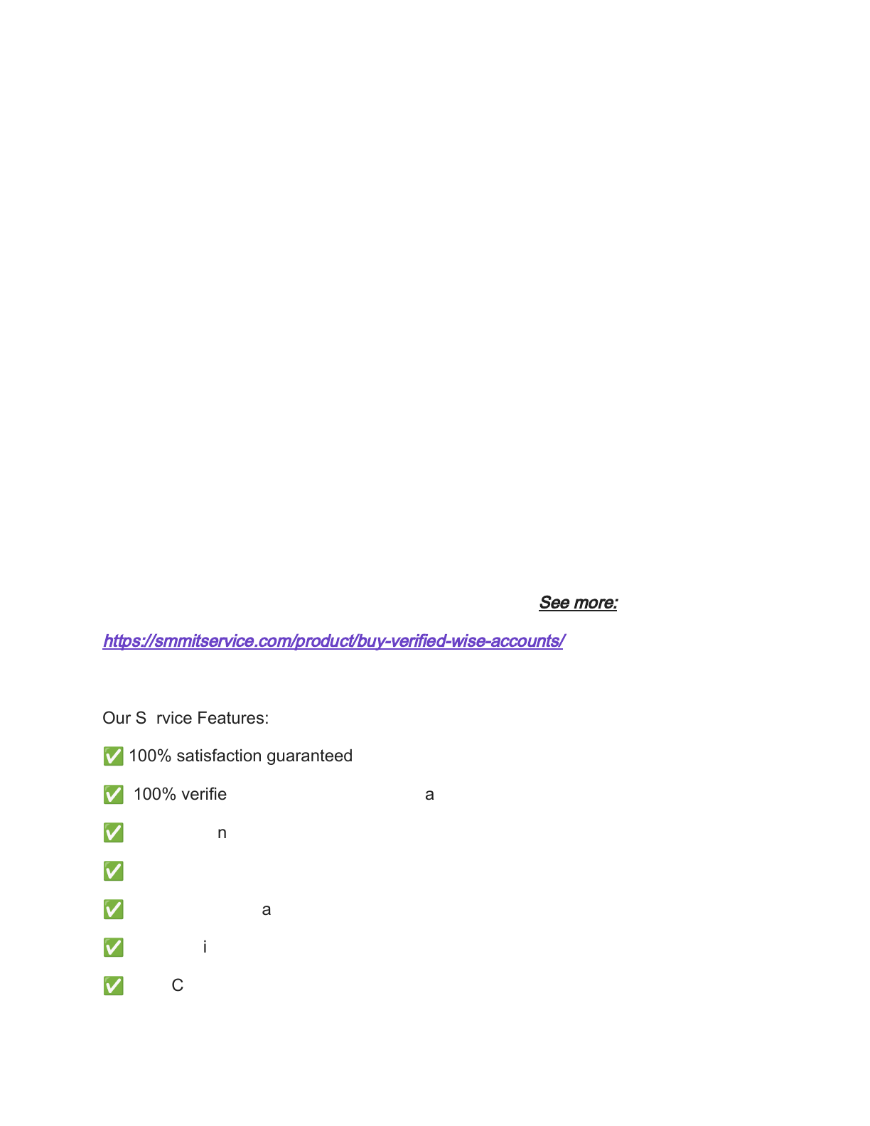 Best 9 Sites to ''Buy Verified Wise Accounts'' in This time ➤ WhatsApp: +1 (573) 210-5633 ➤ Telegram: @smmitservice ➤ Email: smmitservice0@gmail.com Buy Verified Wise Accounts Enter verified Wise accounts. Imagine having the power to send and receive money globally, with confidence, speed, and minimal cost. Whether you’re a freelancer, a business owner, or someone who frequently transfers money abroad, a verified Wise account can be your game-changer.f you want to buy aged Wise accounts with transaction history place your order now.SMM iT Service See more: https://smmitservice.com/product/buy-verified-wise-accounts/ Our Service Features: ✅ 100% satisfaction guaranteed ✅ 100% verified accounts, USA, UK, CA and other countries ✅ Bank account approved ✅ Verified with original SSN. ✅ With Wise Email and Password ✅ Email login associated with Wise ✅ 24×7 Customer Support https://smmitservice.com/product/buy-verified-wise-accounts/ https://smmitservice.com/product/buy-verified-wise-accounts/ ✅ Phone is verified ✅ Documents (a copy of electricity bill and a NID card) ✅ Verified Phones: Verify phones from any country. ✅ Given date of birth ✅ 100% Money Back Guarantee If you want to more information just knock us:– 24 Hours Reply/Contact ➤ WhatsApp: +1 (573) 210-5633 ➤ Telegram: @smmitservice ➤ Email: smmitservice0@gmail.com See more: https://smmitservice.com/product/buy-verified-wise-accounts/ See more: https://smmitservice.com/product/buy-verified-wise-accounts/ See more: https://smmitservice.com/product/buy-verified-wise-accounts/ Buy Verified Wise Accounts Verified Wise Accounts stand out in the digital financial world. They offer users a sense of security and trust. These accounts undergo a verification process. This process ensures the account holder’s identity. It protects against fraud and unauthorized access. Businesses and individuals benefit from verified accounts. Trustworthiness increases in online transactions. The process enhances confidence in digital dealings. Knowing an https://smmitservice.com/product/buy-verified-wise-accounts/ https://smmitservice.com/product/buy-verified-wise-accounts/ https://smmitservice.com/product/buy-verified-wise-accounts/ account is verified offers peace of mind. See more: https://smmitservice.com/product/buy-verified-wise-accounts/ Understanding The Verification Process The verification process checks user identity. Users submit essential documents. These documents confirm their identity and address. Wise reviews these documents thoroughly. This ensures the highest level of security. The process is straightforward. It involves uploading identification. Users might provide utility bills. These documents verify the user’s address. Once verified, the account gets a special status. Benefits Of Having A Verified Wise Account Verified accounts offer enhanced security features. They protect against identity theft. Users feel safer during transactions. Trustworthiness increases among peers and businesses. Transactions become smoother and faster. Verified users face fewer delays. Their transactions are prioritized. This is beneficial for those who trade internationally. Who Needs A Verified Wise Account? Freelancers and entrepreneurs benefit greatly. They often deal with international clients. Verified accounts ensure smooth payments. Trust is crucial in these transactions. Regular individuals also find them useful. Online shoppers enjoy added security. Verified accounts provide peace of mind. Safe transactions make online shopping enjoyable. See more: https://smmitservice.com/product/buy-verified-wise-accounts/ If you want to more information just knock us:– https://smmitservice.com/product/buy-verified-wise-accounts/ https://smmitservice.com/product/buy-verified-wise-accounts/ https://smmitservice.com/product/buy-verified-wise-accounts/ 24 Hours Reply/Contact ➤ WhatsApp: +1 (573) 210-5633 ➤ Telegram: @smmitservice ➤ Email: smmitservice0@gmail.com Benefits Of Using Verified Wise Accounts In today’s fast-paced digital world, managing finances efficiently is crucial. Verified Wise accounts offer a modern solution, enhancing your financial transactions with added security, speed, and accessibility. If you’ve ever felt the frustration of slow transactions or worried about the safety of your financial details, a verified Wise account might be the answer you’ve been searching for. 📷 Enhanced Security Features Security is a top priority when dealing with money online. Verified Wise accounts provide robust security measures to safeguard your funds. With features like two-factor authentication and real-time alerts, you can rest easy knowing your account is protected. Imagine the peace of mind that comes from knowing your financial transactions are secure. Wouldn’t you prefer a system that prioritizes your safety over anything else? Improved Transaction Speed Waiting for transactions to process can be incredibly frustrating. Verified Wise accounts streamline this process, ensuring your money moves quickly and efficiently. Whether you’re paying bills or transferring funds internationally, speed is vital. Picture the convenience of instant transfers, saving you time and reducing stress. Have you ever wished you could skip the waiting game and get things done faster? See more: https://smmitservice.com/product/buy-verified-wise-accounts/ If you want to more information just knock us:– 24 Hours Reply/Contact ➤ WhatsApp: +1 (573) 210-5633 ➤ Telegram: @smmitservice ➤ Email: smmitservice0@gmail.com See more: https://smmitservice.com/product/buy-verified-wise-accounts/ https://smmitservice.com/product/buy-verified-wise-accounts/ https://smmitservice.com/product/buy-verified-wise-accounts/ https://smmitservice.com/product/buy-verified-wise-accounts/ Best 9 Sites to ''Buy Verified Wise Accounts'' in This time Buy Verified Wise Accounts Understanding The Verification Process Benefits Of Having A Verified Wi