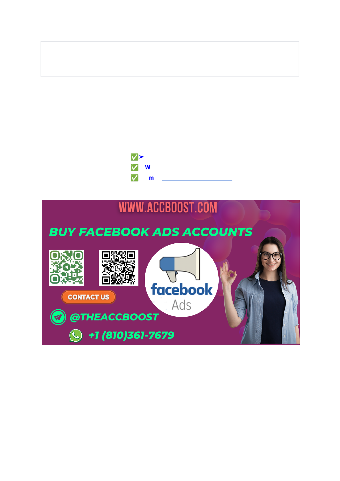 Buy Facebook Ads Accounts With Business Managers: Ultimate Guide 2025 Are you struggling to get your Facebook ads up and running because you don’t have the right account setup? Buying Facebook Ads Accounts with Business Managers could be the shortcut you need. If you want more information, contact me now. 24-Hour Reply/ ✅➤Telegram:@theaccboost ✅➤Whatsapp: +1 (810)361-7679 ✅➤Email:theaccboost@gmail.com https://accboost.com/product/buy-facebook-ads-accounts/ Imagine skipping the hassle of creating new accounts and jumping straight into managing powerful ad campaigns. This guide will show you exactly how to find reliable accounts, avoid common pitfalls, and boost your advertising success. Keep reading—your next big ad breakthrough might be just a few clicks away. Benefits Of Facebook Ads Accounts With Business Managers mailto:theaccboost@gmail.com https://accboost.com/product/buy-facebook-ads-accounts/ Facebook Ads Accounts with Business Managers offer many advantages. They make managing ads easier and safer. Businesses can control their ad accounts in one place. This setup helps keep your marketing organized. It also improves teamwork by letting different people work together smoothly. Manage Multiple Ad Accounts Easily Business Managers let you handle many ad accounts from one dashboard. No need to log in and out of different accounts. This saves time and reduces errors. It is perfect for agencies or businesses with many brands. Control User Access And Permissions You can give specific roles to team members. Some can create ads, others only view reports. This keeps your ad account safe. You decide who can see or change your ads. Keep Payment Methods Separate Each ad account can have its own payment method. This helps track spending by campaign or client. It avoids confusion with shared billing. Managing costs becomes simple and clear. Easy Asset Sharing And Collaboration Share pages, pixels, and catalogs with your team. All assets stay linked under one Business Manager. This makes campaigns smoother and more coordinated. Everyone works with the same tools and data. How To Choose Reliable Sellers Choosing a reliable seller for Facebook Ads accounts with Business Managers is vital. The right seller ensures safety, quality, and smooth transactions. Trustworthy sellers help avoid scams and account bans. Focus on clear communication and transparency. Reliable sellers provide detailed information about their accounts. They answer questions quickly and honestly. This builds trust and confidence before buying. Check Seller Reviews And Ratings Reviews show past buyers’ experiences. High ratings indicate reliable sellers. Look for sellers with many positive reviews. Avoid those with negative feedback or complaints. Verify Account Authenticity Ask for proof the account is genuine. Reliable sellers share screenshots or videos. Confirm the Business Manager and ad account details. Fake accounts can lead to bans or loss. Understand The Seller’s Terms Read all terms carefully. Reliable sellers clearly state their policies. Check for refund, replacement, or support options. Avoid sellers who hide or ignore terms. Evaluate Seller Support Availability Good sellers offer support after purchase. Check if they respond to messages fast. Reliable sellers help with setup or issues. Support improves your buying experience. Steps To Buy Facebook Ads Accounts Safely Buying Facebook Ads accounts with Business Managers requires careful steps. Safety is the top priority to avoid scams or account bans. Follow clear guidelines to protect your investment and ensure smooth ad campaigns. Each step helps confirm the account's legitimacy and security. Staying cautious reduces risks and builds trust with sellers. A safe purchase means faster setup and better ad performance. Check The Seller’s Reputation Start by verifying the seller’s history and reviews. A trusted seller has positive feedback from previous buyers. Avoid sellers with negative comments or no ratings. Research their online presence to confirm authenticity. Verify The Business Manager Details Ask for full Business Manager information before buying. Confirm the Business Manager owns the ad account. Check linked payment methods and ad history. This ensures the account is active and complies with Facebook rules. Secure Payment Methods Use secure and traceable payment options. Avoid sending money via unprotected channels. Services like escrow can hold funds until you confirm the account works. This protects you from losing money in scams. Request Account Transfer Instructions Get clear instructions for transferring the ad account. The seller should guide you through adding your Business Manager. Confirm you gain full control and access after transfer. Proper transfer avoids future access problems. Test The Account Quickly After transfer, test the ad account immediately. Create a small ad campaign to check functionality. Monitor performance and payment methods. Early testing helps spot any issues fast. Managing Business Managers Effectively Managing Business Managers effectively is key to running smooth Facebook ad campaigns. It helps keep your accounts organized and secure. Clear management saves time and avoids mistakes. Knowing how to handle roles and permissions ensures the right people access the right tools. This keeps your business data safe and campaigns on track. Understanding Roles And Permissions Each Business Manager role has specific access levels. Assign roles carefully to control what users can do. Only give admin rights to trusted team members. Regularly review roles to keep your team updated. Remove or change roles when necessary to avoid confusion or risks. Organizing Multiple Accounts Group your ad accounts by project or client for easier management. Use clear naming conventions for quick identification. This reduces errors and saves time. Track spending and performance for each account separately. This helps you analyze resu