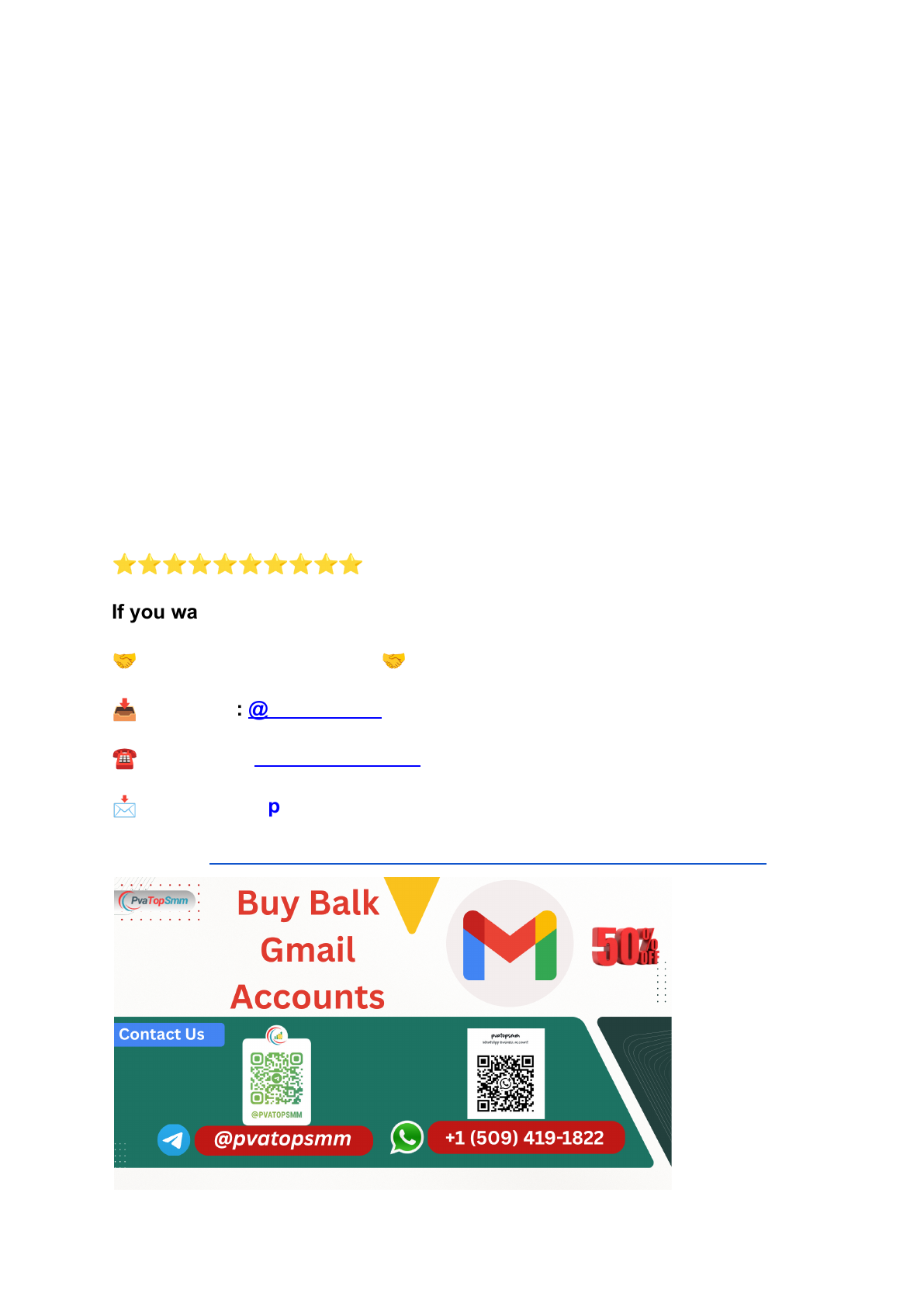 Where to Buy Bulk Gmail Accounts Safely – Guaranteed Verification & Support Introduction to Balk Gmail Accounts Are you looking to streamline your online activities while managing multiple Gmail accounts? If so, buying Balk Gmail accounts might just be the solution you're searching for. These specialized accounts offer unique advantages that can enhance your productivity and online presence. Whether you’re a marketer, a business owner, or simply someone who juggles various interests online, understanding the benefits of these accounts can significantly impact how effectively you operate in the digital world. Let's dive into what makes Balk Gmail accounts worth considering! ⭐⭐⭐⭐⭐⭐⭐⭐⭐⭐ If you want more information just contact me now. 🤝24/7 Hours Reply/Contact🤝 📥 Telegram : @pvatopsmm ☎ WhatsApp :+1 (509) 419-1822 📩 Email : pvatopsmm@gmail.com Visit Site: https://pvatopsmm.com/product/buy-bulk-gmail-accounts/ http://t.me/pvatopsmm https://wa.me/message/QI5RTAUSR3CLG1 https://pvatopsmm.com/product/buy-bulk-gmail-accounts/ Benefits of Buying Balk Gmail Accounts Buying Balk Gmail accounts comes with several advantages that can enhance your online experience. These accounts often have a higher level of security. Many buyers appreciate the built-in protections against spam and phishing attempts. This ensures that your communications remain safe and private. Having multiple accounts allows for improved organization. You can easily separate personal communication from business correspondence or promotional activities. This separation streamlines your workflow and helps maintain clarity in various tasks. Additionally, purchasing these accounts can save you time. Instead of creating numerous Gmail accounts manually, buying them provides immediate access to pre-established profiles ready for use. Balk Gmail accounts may come with unique features not available in standard ones—such as enhanced storage options or added customization capabilities—which cater specifically to user needs across different sectors. Factors to Consider When Purchasing Balk Gmail Accounts When considering the purchase of Balk Gmail accounts, start by evaluating the reliability of the seller. Check reviews and testimonials to gauge their reputation. https://pvatopsmm.com/product/buy-bulk-gmail-accounts/ Next, consider account age and activity. Older accounts often carry a better standing with Google, which can prevent issues like suspension. Active accounts also tend to have more credibility. Security features are crucial too. Ensure that the accounts come with recovery options in case you forget your password or face any security challenges. Look into pricing strategies as well; some sellers may offer bulk discounts while others might charge per account. Weigh these costs against potential long-term benefits for your needs. Think about customer support provided by the seller post-purchase. Having access to assistance can make managing multiple accounts smoother and less stressful over time. Where to Buy Balk Gmail Accounts? Finding a reliable source to buy Balk Gmail accounts is crucial for ensuring quality and security. Start by exploring reputable online marketplaces that specialize in digital products. These platforms often have user reviews, giving you insights into the seller's reliability. Social media can also be a valuable resource. Groups focused on digital marketing might share trustworthy sellers or recommendations based on personal experiences. Another option is forums where users discuss their purchasing experiences with various services. Engaging with these communities can provide leads to trustworthy vendors. Always check if the provider offers customer support after your purchase. This ensures that any issues or queries can be addressed promptly, enhancing your overall experience with purchased accounts. Top Websites for Buying Balk Gmail Accounts When looking to buy Balk Gmail accounts, it's essential to choose reliable platforms. Certain websites have earned a reputation for providing quality services. One notable site is AccountKings, known for its user-friendly interface and extensive selection of accounts. They offer detailed information about each account’s history, ensuring transparency in your purchase. Another option is GmailAccountsPro. This platform specializes in bulk sales and often runs promotions that make buying multiple accounts more affordable. For those seeking personalized support, EasyGmailSales stands out. Their customer service team provides assistance throughout the purchasing process, making it easier for first-time buyers. https://pvatopsmm.com/product/buy-bulk-gmail-accounts/ https://pvatopsmm.com/product/buy-bulk-gmail-accounts/ Consider checking out forums like Reddit or digital marketing groups where users share their experiences with different vendors. Community feedback can guide you toward trustworthy sources while also highlighting potential pitfalls to avoid during your search. Tips for Using and Managing Multiple Gmail Accounts Managing multiple Gmail accounts can be a breeze with the right strategies. Start by using different browsers or incognito mode for each account. This helps avoid confusion and keeps your logins separate. Take advantage of Gmail's labels and filters. Organize incoming emails into categories, making it easier to prioritize messages across all accounts. Consider using an email client like Thunderbird or Outlook. These applications let you manage several accounts in one interface, streamlining your workflow. Regularly update passwords and enable two-factor authentication on each account for enhanced security. Also, use unique recovery options for every account to ensure you don’t lose access if needed. Set specific times during the day to check and respond to emails from various accounts; this prevents distractions while maintaining productivity levels. Conclusion When considering the purchase of Balk Gmail a