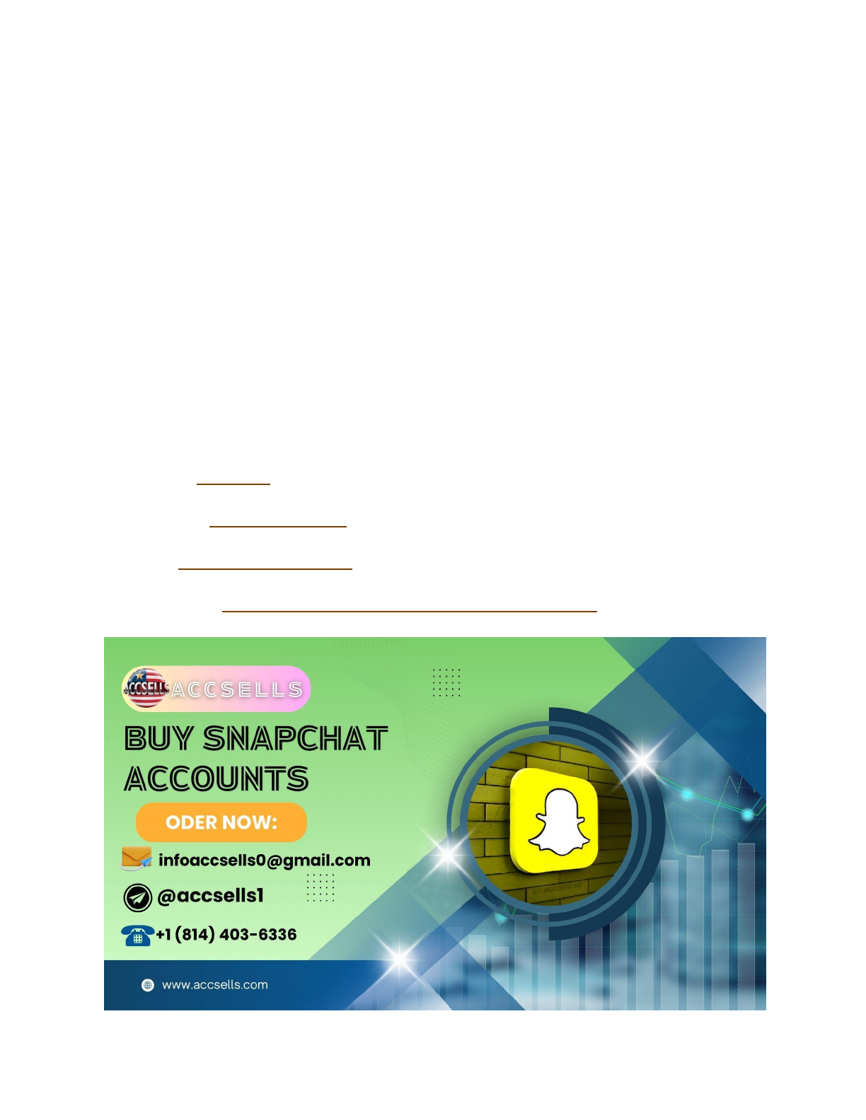 Top 5 Platforms to Buy Snapchat Accounts — Verified & Trusted A robust social media presence is essential for any business operating online. One way to boost your reach quickly is to buy Snapchat accounts. When you buy Snapchat accounts, you can instantly access a wider audience. Snapchat is super popular, especially among younger people. If you want to connect with this group, you might want to buy a Snapchat account. This can help you save time and effort in growing your following from scratch. If You want to more information just contact now 24 Hours Reply/ Contact : – ◯ Telegram: @accsells1 ◯ WhatsApp: +1 (814) 403–6336 ◯ E-mail: infoaccsells0@gmail.com ◯ Website Visit:https://accsells.com/product/buy-snapchat-accounts/ https://t.me/accsells1 https://api.whatsapp.com/send?phone=18144036336 mailto:infoaccsells0@gmail.com https://accsells.com/product/buy-snapchat-accounts/ When you buy Snapchat accounts, you can start marketing your products or services right away. Instead of waiting months to build an audience, you can reach potential customers immediately. This is why many businesses choose to buy Snapchat accounts to kickstart their social media strategy. One more motivation to purchase Snapchat accounts is to expand your image’s permeability. More accounts mean more chances for people to see your content. If you buying Snapchat accounts with different follower counts, you can target various audience segments. It’s important to note that when you buying Snapchat accounts, you should use them wisely. Create engaging content and interact with followers to keep them interested. This way, the accounts you buying can become valuable assets for your business. If you want to grow your online business quickly, you might consider the option of buying a Snapchat account. It can give you a head start in reaching your target audience and boosting your brand’s online presence. Why Buy Snapchat Accounts is Important for Online Businesses Having many followers on social media is super important. That’s why some businesses choose to buying Snapchat accounts. When you buying Snapchat accounts, you can reach more people faster. Snapchat is very popular, especially with young people. If you want to talk to lots of young customers, you might want to buying a Snapchat account. This can help you save time and effort in getting followers on your own. When you buying Snapchat accounts, you can start showing your products or services right away. You don’t have to wait for months to get followers. This is a big reason why many businesses decide to buy Snapchat accounts to get started quickly. Another good thing about buying Snapchat accounts is that more people can see your brand. More accounts mean more chances for people to find you. If you buying Snapchat accounts with different numbers of followers, you can talk to different groups of people. It’s important to remember that when you buying Snapchat accounts, you need to use them well. Make fun and interesting posts to keep your new followers happy. This way, the accounts you buy can really help your business grow. If you want to make your online business bigger fast, you might think about buying a Snapchat account. It can give you a quick start in talking to the people you want to reach and make more people know about your brand online. Why buy a Snapchat Account? Have you ever thought about getting more followers on social media fast? That’s why some people choose to buying a Snapchat account. When you buying a Snapchat account, you can start talking to lots of people right away. Snapchat is popular, especially with young folks. If you want to reach many young people quickly, you might want to buying a Snapchat account. It’s much faster than trying to get followers on your own. When you buy a Snapchat account, you don’t have to wait to show off your stuff. You can start sharing pictures and videos of your products or services right now. This is why many people think it’s a good idea to buying a Snapchat account. Another reason to buy a Snapchat account is to get your name out there. More people will see what you’re doing if you have a big account. If you buy a Snapchat account with lots of followers, more people will know about you. If you decide to buy a Snapchat account, you need to use it well. Make fun posts and talk to your new followers. This way, the account you buy can really help you. If you want to grow your brand or business quickly, you might think about buying a Snapchat account. It can help you reach more people faster and make more people know about what you’re doing online. So, if you want to save time and effort, and start talking to lots of people right away, you might want to buying a Snapchat account. It could be just what you need to get ahead in the online world! How Buy-Aged Snapchat Accounts Can Boost Your Business Are you looking to grow your business fast on Snapchat? You might want to buy aged Snapchat accounts. These are accounts that have been around for a while and already have followers. How about we perceive how they can help your business? When you buy aged Snapchat accounts, you get a head start. There’s no need to invest months to grow an audience. Instead, you get instant access to people who might like your products or services. Aged accounts look more trustworthy. Individuals are bound to follow and draw in with accounts that have been around for some time. When you buy aged Snapchat accounts, you get this trust right away. These reports can assist you in connecting with a larger audience. The more accounts you have, the more users you can connect with. This means more chances to show off your business and get new customers. You can also use different accounts for different parts of your business. When you buy aged Snapchat accounts, you can have one for each product line or service. This helps you target specific groups of customers better. Buy-aged accounts can also be cheap