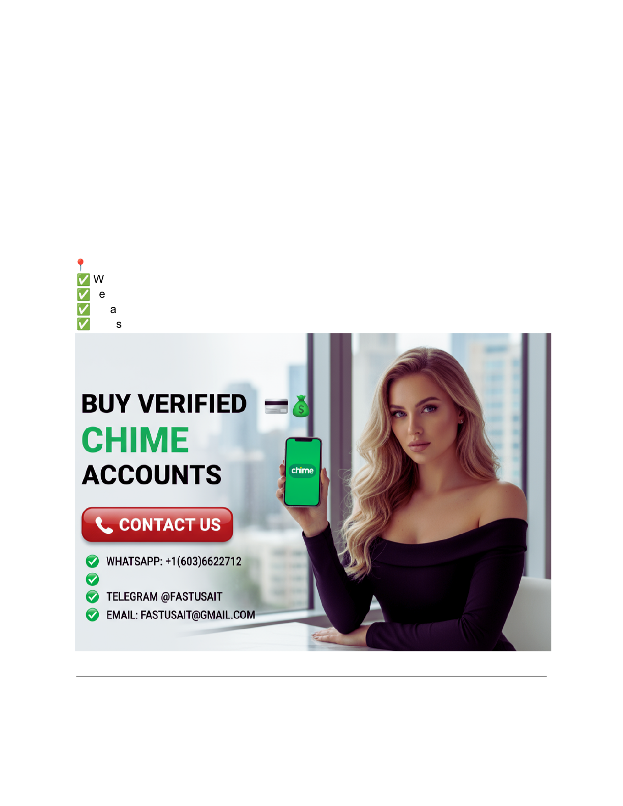 Buy Verified Chime Accounts from fastusait.com In today’s fintech-first world, a verified Chime account offers smoother banking functionality, higher limits, and improved trust for legitimate personal and business use. Whether you manage multiple payment flows, run e-commerce operations, or need backup payment rails for lawful business activities, verified Chime accounts can save time and provide reliability. For secure, verified Chime accounts with fast delivery and responsive support, choose fastusait.com. 📍 24 Hours Reply / Contact ✅ WhatsApp: +1 (603) 662-2712 ✅ Telegram: @fastusait ✅ Email: fastusait@gmail.com ✅ Website: fastusait.com What is a Verified Chime Account? A verified Chime account has completed Chime’s identity and verification checks, unlocking fuller features such as higher deposit/withdrawal thresholds and access to Chime’s suite of banking services. Verified accounts are preferred for legitimate users and businesses that need dependable payment and payroll solutions. Note: Chime’s verification rules and features may change. Always follow Chime’s Terms of Service and applicable laws. Buy Verified Chime Accounts Online Purchasing a verified Chime account from a reputable provider can be a time-saving option for legitimate use cases. At fastusait.com, our service prioritizes account quality, secure delivery, and customer support. Our accounts typically include: ✔ Verified status as provided by the seller ✔ Recovery and setup information ✔ Secure delivery procedures and after-sale support ✔ Options for single or bulk purchases We focus on transparency, so you know exactly what you’re buying and how to secure the account after receipt. Benefits of Owning Verified Chime Accounts For Businesses ● Easier handling of payroll and vendor payments (subject to Chime policies) ● Reduced friction for higher-value transactions when verification is complete ● Separate accounts for different projects or departments For Individuals & Managers ● Backup accounts for continuity and risk management ● Reduced limits-related interruptions for legitimate, compliant use ● Better organization between personal and business finances For Agencies & Resellers ● Manage multiple client flows separately and securely ● Test payment workflows without impacting main accounts Safety, Legality & Best Practices Working with financial accounts requires caution. Follow these best practices to protect yourself and your business: ● ✅ Purchase only from reputable vendors with verifiable reviews (like fastusait.com). ● ✅ Confirm accounts include recovery details and clear delivery terms. ● ✅ Use secure payment methods and never share unnecessary personal data. ● ✅ Immediately change credentials and review all security settings after receive. ● ✅ Use accounts only for lawful purposes and comply with Chime’s Terms of Service and local regulations. Important legal notice: We do not support or condone illegal activity (fraud, money laundering, identity theft, evading financial controls, etc.). Buying or using accounts for unlawful purposes is illegal and punishable by law. If you are unsure whether your intended use is lawful, consult legal counsel. FAQs About Buying Verified Chime Accounts Q: Are verified Chime accounts safe to buy? A: They can be safe if bought from trusted providers that supply recovery info and clear delivery procedures. Always vet the seller and confirm what's included. Q: Will the account work right away? A: Many accounts are usable on delivery, but activation details vary—confirm delivery and activation terms before purchase. Q: Do accounts come with recovery options? A: Reputable providers include recovery details; confirm this before buying. Q: Is buying Chime accounts legal? A: Legality depends on jurisdiction and intended use. Buying for legitimate business reasons may be lawful, but using accounts to commit fraud or bypass financial regulations is illegal. Conclusion Verified Chime accounts can be a practical tool for legitimate businesses and individuals who need reliable, verified banking access. Choose a transparent, reputable provider that supplies recovery details, clear delivery terms, and responsive support. For trusted delivery and 24/7 assistance, visit fastusait.com or contact our team now. 📍 24 Hours Reply / Contact ✅ WhatsApp: +1 (603) 662-2712 ✅ Telegram: @fastusait ✅ Email: fastusait@gmail.com ✅ Website: fastusait.com Buy Verified Chime Accounts from fastusait.com What is a Verified Chime Account? Buy Verified Chime Accounts Online Benefits of Owning Verified Chime Accounts For Businesses For Individuals & Managers For Agencies & Resellers Safety, Legality & Best Practices FAQs About Buying Verified Chime Accounts Conclusion