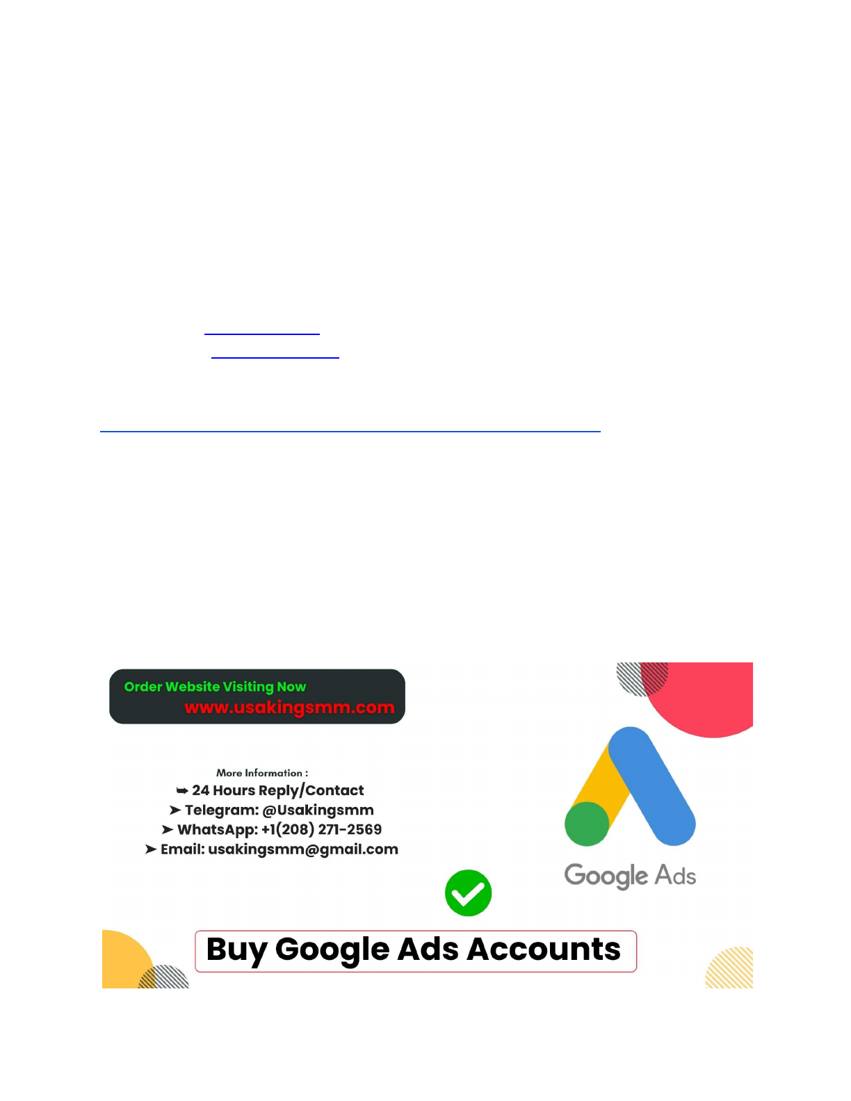 Best 7 Easy Ways To Buy Google Ads Accounts in Proven Project Buy Google Ads accounts quickly and easily from trusted sellers. With a verified account, you can start advertising your business on Google’s vast network of websites and reach potential customers with targeted ads. ➥ 24 Hours Reply/Contact ➤ Telegram: @Usakingsmm ➤ WhatsApp: +1(208) 271-2569 ➤ Email: usakingsmm@gmail.com Website Visit Now:-Click the link:- https://usakingsmm.com/product/buy-google-ads-accounts/ Google Ads is one of the most effective ways to advertise your business online, and having a verified account is essential to getting started. However, creating and verifying a new account can be time-consuming and frustrating, especially if you’re new to the platform. That’s why many businesses choose to buy Google Ads accounts from trusted sellers. With a verified account, you can start advertising your business on Google’s vast network of websites and reach potential customers with targeted ads. Whether you’re looking to drive traffic to your website, increase sales, or build brand awareness, Google Ads can help you achieve your goals. So if you’re ready to take your advertising to the next level, consider buying a Google Ads account today. https://t.me/Usakingsmm https://wa.me/message/LTVXHCQXS7XGI1?src=qr https://usakingsmm.com/product/buy-google-ads-accounts/ What is Google Ads Accounts? Google Ads Accounts are platforms provided by Google for businesses and individuals to advertise their products or services across various Google platforms, including search results, websites, YouTube, and other Google-owned properties. These accounts allow advertisers to create and manage advertising campaigns, set budgets, select target audiences, and track the performance of their ads through analytics tools provided by Google. When someone wants to advertise using Google Ads, they create an account where they can create campaigns, each with specific goals such as driving website traffic, increasing brand awareness, or generating leads. Within these campaigns, advertisers create ad groups containing specific ads and keywords relevant to their target audience. Advertisers bid on keywords, and when users search for those terms or visit websites that match those keywords, the ads may be displayed. ➥ 24 Hours Reply/Contact ➤ Telegram: @Usakingsmm ➤ WhatsApp: +1(208) 271-2569 ➤ Email: usakingsmm@gmail.com Website Visit Now:-Click the link:- https://usakingsmm.com/product/buy-google-ads-accounts/ Google Ads offers various ad formats, including text ads, display ads, video ads, and shopping ads, allowing advertisers to choose the format that best suits their marketing goals and target audience. Advertisers can also customize their ads’ targeting parameters based on factors such as demographics, location, interests, and devices. Overall, Google Ads Accounts provide businesses with a powerful platform to reach potential customers online and drive desired actions, such as website visits, purchases, or app downloads, through targeted advertising campaigns. The Importance Of Google Ads Accounts Access To Google Advertising Platform Creating a Google Ads account opens doors to an extensive advertising platform. Targeted Advertising Opportunities Google Ads accounts offer precise targeting options for effective advertising. https://t.me/Usakingsmm https://wa.me/message/LTVXHCQXS7XGI1?src=qr https://usakingsmm.com/product/buy-google-ads-accounts/ Benefits Of Buying Google Ads Accounts When it comes to advertising your business, Google Ads is a powerful tool that can help you reach your target audience and drive valuable traffic to your website. However, building a strong presence on Google Ads takes time and effort. This is where the benefits of buying Google Ads accounts come into play. Purchasing established accounts can provide immediate access to the platform, enhance credibility and trust, and offer various other advantages that can help propel your advertising efforts. Immediate Access To Established Accounts Buying Google Ads accounts allows you to skip the time-consuming process of creating and growing new accounts from scratch. With established accounts, you can immediately start running your ad campaigns, reaching potential customers and generating leads. This instant access can be invaluable in competitive markets, giving you a head start in reaching your advertising goals. Enhanced Credibility And Trust Established Google Ads accounts often come with a history of successful advertising, which can enhance your business’s credibility and trustworthiness. With an established account, you can leverage the positive track record and reputation of the account to instill confidence in potential customers. This can lead to higher click-through rates and improved ad performance, ultimately boosting your business’s visibility and success. ➥ 24 Hours Reply/Contact ➤ Telegram: @Usakingsmm ➤ WhatsApp: +1(208) 271-2569 ➤ Email: usakingsmm@gmail.com Website Visit Now:-Click the link:- https://usakingsmm.com/product/buy-google-ads-accounts/ Frequently Asked Questions How To Buy A Google Ads Account? To buy a Google Ads account, visit the Google Ads website and sign up. Follow the prompts to set up your account, enter payment details, and create your first ad campaign. How Can I Buy Google Ads Accounts Securely? To buy Google Ads accounts securely, choose reputable sellers with positive reviews and secure payment methods. What Are The Benefits Of Buying Google Ads Accounts? Buying Google Ads accounts can save time, provide established ad history, and offer access to different features. Conclusion To sum up, investing in Google Ads accounts can boost your online presence significantly. Take advantage of the benefits they offer for increased visibility and business growth. Choose a reputable provider to ensure quality and authenticity. Start leveraging Google Ads today for enhanced marketing results. https:/