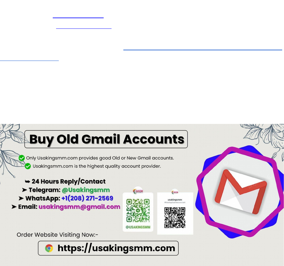 15 Steps To Buy Old Gmail Accounts In Bulk (PVA & Aged) Looking to buy old Gmail accounts? Purchase authentic aged accounts to boost your online presence and credibility. These accounts have a proven track record of activity and can provide a solid foundation for your digital marketing efforts. By investing in established accounts, you can save time and effort in building up your online reputation from scratch. With a range of options available, you can choose accounts with varying levels of activity and engagement to suit your specific needs. ➥ 24 Hours Reply/Contact ➤ Telegram: @Usakingsmm ➤ WhatsApp: +1(208) 271-2569 ➤ Email: usakingsmm@gmail.com Website Visit Now:-Click the link:- https://usakingsmm.com/product/buy-old-gmail-accounts/ The Importance Of Old Gmail Accounts Unlock the power of established Gmail accounts with our service. Older Gmail accounts carry authority and trust, benefiting your online presence. Purchase aged Gmail accounts today and boost your digital marketing efforts. In today’s digital age, an email account is a necessity for communication, especially for businesses. Gmail, being one of the most widely used email services, has become an essential tool for individuals and companies alike. However, not all Gmail accounts are created equal. Old Gmail accounts hold a significant advantage over new ones, making them a valuable asset for anyone looking to establish a strong online presence. Gmail has become one of the most popular email services globally, and its importance stems from several factors: Accessibility Gmail can be accessed from anywhere with an internet connection, making it convenient for users to check their emails on various devices. Integration It seamlessly integrates with other Google services like Google Drive, Google Calendar, Google Docs, etc., providing a comprehensive suite of tools for productivity and communication. Storage Gmail offers generous storage space for emails, allowing users to store large volumes of emails and attachments without worrying about running out of space. ➥ 24 Hours Reply/Contact ➤ Telegram: @Usakingsmm ➤ WhatsApp: +1(208) 271-2569 ➤ Email: usakingsmm@gmail.com Website Visit Now:-Click the link:- https://usakingsmm.com/product/buy-old-gmail-accounts/ Search Gmail’s powerful search feature makes it easy for users to find specific emails or information within their inbox, even in large email archives. Security Google employs robust security measures to protect Gmail accounts from hacking and phishing attempts, providing users with peace of mind regarding the safety of their emails and personal information. Customization Users can customize their Gmail experience with various themes, labels, filters, and settings to suit their preferences and workflow. Overall, Gmail has become a cornerstone of modern communication and productivity, offering users a reliable and feature-rich email service that meets the demands of both personal and professional use. Why do you need Gmail accounts? Gmail accounts are essential for various reasons: Email Communication Email remains a primary mode of communication for both personal and professional purposes. Having a Gmail account enables you to send and receive emails efficiently. Access to Google Services A Gmail account serves as a gateway to a plethora of Google services such as Google Drive, Google Calendar, Google Docs, YouTube, etc. These services are widely used for productivity, collaboration, entertainment, and more. Online Accounts and Registrations Many online platforms and services require an email address for registration and communication purposes. Having a Gmail account provides you with a reliable email address to use for signing up on websites, social media platforms, online shopping sites, etc. Work and Business Gmail accounts are commonly used for professional communication in workplaces and businesses. They offer features such as custom email addresses (via Gmail for Business), integration with productivity tools, and reliable email management. Storage and Organization Gmail provides ample storage space for emails and attachments, along with robust organizational features such as labels, filters, and search capabilities. This helps you manage your emails efficiently and keep your inbox organized. Sync Across Devices With a Gmail account, you can access your emails and other Google services from various devices, including smartphones, tablets, laptops, and desktop computers. This ensures continuity and accessibility regardless of the device you’re using. Security and Reliability Google implements advanced security measures to protect Gmail accounts from unauthorized access and cyber threats. Additionally, Gmail’s reliability ensures that your emails are delivered promptly and reliably. In summary, having a Gmail account is essential for effective communication, access to a wide range of online services, professional endeavors, and personal organization. It provides a reliable, feature-rich platform for managing your digital life. Advantages Of Buying Old Gmail Accounts When it comes to managing multiple online activities, having access to old Gmail accounts can be highly advantageous. From increased credibility to improved email deliverability, these accounts offer several benefits that can enhance your online presence. Access To Multiple Accounts Buying old Gmail accounts provides the convenience of accessing multiple accounts without the hassle of creating new ones. This allows for efficient management of various online activities and communication channels. Increased Credibility Older Gmail accounts carry a sense of established credibility, which can be beneficial for personal or professional use. They are less likely to be flagged as spam or suspicious, contributing to a more trustworthy online image. Improved Email Deliverability Old Gmail accounts tend to have better email deliverability rates compared to newly created ones. This can ensure 