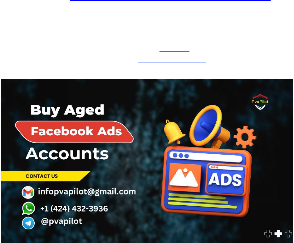 Buy Aged Facebook Ads Accounts Are you tired of facing restrictions and limits on your Facebook ad campaigns? Have you ever considered the benefits of buying aged Facebook ads accounts? If you're looking to elevate your advertising game, then this might just be the solution you've been searching for. Aged accounts come with a history that can unlock new opportunities and provide an edge in the competitive world of digital marketing. But what exactly are these accounts, and why do they hold such value? Let’s dive into everything you need to know about purchasing aged Facebook ads accounts and how they can transform your approach to online advertising. Visit Website: https://pvapilot.com/product/buy-aged-facebook-ads-accounts/ If you want to more information just contact now. 24 Hours Reply/Contact ➤E-mail: infopvapilot@gmail.com ➤Telegram: @pvapilot ➤WhatsApp: +1 (424) 432-3936 What Are Aged Facebook Ads Accounts and Why They’re Valuable https://pvapilot.com/product/buy-aged-facebook-ads-accounts/ https://t.me/pvapilot https://wa.link/ilxeu1 Aged Facebook ads accounts are profiles that have been active for an extended period, often several months or even years. These accounts typically come with a positive history of ad spend and engagement metrics. Unlike new accounts, aged ones have established credibility on the platform. The value of these accounts lies in their lower risk of suspension and higher trust from Facebook’s algorithm. Advertisers often find that campaigns run through aged accounts achieve better reach and performance compared to those launched from brand-new profiles. Additionally, many features become accessible more quickly with older accounts. For instance, you might bypass certain restrictions like initial spending limits or verification processes that newer users face. In the fast-paced world of online advertising, having an edge can make all the difference. This is where owning an aged account becomes a strategic advantage for scaling your campaigns effectively. The Advantages of Using an Aged Ad Account for Campaigns Aged Facebook Ads accounts come with numerous benefits that can elevate your marketing efforts. First and foremost, these accounts often have a longer history of activity. This established track record can lend credibility to your ad campaigns, enhancing trust among potential customers. Additionally, aged accounts typically enjoy higher spending limits. This flexibility allows marketers to scale their campaigns without running into immediate restrictions or penalties from the platform. The algorithm also tends to favor older accounts due to their reliability and consistent performance. With an aged account, you may experience fewer delays in ad approvals and more efficient targeting options thanks to accumulated data over time. Moreover, seasoned ads accounts are less likely to face sudden bans or suspensions compared to new ones. They’ve built a reputation within the platform that works in your favor when launching ambitious advertising strategies. How to Verify an Aged Facebook Ads Account Is Clean Verifying the cleanliness of an aged Facebook Ads account is crucial. Start by checking its ad history. Look for consistent activity without any policy violations. A clean account should have a positive track record. Next, review the payment method attached to the account. Ensure it hasn’t been flagged or previously banned. Accounts linked to suspicious payment methods can cause issues later on. Examine engagement metrics as well. High-quality interactions indicate that past campaigns were well-received and compliant with Facebook’s guidelines. It’s also wise to check for any warnings or restrictions in the Business Manager settings. This gives insight into potential problems you might face when using the account. Consider reaching out to previous owners if possible. They may provide valuable information about their experience with the account, ensuring transparency before your purchase decision. PVA, Warmed, and Aged — Which Type Fits Your Needs? When considering the purchase of Facebook Ads accounts, it’s essential to understand your options. PVA accounts are phone-verified and offer a solid foundation for campaigns. They typically have fewer restrictions but may require some additional warming up to establish credibility. Warmed accounts lie in between. Having been used for a while without issues, these accounts often strike that balance—providing reliability with less risk than brand new ones. They're ideal if you want an account that's already gained trust from the platform. Aged accounts come with significant advantages. With established history and performance metrics, they can be particularly beneficial for scaling ads quickly or bypassing certain limitations set by Facebook. Choosing depends on your specific needs and goals. Assess factors like budget, urgency, and long-term strategy before making a decision on which type aligns best with your advertising objectives. Trusted Sources: Where to Find Reliable Aged Accounts Finding reliable sources for aged Facebook Ads accounts can be a daunting task. It’s essential to choose platforms that have established reputations in the industry. Start by exploring digital marketing forums and communities. Experienced marketers often share insights and recommendations about where they’ve had success purchasing aged accounts. Consider specialized websites dedicated to selling social media accounts. Look for sellers with positive reviews, transparent policies, and a clear return or guarantee policy. Social media marketplaces can also offer leads but tread cautiously here. Verify seller credibility through ratings and feedback from previous customers. Networking within marketing circles might yield personal referrals too. A trusted recommendation is often more valuable than any ad you’ll find online. Research is key; take your time to investigate potential vendors before making a pur