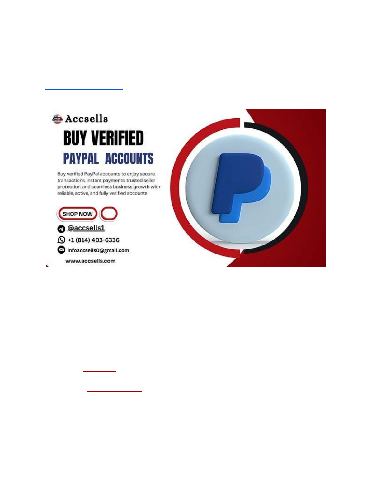 How to Get Verified PayPal Accounts: Step-by-Step Guide A verified PayPal account is an account that has been linked to a bank account or credit card. This allows PayPal to confirm the identity of the account holder and protect them from fraud. If you’re looking to buy a verified PayPal account, there are a few things you need to know. First, PayPal accounts can only be verified by the account holder. This means that if you’re buying an account from someone else, they will need to provide you with their login information so that you can verify the account yourself. If You want to more information just contact now 24 Hours Reply/ Contact : – ◯ Telegram: @accsells1 ◯ WhatsApp: +1 (814) 403–6336 ◯ E-mail: infoaccsells0@gmail.com Website Visit : https://accsells.com/product/buy-verified-paypal-accounts/ https://accsells.com/product/buy-verified-paypal-accounts/ https://t.me/accsells1 https://api.whatsapp.com/send?phone=18144036336 mailto:infoaccsells0@gmail.com https://accsells.com/product/buy-verified-paypal-accounts/ Second, when verifying a PayPal account, you’ll need to add and confirm your bank account or credit card. This is how PayPal verifies your identity and ensures that you’re able to make and receive payments. Finally, keep in mind that PayPal may limit your account if they suspect fraudulent activity. So if you’re planning on using your account for anything other than personal use, be sure to read up on PayPal’s policies first. Can I Buy a Verified Paypal Account? There are a few ways that you can get a verified PayPal account. The first is to sign up for a new PayPal account and verify your email address, phone number, and bank account or credit card. This can all be done through the PayPal website. The second way to get a verified PayPal account is to have someone else send you money through PayPal. Once you receive the money, PayPal will ask you to confirm your email address, phone number, and bank account or credit card. You will need to do this before you can access the funds. The third way to get a verified PayPal account is to buy an existing one from someone who already has one. There are many places online where you can find people selling their verified accounts. Just make sure that the person you’re buying from is reputable and that they’re not going to scam you. How Can I Open a Verified Paypal Account? If you’re looking to open a verified PayPal account, there are a few things you’ll need to do. First, you’ll need to sign up for a PayPal account and provide some basic information about yourself. Once you’ve done that, you’ll need to link your bank account or credit card to your PayPal account so that PayPal can verify your identity. After your identity has been verified, you’ll be able to use all of the features of your PayPal account, including sending and receiving money. How Much Does It Cost to Verify Your Paypal Account? It costs nothing to verify your PayPal account. All you need is a credit or debit card and an email address. Can Paypal Be Verified Without a Bank Account? It is possible to verify your PayPal account without linking a bank account. You can do this by linking a credit or debit card, or by using PayPal’s Instant Transfer service to instantly withdraw funds from your PayPal balance to your linked bank account. However, you will need to have a balance in your PayPal account in order to use Instant Transfer, and there are limits on how much you can transfer per day. Additionally, if you choose to verify your PayPal account with a credit or debit card, you may be charged a fee by your card issuer. Buy Verified Paypal Accounts Usaseoseller When it comes to online payments, few options are as popular as PayPal. That’s why so many people are interested in buying verified PayPal accounts. But what does it mean to have a verified account? And is it really worth the effort? In short, a verified PayPal account means that you’ve linked your account to a credit or debit card, and that you’ve gone through the process of confirming your identity with PayPal. This gives you access to all the features of PayPal, including the ability to send and receive money from anywhere in the world. So why would you want to buy a verified PayPal account? There are a few reasons. First, if you’re planning on doing any business online, having a verified PayPal account is practically a necessity. This ensures that you can accept payments from anyone, anywhere — which is essential for an online business. Second, having averified account also allows you to take advantage of all the features that PayPal has to offer. For example, did you know that you can use PayPal to send invoices? Or that you can set up automatic payments so that customers can pay you without even logging into their accounts? These are just two of the many benefits that come with being verified. Finally, verifying your identity with PayPal protects both you and your customers by ensuring that only authorized transactions take place. This adds an extra layer of security for both parties involved in any transaction — something everyone can appreciate! Overall, there are plenty of good reasons to buy a verified PayPal account. If you’re planning on doing any sort of business online — or even if you just want access to all the features and benefits that come with using PayPal — then getting yourself a verified account is definitely worth considering! If You want to more information just contact now 24 Hours Reply/ Contact : – ◯ Telegram: @accsells1 ◯ WhatsApp: +1 (814) 403–6336 ◯ E-mail: infoaccsells0@gmail.com Website Visit : https://accsells.com/product/buy-verified-paypal-accounts/ Buy Usa Verified Paypal Accounts If you’re looking to buy USA verified PayPal accounts, there are a few things you need to know. PayPal is one of the most popular online payment processors in the world, and for good reason. It’s fast, convenient, and secure. https