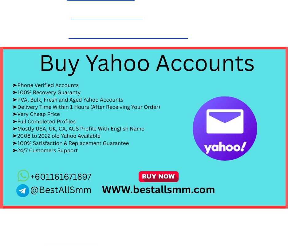 Top 11 Website To Buy Yahoo Accounts Yahoo has been around for decades, and its email platform remains one of the most widely used worldwide. People buy Yahoo accounts for reasons like online advertising, bulk communication, business branding, or backup accounts for important work. Sometimes a single email simply isn’t enough when different projects or clients demand separate channels. Purchasing Yahoo accounts saves time compared to creating them manually, especially when you need many at once. If you want to more information just contact now ➥➤ E-mail: bestallsmm@gmail.com ➥➤ Telegram: @BestAllSmm ➥➤ WhatsApp: +601161671897 ➥➤ Buy Now: https://bestallsmm.com/ Benefits of Having Multiple Yahoo Accounts Having multiple Yahoo accounts is like having different labeled drawers for various tasks—one for business, another for personal life, one for marketing, etc. It helps with organization and privacy. For companies, multiple accounts allow team members to handle customer support or promotions separately. Also, if one account faces issues, work continues smoothly using another. Types of Yahoo Accounts You Can Purchase When buying Yahoo accounts, you’ll find several categories: · Fresh Yahoo Accounts – newly created and secure · Aged Yahoo Accounts – older accounts with a trusted history · Phone-Verified Accounts (PVA) – include high security & good credibility · Unlimited Storage Accounts – perfect for file-heavy communication Each type serves different business goals. For example, aged accounts are ideal for marketing because they appear more authentic and less suspicious to platforms. Business Uses of Yahoo Accounts Businesses love Yahoo because it’s reliable and respected. With purchased accounts, companies can easily: · Handle customer inquiries separately · Create Yahoo Business Pages and listings · Engage in email outreach campaigns · Manage different departments using unique email IDs One Yahoo account can represent each division of a company, making communication smoother and more professional. Marketing Opportunities with Yahoo Accounts Email marketing remains powerful even today. Yahoo accounts can help with: · Bulk email campaigns with better deliverability · Newsletter sign-ups using multiple verified accounts · Managing social media & advertisement platforms · Influencer partnerships and outreach If you think of marketing as planting seeds, multiple Yahoo accounts are like having multiple gardens—you grow more with better chances of success. Yahoo Accounts for Personal and Freelance Use Freelancers often juggle different clients at once. Separate Yahoo accounts help maintain boundaries and organization. Personal users also benefit: one account for online shopping, another for finance, and one for private communication. This structure reduces spam and keeps important messages from getting buried. Factors to Consider Before Buying Yahoo Accounts Before making a purchase, always check: · Account Verification Level — phone or email verified? · Age of Account — older accounts are more trusted · Source Reputation — avoid low-quality sellers · Region/IP Origin — beneficial for location-specific services · Security Features — recovery phone, strong passwords A thoughtful purchase avoids future headaches and unlocks better online performance. Where to Buy Yahoo Accounts Safely Only buy from trusted providers with: ✅ Good customer reviews ✅ Secure payment options ✅ Replacement guarantees ✅ Quick delivery & customer support Avoid sellers who offer extremely cheap accounts—they often recycle hacked accounts, which can lead to bans or privacy risks. Choose vendors who guarantee authenticity and security. If you want to more information just contact now ➥➤ E-mail: bestallsmm@gmail.com ➥➤ Telegram: @BestAllSmm ➥➤ WhatsApp: +601161671897 ➥➤ Buy Now: https://bestallsmm.com/ Aged Yahoo Accounts vs Fresh Yahoo Accounts Aged Accounts These have been active for months or years. They look more natural online and are ideal for marketing or bulk messaging. Platforms trust them more because they have activity history. Fresh Accounts Brand-new accounts with clean profiles. They are great for personal backup or new projects where no past activity is needed. Choosing depends on your goals: marketing needs aged accounts, while regular use can go with fresh ones. Yahoo Accounts with Recovery Email & Phone The best Yahoo accounts come with: · Recovery email linked · Verified phone number · Easy password change options These features keep your account safe and reduce suspension or hacking risks. Think of recovery options as spare keys—it’s always good to have backups. Best Security Practices After Buying Once you buy Yahoo accounts, follow these steps immediately: · Change passwords for safety · Update recovery information · Enable two-factor authentication (2FA) · Avoid using all accounts on same device/IP · Keep login activity private and secure Your accounts are like digital property—protect them like you would protect your house. Pricing Guide for Yahoo Accounts Prices can vary depending on: Account Type Approx. Price (Per Account) Fresh Yahoo Account $1 – $3 Phone-Verified Yahoo Account $3 – $8 Aged Yahoo Account $5 – $15+ Bulk Packages Discounted pricing Buying in bulk generally reduces overall costs. Most businesses purchase 10–100 accounts for campaigns. Why Yahoo is Still Relevant in 2025 Yahoo may not be the flashiest platform, but it remains stable with millions of active users. Its excellent security features, strong spam filtering, and business-friendly tools keep it relevant. Many government offices and corporate environments still trust Yahoo email—showing its durability and credibility even in modern digital landscapes. How to Maintain and Manage Multiple Yahoo Accounts Managing many accounts can feel overwhelming, but these tips help: · Use a password manager to store logins securely