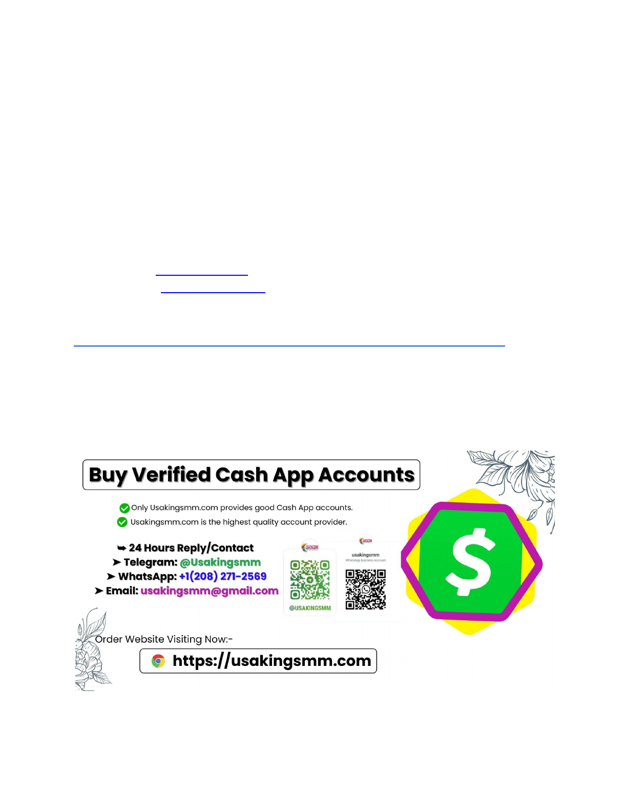 The Definitive Guide to Buy Verified Cash App Accounts in 2025 Trusted and verified payment platform is essential. That’s where Cash App comes in. But what exactly is a verified Cash App account, and why should you consider purchasing one? In this blog post, we’ll explore the benefits of buy verified cash app accounts and where you can find the best deals online. So, if you’re ready to take your financial transactions to the next level, read on! ➥ 24 Hours Reply/Contact ➤ Telegram: @Usakingsmm ➤ WhatsApp: +1(208) 271-2569 ➤ Email: usakingsmm@gmail.com Website Visit Now:-Click the link:- https://usakingsmm.com/product/buy-verified-cash-app-accounts/ What is Cash App? Cash App, launched by Square Inc. in 2013, is a mobile payment service that allows users to transfer money to one another using a mobile app. Over the years, it has grown in popularity due to its ease of use, fast transactions, and additional features like the Cash Card, direct deposits, and Bitcoin trading. Key Features of Cash App: ● Peer-to-Peer Payments ● Direct Deposits https://t.me/Usakingsmm https://wa.me/message/LTVXHCQXS7XGI1?src=qr https://usakingsmm.com/product/buy-verified-cash-app-accounts/ ● Bitcoin Trading ● Stock Investments ● Cash Card (a customizable debit card) What Is Verified Cash App Account? When you sign up for Cash App, your account starts off as unverified. However, you can upgrade to a verified status by providing certain personal information such as your name, date of birth, and the last four digits of your Social Security number. This verification process helps ensure that you are a real person with legitimate intentions. Once your Cash App account is verified, you gain access to additional features and benefits. You can send and receive larger amounts of money, enabling more substantial financial transactions with ease. Verified accounts also enjoy increased protection against fraud and unauthorised activity. Having a verified Cash App account allows you to link your bank accounts or credit cards securely. This makes transferring funds between different payment sources seamless and efficient. To these perks, having a verified Cash App account opens the door to buying Bitcoin (BTC). With BTC enabled on your account, you can easily invest in this popular cryptocurrency directly within the app. Buy Verified Cash App Account ➥ 24 Hours Reply/Contact ➤ Telegram: @Usakingsmm ➤ WhatsApp: +1(208) 271-2569 ➤ Email: usakingsmm@gmail.com Website Visit Now:-Click the link:- https://usakingsmm.com/product/buy-verified-cash-app-accounts/ Why Buy Verified Cash App Account? Enhanced Transaction Limits A verified Cash App account significantly increases your transaction limits. Unverified accounts are limited in how much money they can send and receive, which can be a hindrance for those who use the app for business or high-volume transactions. Verification removes these limits, allowing for larger and more frequent transactions. Access to Additional Features Verification opens up a host of additional features, such as the ability to use Cash App’s Cash Card and access Bitcoin trading and stock investments. These features can be particularly useful for those looking to manage their finances more effectively or explore investment opportunities directly from the app. Increased Security Security is a paramount concern when dealing with financial transactions. A verified Cash App account offers enhanced security features, ensuring your transactions and personal information https://t.me/Usakingsmm https://wa.me/message/LTVXHCQXS7XGI1?src=qr https://usakingsmm.com/product/buy-verified-cash-app-accounts/ are better protected. This can provide peace of mind, especially for those who frequently use the app for significant transactions. Buy BTC Enable Cash app Accounts Are you looking to buy BTC enabled Cash App accounts? Well, you’re in luck! There are various platforms where you can find verified Cash App accounts that are also Bitcoin-enabled. These accounts offer a convenient way for users to manage their cash and cryptocurrency transactions all in one place. Why would someone want to buy BTC enable Cash App accounts? The answer is simple – it provides flexibility and convenience. By having a verified account with Bitcoin capabilities, users can easily send and receive payments using both traditional currency and cryptocurrencies. This opens up new opportunities for individuals who want to venture into the world of digital assets or simply need an efficient way to handle their financial transactions. buy cash app accounts When considering where to buy verified cash app account reddit, it’s important to choose a reputable platform that offers reliable services. Look for sellers who have positive reviews from previous customers and provide secure payment options. Doing thorough research will ensure that you get a high-quality account that meets your needs. Verified cash app for sale Buying BTC enabled Cash App accounts can be beneficial for those seeking seamless integration between traditional currency and cryptocurrencies. buy cash app accounts With the right platform, you can acquire a verified account that allows you to conveniently manage your finances while exploring the exciting world of digital assets. So why wait? Start exploring your options today! Why You Need a Verified Cash App Account Security Reasons A verified Cash App account offers enhanced security features. Verification involves confirming your identity by providing personal information and documents. This process helps protect your account from fraud and unauthorized access. Transaction Limits Unverified accounts have lower transaction limits, which can be restrictive if you need to send or receive large amounts of money. Verification increases these limits, allowing for more flexibility in your transactions. Enhanced Features With a verified account, you gain access to additional features such as direct deposi