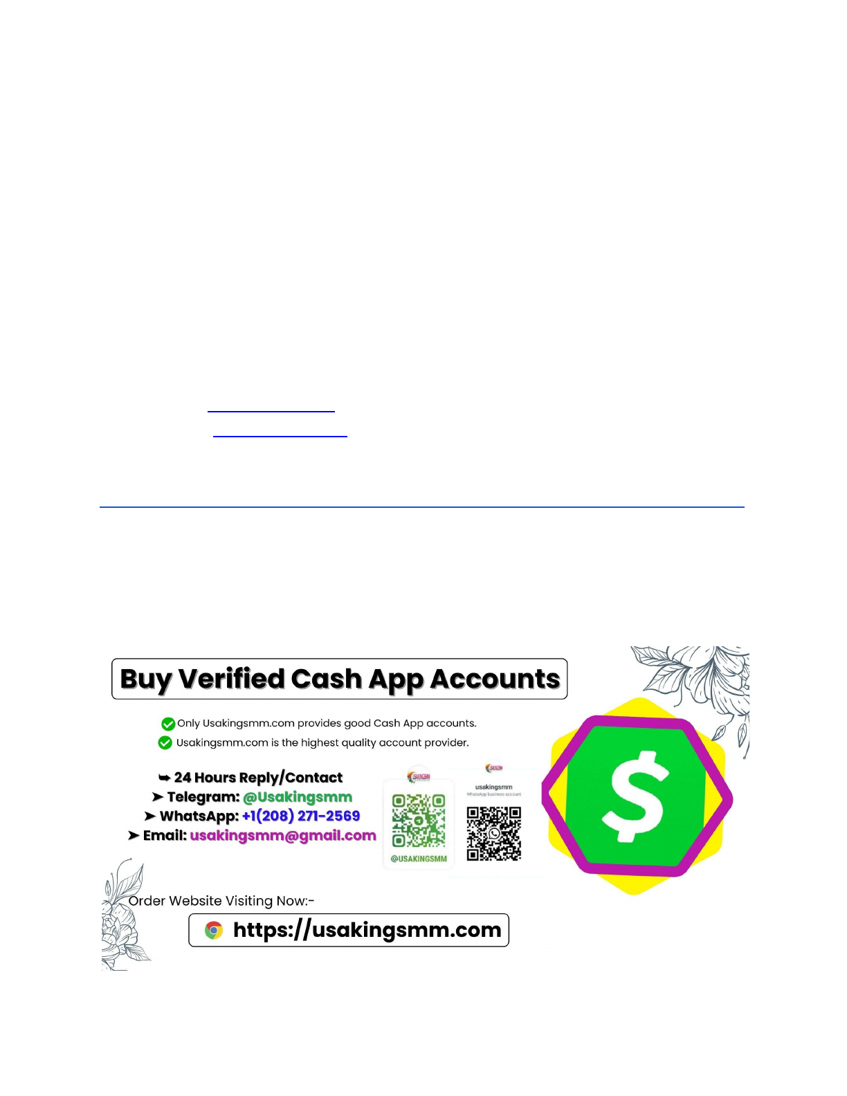 How to Buy Verified Cash App Accounts | Global Payment Solutions Buying verified Cash App accounts can seem confusing if you’re new to it, but this guide will help you understand everything clearly. Verified accounts are important because they give you more trust and safety when sending or receiving money. To buy a verified Cash App account, you need to find a reliable seller who offers genuine accounts with proper verification. It is important to learn about the process and know how to avoid scams or fake accounts. This guide explains how to check if an account is real, what steps you should take, and how to use the account safely. ➥ 24 Hours Reply/Contact ➤ Telegram: @Usakingsmm ➤ WhatsApp: +1(208) 271-2569 ➤ Email: usakingsmm@gmail.com Website Visit Now:-Click the link:- https://usakingsmm.com/product/buy-verified-cash-app-accounts/ Why You Should Buy Verified Cash App Accounts for Secure Transactions Buying verified Cash App accounts is a smart choice if you want safe and secure money transfers. https://t.me/Usakingsmm https://wa.me/message/LTVXHCQXS7XGI1?src=qr https://usakingsmm.com/product/buy-verified-cash-app-accounts/ Verified accounts give you more trust because they have passed important checks, reducing the chance of fraud or problems. When you use a verified account, you can send and receive money without worry, knowing your transactions are protected. This is especially helpful if you use Cash App for business or large payments. Verified accounts also help avoid limits or blocks that can happen with unverified ones. Choosing to buy a verified Cash App account means you get peace of mind and smoother, safer transactions every time you use the app. It is an important step to protect your money and personal information online. Buy Verified Cash App Accounts: What You Need to Know When you decide to Buy Verified cash app Accounts, there are several important things you need to know. Verified accounts offer better security and easier access to cash app’s features, making your trading experience smoother. It is essential to find a trustworthy seller when you Buy Verified cash app Accounts to avoid scams or fake profiles that can cause problems. Before you Buy Verified cash app Accounts, understand the verification process and what comes with the account to ensure it meets your needs. Always research carefully and confirm the seller’s reputation before you Buy Verified cash app Accounts. Choosing to Buy Verified cash app Accounts from reliable sources protects your funds and gives you peace of mind when trading on the platform. ➥ 24 Hours Reply/Contact ➤ Telegram: @Usakingsmm ➤ WhatsApp: +1(208) 271-2569 ➤ Email: usakingsmm@gmail.com Website Visit Now:-Click the link:- https://usakingsmm.com/product/buy-verified-cash-app-accounts/ Understanding the Process to Buy Verified Cash App Accounts Understanding the process to Buy Verified Cash App Accounts is important for anyone who wants a safe and smooth experience. First, you need to find a trusted seller who offers genuine verified accounts. When you Buy Verified Cash App Accounts, the seller usually provides all the necessary details like login information and verification status. It is important to check these details carefully before completing the purchase. The process also involves confirming that the account is active and secure to avoid any future problems. How to Safely Buy Verified Cash App Accounts Online Buying verified Cash App accounts online can be risky if you’re not careful, so it’s important to take steps that ensure your safety. Start by researching the platform or seller thoroughly—only choose those with a trustworthy reputation and positive feedback from past customers. Verified accounts should come with full access credentials and a clean usage history to avoid legal or https://t.me/Usakingsmm https://wa.me/message/LTVXHCQXS7XGI1?src=qr https://usakingsmm.com/product/buy-verified-cash-app-accounts/ security issues after purchase. Never rush into deals that seem too good to be true, as scammers often lure buyers with unrealistically low prices. How to Choose the Best Seller to Buy Verified Cash App Accounts When you’re planning to Buy Verified cash app Accounts, it’s important to choose a seller who is both reliable and experienced in delivering authentic accounts. The best sellers provide full access credentials and ensure that the accounts meet all verification standards, including identity and email confirmation. Always research reviews and buyer feedback to see if others had a positive experience when they decided to Buy Verified cash app Accounts from that particular source. Communication should be clear and professional, with the seller offering detailed information about what the account includes. Avoid sellers who rush the process or offer vague responses, as this may indicate a scam. How to Verify the Authenticity When You Buy Verified Cash App Accounts When you buy verified Cash App accounts, it’s crucial to verify their authenticity before completing any transaction. A genuine account should come with full access, including the linked email, phone number, and bank verification if applicable. Ask the seller for proof of verification, such as screenshots or live demonstrations, and check if the account has a clean history with no reports of suspicious activity or previous bans. Always test the login credentials immediately after receiving them to confirm that everything works as promised. A real verified account will allow you to update personal details, set up security features, and perform basic transactions without errors or restrictions. Buy Verified Cash App Accounts: Tips to Avoid Scams When planning to Buy Verified cash app Accounts, it’s essential to stay alert and protect yourself from common online scams. Scammers often create fake listings or use stolen information to trick buyers into purchasing non-functional or banned accounts. To safely Buy Verified cash