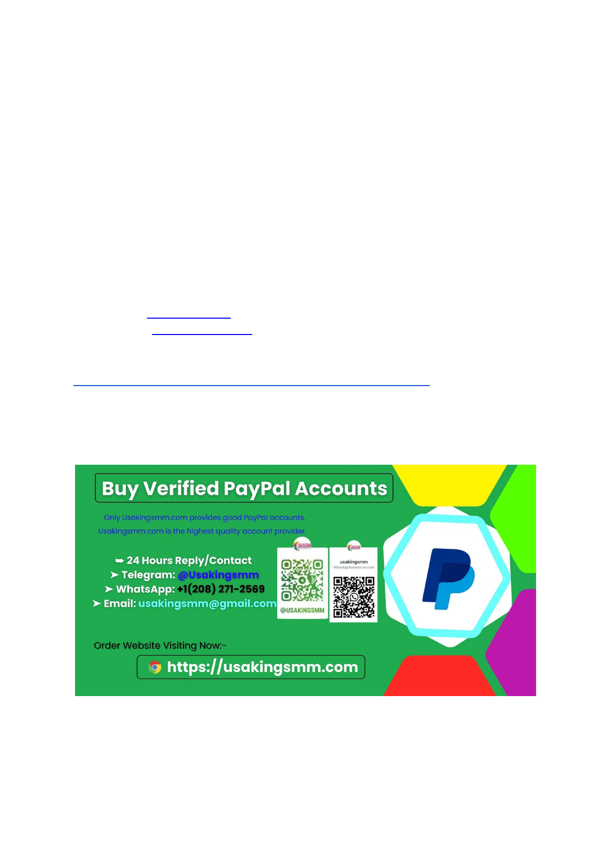 The Ultimate Guide to Buy Verified PayPal Accounts in 2025 Buy Verified PayPal Accounts to ensure the security and authenticity of your online transactions and payment processes. With a verified PayPal account, you can confidently engage in e-commerce without worrying about potential risks or scams. In today’s digital age, online security is of utmost importance. Having a verified PayPal account provides an extra layer of protection for both buyers and sellers, as it confirms the legitimacy and trustworthiness of the account holder. Furthermore, a verified PayPal account allows you to access additional features and benefits, such as increasing your transaction limits and building a strong online reputation. ➥ 24 Hours Reply/Contact ➤ Telegram: @Usakingsmm ➤ WhatsApp: +1(208) 271-2569 ➤ Email: usakingsmm@gmail.com Website Visit Now:-Click the link:- https://usakingsmm.com/product/buy-verified-paypal-accounts/ Whether you are running an online business or simply require a safe and reliable payment method, buying a verified PayPal account is a wise investment that can save you time, money, and stress. We will explore the advantages of purchasing verified PayPal accounts and guide you through obtaining one. What is a Verified PayPal Account? A verified PayPal account has been authenticated by PayPal. Verification typically involves linking your account to a bank or credit card and confirming your identity through various https://t.me/Usakingsmm https://wa.me/message/LTVXHCQXS7XGI1?src=qr https://usakingsmm.com/product/buy-verified-paypal-accounts/ means, such as providing identification documents. This process elevates your account’s credibility and enhances your transaction limits, making it easier to send and receive money without restrictions. Definition Of A Verified PayPal Account A verified PayPal account has been linked to a verified bank account or credit/debit card. This verification process adds an extra layer of security and trust, not only for the account holder but also for the individuals or businesses transacting with it. When a PayPal account is verified, it indicates that the account holder has completed the necessary steps to confirm their identity and financial information, thereby reducing the risk of fraudulent activities. Benefits Of Having A Verified PayPal Account Having a verified PayPal account offers several benefits, including: ● Enhanced Security: With a verified account, users can enjoy increased security and peace of mind, knowing that their account has undergone an additional verification process, making it more difficult for unauthorized users to access it. ● Expanded Transaction Limits: Verified PayPal accounts often have higher transaction limits, allowing users to send, receive, and withdraw significant amounts of money, which can be particularly beneficial for businesses and high-volume users. ● Improved Credibility: A verified PayPal account can enhance the credibility of the account holder, especially for individuals and businesses engaging in e-commerce or online transactions, as it demonstrates a commitment to transparency and trustworthiness. These are just a few of the advantages that come with having a verified PayPal account. Whether you’re an individual managing personal finances or a business conducting online transactions, the benefits of verification are clear. ➥ 24 Hours Reply/Contact ➤ Telegram: @Usakingsmm ➤ WhatsApp: +1(208) 271-2569 ➤ Email: usakingsmm@gmail.com Website Visit Now:-Click the link:- https://usakingsmm.com/product/buy-verified-paypal-accounts/ How To Buy A Verified PayPal Account? When exploring how to buy a verified PayPal account, it’s essential to approach the process with caution and awareness of the potential risks involved. A verified PayPal account provides extra security, allowing users to send and receive funds with higher limits and added protection. While buying such an account may seem like a shortcut to accessing PayPal’s full features, it’s crucial to ensure the account is both legitimate and in compliance with PayPal’s policies. https://t.me/Usakingsmm https://wa.me/message/LTVXHCQXS7XGI1?src=qr https://usakingsmm.com/product/buy-verified-paypal-accounts/ A verified account typically requires linking to a bank account or credit card, verifying personal information, and going through security checks. However, buying a PayPal account from third-party sources can lead to fraud, account bans, or identity theft if the seller is untrustworthy. Therefore, it’s best to verify your PayPal account directly or use reputable services that help verification rather than attempting to buy an already verified account. Always conduct thorough research and avoid any deals that seem too good to be true. Remember that using a PayPal account responsibly also requires understanding the terms of service and protecting you from potential financial risks. Researching Reliable Sellers Researching reliable sellers is the crucial first step in buying a verified PayPal account. To find reliable sellers: 1. Look for reputable online marketplaces or forums where verified PayPal accounts are traded. 2. Read reviews and ratings for different sellers to gauge their reputation. 3. Check if the seller has a strong track record of delivering verified PayPal accounts securely and within a reasonable timeframe. Checking Account Credentials Once you have shortlisted potential sellers, it is essential to thoroughly check the account credentials offered: ● Ask the seller for the account’s verification status, ensuring it is verified and ready for immediate use. ● Verify the account’s age, as older accounts generally have a better track record and are less likely to raise red flags. ● Ensure the account is created in your desired country or region for a seamless financial experience. The Risks Of Buying A Verified PayPal Account When considering purchasing a verified PayPal account, it’s essential to un