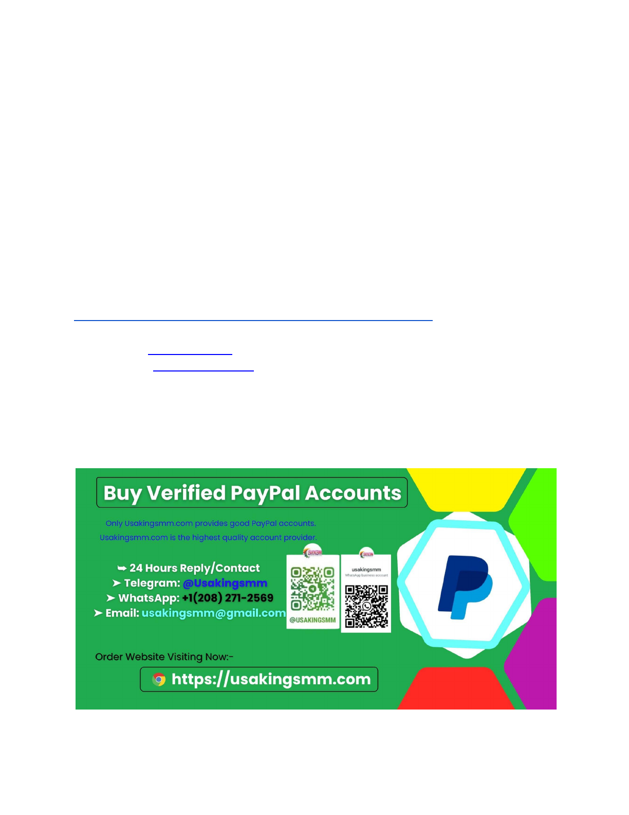 What are the benefits of buying verified PayPal accounts? PayPal is a versatile transaction system that facilitates secure online transactions for a variety of purposes. Users can manage finances and make payments in diverse sectors, giving them the power to control their financial interactions. PayPal has revolutionized digital payments, offering secure financial management and effortless money transfers across many industries. This online payment system allows users to purchase goods, pay for services, and even donate to causes online. To use PayPal for business purposes, consider purchasing PayPal business accounts. Website Visit Now:-Click the link:- https://usakingsmm.com/product/buy-verified-paypal-accounts/ ➥ 24 Hours Reply/Contact ➤ Telegram: @Usakingsmm ➤ WhatsApp: +1(208) 271-2569 ➤ Email: usakingsmm@gmail.com Embracing a user-friendly interface, PayPal caters to personal and business needs, streamlining the process of sending and receiving funds globally. PayPal ensures that user accounts and transactions are secure. It is an indispensable tool for freelancers, entrepreneurs, e-commerce businesses and so on. https://usakingsmm.com/product/buy-verified-paypal-accounts/ https://t.me/Usakingsmm https://wa.me/message/LTVXHCQXS7XGI1?src=qr Transferring money to friends and family, a PayPal account stands out as a multifaceted solution for modern financial interactions in the digital realm. When you buy a verified PayPal account, you are purchasing an account that has been confirmed as authentic and is ready for immediate use. Buy verified PayPal accounts at (Usakingsmm). What is PayPal? PayPal is an online payment system that allows individuals and businesses to send and receive money electronically. It is an alternative to traditional paper methods such as checks and money orders. Users can link their bank accounts, debit cards, or credit cards to their PayPal accounts to facilitate transactions. PayPal is widely used for online shopping, freelancing, and peer-to-peer payments. It also offers additional services like PayPal.me for requesting payments, PayPal Business for businesses, and PayPal Checkout for merchants to accept payments on their Usakingsmm. Website Visit Now:-Click the link:- https://usakingsmm.com/product/buy-verified-paypal-accounts/ ➥ 24 Hours Reply/Contact ➤ Telegram: @Usakingsmm ➤ WhatsApp: +1(208) 271-2569 ➤ Email: usakingsmm@gmail.com Why PayPal is used in buy/sell organizations? PayPal is widely used in buy/sell organizations due to its secure, fast, and convenient payment processing system. It allows businesses and individuals to conduct transactions across borders without the hassle of currency conversion or the need for traditional banking services. PayPal’s buyer and seller protection policies ensure that both parties are safeguarded, making it a reliable option for e-commerce and other online transactions. Additionally, its easy integration with various online platforms and compatibility with credit/debit cards enhance its accessibility. The ability to handle multiple currencies and provide quick settlements adds to its appeal for global trade. Furthermore, PayPal offers fraud detection tools and encryption technology, ensuring that users’ sensitive information is kept safe. This combination of security, global reach, and user-friendly features makes PayPal an essential tool for online buy/sell organizations. Benefits Of Using A Personal Verified PayPal Account A personally verified PayPal account offers several benefits, such as increased security, faster transactions, and access to a broader range of online retailers. With a verified account, users https://usakingsmm.com/product/buy-verified-paypal-accounts/ https://t.me/Usakingsmm https://wa.me/message/LTVXHCQXS7XGI1?src=qr can confidently buy products and services online, knowing their financial information is protected. Buy Verified PayPal Accounts Using a personally verified PayPal account has several advantages, making it a preferred choice for individuals. Below are the key benefits of utilizing a personally verified PayPal account: ● Access to Secure Transactions: Verified PayPal accounts offer an added layer of security, safeguarding your transactions and personal information. ● Increased Credibility: A verified account boosts your credibility as a buyer or seller, enhancing trust and confidence in your transactions. ● Expanded Payment Options: With a verified account, you can access a broader range of payment options, enabling seamless transactions with various merchants. ● Enhanced Buyer Protection: Verified accounts provide additional protection features, ensuring a secure and reliable shopping experience. ● Streamlined Withdrawal Process: Verified PayPal accounts facilitate a smooth withdrawal process, allowing quick access to funds. Utilizing a personally verified PayPal account offers security, credibility, and convenience, making it an ideal choice for online transactions. Buy Personal usa,uk,ca PayPal Accounts If you’re looking to buy personal PayPal accounts from the USA, UK, or Canada, it’s crucial to understand the risks and benefits involved. Personal PayPal accounts offer an easy and secure way to handle online transactions for personal use, whether you’re shopping online, receiving payments, or sending money to friends and family. When purchasing a verified PayPal account from reputable sources, it ensures that you have access to full account functionalities, including higher sending and receiving limits. It’s also essential to look for accounts with a clean transaction history to avoid potential issues like account suspension.Buy Verified PayPal Accounts However, always be cautious of potential scams in the market and verify the seller’s credibility before making a purchase. Business Verified PayPal accounts Are you looking to purchase verified PayPal accounts for your business? Our business-verified PayPal accounts provide a secure and re