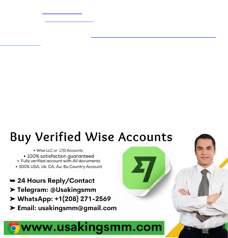Best 8 Sites to Buy Verified Wise Accounts Quickly & Securely If you are seeking to Buy Verified Wise Accounts then you are in the correct place. You can Buy clever Accounts via this internet site with none trouble. Don’t hesitate to Buy wise Accounts from us to benefit a couple of functions. Also, It’s Cheap to buy. ➥ 24 Hours Reply/Contact ➤ Telegram: @Usakingsmm ➤ WhatsApp: +1(208) 271-2569 ➤ Email: usakingsmm@gmail.com Website Visit Now:-Click the link:- https://usakingsmm.com/product/buy-verified-wise-accounts/ Buy proven Transferwise Account Acquire peace of thoughts with a verified TransferWise account. Our pre-verified debts make sure protection and reliability, streamlining your worldwide cash transfers and monetary transactions. Say good-bye to useless hassles and embark on seamless pass-border monetary journeys. To begin sending, spending, and receiving money internationally, It is the proper decision to get a smart account or purchase transferwise account (some thing you say) from our relied on vcc store. Buy Wise bills for money switch At Wise Accounting, our tech-driven technique guarantees efficiency for both us and our clients. We integrate present day technology with professional enterprise evaluation and thorough tax research to hold our clients up to date and assist them achieve their commercial enterprise and private dreams. If you’re looking to purchase proven Wise bills, you’ve come to the proper location. We provide completely established and steady Wise debts on the market. Make your Wise account purchase hassle-free by means of shopping for at once from our online money switch account save. TransferWise Account is now Wise Account The TransferWise Account, which underwent a good sized transformation on February 22, 2021, is now called the Wise Account. With this evolution, Wise remains a dependable and user-friendly platform for dealing with your worldwide money transfers, banking, and monetary sports. The transition to Wise represents a dedication to imparting customers with even greater efficient and cost-powerful solutions for their worldwide economic wishes, all beneath a unmarried, depended on emblem. Today, our logo aligns with the diverse and international network we serve — individuals and companies navigating multi-foreign money lives. Wise represents all and sundry who stay, paintings, travel, or assist cherished ones throughout borders, united via the desire to cast off the barriers that restrict surely without boundary lines monetary studies. ➥ 24 Hours Reply/Contact ➤ Telegram: @Usakingsmm ➤ WhatsApp: +1(208) 271-2569 ➤ Email: usakingsmm@gmail.com Website Visit Now:-Click the link:- https://usakingsmm.com/product/buy-verified-wise-accounts/ For our valued clients, this transition brings minimal instantaneous modifications. We now function below the call “Wise” or “Wise Business” relying for your utilization. Your existing verified Wise account may be accessed the use of your present day e mail and password; there’s no want for a brand new account. Currently, transferwise.Com redirects to clever.Com. While our logo and app names have evolved, our iconic speedy flag endures as a symbol of without borderlines money. You’ll also discover sparkling colours, language, and designs improving your Wise enjoy. Rest confident, the core Wise experience stays steadfastly rapid, cheap, and convenient. Our undertaking to free up money from geographical confines stays unwavering. Join the ten million who already agree with us with their global monetary wishes, and live tuned for what’s to come back as we undertaking to carry financial equity and transparency to tens of millions greater. We invite you to discover our extensive choice of Wise bills, ideally suited for more than one functions. Your preferred Wise account is only a click on away. About Wise Account The Verified Wise Account is a virtual monetary solution designed to simplify your worldwide money transfers, allow fee receipts in diverse currencies, and facilitate spending overseas with the Wise card. This financial innovation emerged from a vision that surfaced a decade ago when Taavet launched into a challenge to rectify the highly-priced and inefficient global cash transfer services offered by way of traditional banks. The name ‘TransferWise’ became born out of the conclusion that banks regularly obscured their fees within unfavourable change rate markups. The sensible collective intention became to liberate money from the confines of borders, facilitating instantaneous, obvious, convenient, and in the end unfastened monetary transactions. Today, the network contains 10 million people and organizations international, unified in our mission to save billions and project the staying power of hidden costs in the financial industry. Our multi-currency account, complemented by means of the inventive Wise card, is steadily replacing the need for conventional international banking for countless users. In the process, we’ve installed an infrastructure that now serves greater than a dozen banks. Yet, wise journey doesn’t give up with cash transfers; it extends to each example where currencies intermingle. The labyrinth of hid change fee markups, exorbitant expenses, delays, and complex phrases and conditions persist in lots of economic transactions. This calls for a complete answer, and in case you’re thinking about to Buy Verified Wise Accounts, you’ve come to the proper area. Our platform offers a number of carefully demonstrated Wise Accounts at competitive fees, making sure a unbroken and fee-powerful manner to control your worldwide economic wishes. ➥ 24 Hours Reply/Contact ➤ Telegram: @Usakingsmm ➤ WhatsApp: +1(208) 271-2569 ➤ Email: usakingsmm@gmail.com Website Visit Now:-Click the link:- https://usakingsmm.com/product/buy-verified-wise-accounts/ Reasons to Buy A Verified Wise Account Buy verified Wise account offers a large number of compelling 
