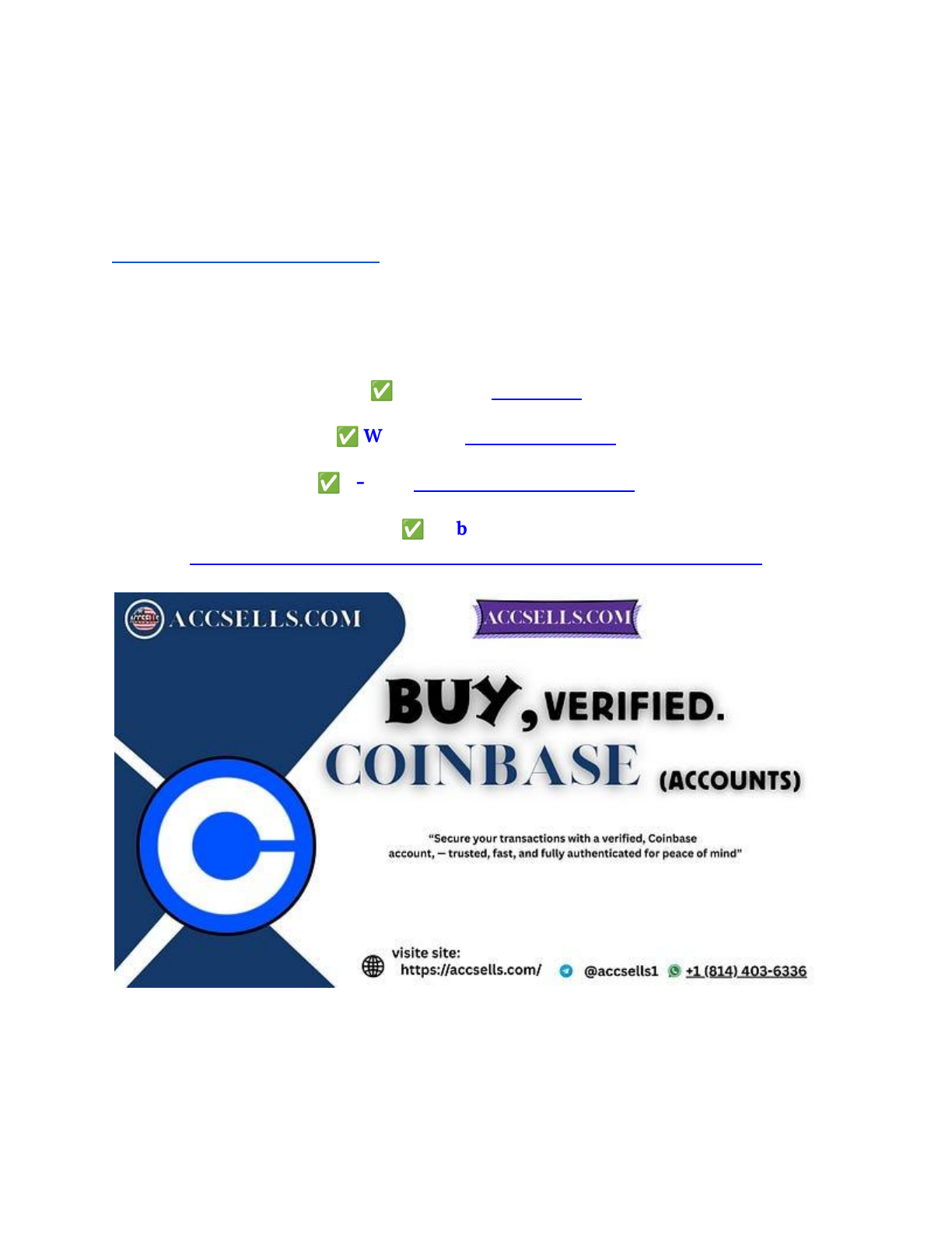 Top 10 Platforms to Buy Fully Verified Coinbase Accounts Online Buying a verified Coinbase account can be a smart move. It allows you to start trading instantly. If You want to more information just contact now 24 Hours Reply/ Contact : – ✅ Telegram: @accsells1 ✅ WhatsApp: +1 (814) 403–6336 ✅ E-mail: infoaccsells0@gmail.com ✅ Website Visit: https://accsells.com/product/buy-verified-coinbase-accounts/ Coinbase is a leading cryptocurrency exchange platform. With a verified account, you can buy, sell, and manage digital currencies securely. But the verification process can be time-consuming and complex. This is where Smmitusa comes in. They offer verifiedCoinbase accounts ready for use. https://accsells.com/product/buy-verified-coinbase-accounts/ https://t.me/accsells1 https://api.whatsapp.com/send?phone=18144036336 mailto:infoaccsells0@gmail.com https://accsells.com/product/buy-verified-coinbase-accounts/ https://accsells.com/product/buy-verified-coinbase-accounts/ No need to wait or deal with the hassle of verification. You get a fully functional account quickly. This can save you time and effort. Plus, it ensures you start your crypto journey smoothly. Ready to dive into the world of cryptocurrency? Let’s explore how a verified Coinbase account from Smmitusa can help. Introduction ToCoinbase Accounts Are you new to cryptocurrency? You might have heard about Coinbase. This platform is popular for buying, selling, and managing digital currencies. But understanding its importance is key. Let’s dive into the world of Coinbase accounts. What Is Coinbase? Coinbase is a digital currency exchange. It allows users to trade cryptocurrencies. These include Bitcoin, Ethereum, and Litecoin. Coinbase is user-friendly and secure. It supports various payment methods. This makes it accessible to many people worldwide. Importance Of Verified Accounts Having a verified Coinbase account is crucial. Verified accounts provide added security. They also unlock higher transaction limits. This means you can trade more without restrictions. Verification also helps in account recovery. If you lose access, verified details can help you regain it. Buying a verified Coinbase account from Smmitusa can save time. It ensures you start trading quickly. No need to go through lengthy verification processes. With a verified account, you can dive straight into the crypto market. Why Choose Smmitusa? Choosing the right platform to buy verified Coinbase accounts is crucial. Smmitusa stands out for many reasons. Let’s explore what makes Smmitusa the best choice for purchasing verified Coinbase accounts. Trusted Platform Smmitusa is a trusted platform in the industry. It has built a strong reputation over the years. Many users trust Smmitusa for its reliability and transparency. Each account is verified and secure. You can be confident in your purchase. Benefits Of A Verified Account Buying a verified Coinbase account from Smmitusa offers many benefits. These benefits enhance your experience and ensure safety. A verified account provides features that an unverified account lacks. Let’s explore some key benefits below. https://accsells.com/product/buy-verified-coinbase-accounts/ Enhanced Security A verified Coinbase account comes with enhanced security features. These features help protect your funds and data. You get access to two-factor authentication (2FA). This adds an extra layer of security to your account. Additionally, Coinbase uses advanced encryption methods. These methods safeguard your personal information. With a verified account, you can trade with peace of mind. How To Purchase From Smmitusa Are you thinking of buying a verified Coinbase account from Smmitusa? This guide will help you through the process. Follow the steps below to make your purchase easy and secure. Step-by-step Guide 1. Visit the Smmitusa Website: Go to the official Smmitusa website to start your purchase. 2. Sign Up or Log In: Create a new account or log in if you already have one. 3. Browse Products: Navigate to the section for verified Coinbase accounts. 4. Select Your Account: Choose the verified Coinbase account that fits your needs. 5. Add to Cart: Click the ‘Add to Cart’ button to add the account to your shopping cart. 6. Review Your Cart: Go to your cart and review the items you have added. 7. Proceed to Checkout: Click on ‘Checkout’ to proceed to the payment section. 8. Enter Payment Details: Fill in your payment information and confirm your purchase. 9. Receive Confirmation: After completing the payment, you will receive a confirmation email. Payment Methods Smmitusa offers several secure payment methods to make your purchase smooth. ● Credit/Debit Cards: Use your Visa, MasterCard, or American Express cards. ● PayPal: Make payments through your PayPal account for added security. ● Cryptocurrency: Pay using Bitcoin, Ethereum, or other supported cryptocurrencies. ● Bank Transfer: Use direct bank transfer for large transactions. Choose the payment method that best suits you and complete your purchase without any hassle. Verification Process Buying a verified Coinbase account from Smmitusa ensures a smooth experience. This section will walk you through the verification process. Understanding this process can make your purchase seamless and secure. Let’s dive into the key aspects. https://accsells.com/product/buy-verified-coinbase-accounts/ Required Documents To verify a Coinbase account, certain documents are needed. These documents ensure the account’s authenticity. ● Government-issued ID: Passport, driver’s license, or national ID card. ● Proof of address: Utility bill, bank statement, or rental agreement. ● Selfie with ID: A clear photo holding the ID. Security Measures Investing in a verified Coinbase account from Smmitusa ensures top-notch security. Let’s explore the essential security measures in place. Account Protection Your account is well-guarded. Two-factor authentication adds an ex