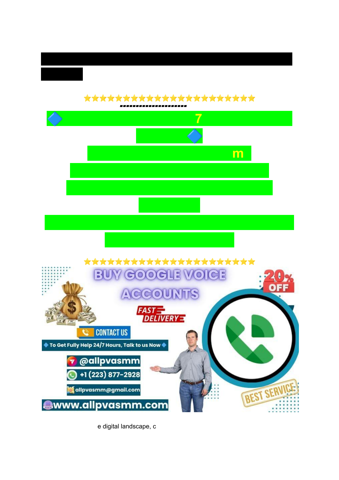 21 Best Sites To B,uy Google Voice Accounts | Articles ⭐⭐⭐⭐⭐⭐⭐⭐⭐⭐⭐⭐⭐⭐⭐⭐⭐⭐⭐⭐⭐⭐ ▰▰▰▰▰▰▰▰▰▰▰▰▰▰▰▰▰▰▰▰▰▰▰▰▰▰▰▰▰▰▰ 🔷 To Get Fully Help 24/7 Hours, Talk to us Now 🔷 1⃣ Telegram: @allpvasmm1⃣ 2⃣ WhatsApp: +1 (223) 877-29282⃣ 3⃣ Email: allpvasmm@gmail.com3⃣ 4⃣Website: https://allpvasmm.com/product/buy-goo gle-voice-accounts/4⃣ ▰▰▰▰▰▰▰▰▰▰▰▰▰▰▰▰▰▰▰▰▰▰▰▰▰▰▰▰▰▰▰ ⭐⭐⭐⭐⭐⭐⭐⭐⭐⭐⭐⭐⭐⭐⭐⭐⭐⭐⭐⭐⭐⭐ In today’s competitive digital landscape, communication is the key to customer satisfaction and business growth. That’s where Google Voice comes in—a powerful VoIP (Voice over Internet Protocol) service that allows businesses to manage calls, voicemails, and messages from anywhere using just one number. If you’re looking to scale quickly and communicate more efficiently, buying Google Voice accounts could be a game-changing move for your business. Buy Google Voice Accounts. Buy Google Voice Accounts Professional Communication Google Voice gives your team a professional U.S. number, helping you establish trust with customers. You can separate personal and business calls, set up custom voicemail greetings, and forward calls to multiple devices. Buy Google Voice Accounts. Cost-Effective Solution Unlike traditional phone systems, Google Voice is extremely affordable. Buying multiple accounts in bulk allows you to scale your communication infrastructure without spending a fortune. Remote Work Friendly In 2025, remote work is more common than ever. Google Voice lets your employees make and receive calls from their smartphones, laptops, or desktops—no office phone required. SMS & Marketing Potential Use Google Voice numbers for SMS marketing, client follow-ups, or automated reminders. It’s a great way to reach leads without using your personal number. Simple Integration Google Voice integrates easily with other Google Workspace tools, making it seamless to manage communications alongside your calendar, email, and documents. Final Thoughts If you want a simple, flexible, and affordable communication tool, buy Google Voice accounts and give your business the edge it needs to grow faster and smarter. Top Benefits When You Buy Google Voice Accounts in Bulk ⭐⭐⭐⭐⭐⭐⭐⭐⭐⭐⭐⭐⭐⭐⭐⭐⭐⭐⭐⭐⭐⭐ ▰▰▰▰▰▰▰▰▰▰▰▰▰▰▰▰▰▰▰▰▰▰▰▰▰▰▰▰▰▰▰ 🔷 To Get Fully Help 24/7 Hours, Talk to us Now 🔷 1⃣ Telegram: @allpvasmm 2⃣ WhatsApp: +1 (223) 877-2928 3⃣ Email: allpvasmm@gmail.com 4⃣Website: https://allpvasmm.com/product/buy-goo gle-voice-accounts/ ▰▰▰▰▰▰▰▰▰▰▰▰▰▰▰▰▰▰▰▰▰▰▰▰▰▰▰▰▰▰▰ ⭐⭐⭐⭐⭐⭐⭐⭐⭐⭐⭐⭐⭐⭐⭐⭐⭐⭐⭐⭐⭐⭐ If you’re managing a growing team, running a marketing agency, or operating a call center, communication is the backbone of your success. One of the smartest investments you can make is to buy Google Voice accounts in bulk. Not only does it save you time and money, but it also unlocks powerful features that can scale your operations efficiently. Buy Google Voice Accounts. ✅ 1. Cost Efficiency Buying Google Voice accounts in bulk significantly reduces the cost per account. Instead of paying retail prices individually, bulk purchases offer discounted rates—ideal for startups, resellers, and agencies. ✅ 2. Streamlined Team Communication With bulk Google Voice accounts, each team member can have a dedicated number. This allows better tracking of calls, accountability, and streamlined internal communication. ✅ 3. Marketing Flexibility Use multiple Google Voice numbers to run different marketing campaigns, track leads by number, or segment customer support by region. It gives your business a more localized and professional appearance. ✅ 4. Reselling Opportunities Many digital entrepreneurs buy Google Voice accounts in bulk to resell them at a profit. As demand continues to grow in 2025, this remains a viable online income stream. Buy Google Voice Accounts. ✅ 5. Remote-Work Ready Google Voice is cloud-based, which means your team can make and receive calls from anywhere using any device—perfect for remote or hybrid work models. How to Safely Buy Google Voice Accounts Online Buying Google Voice accounts online can be a great way to save time and scale your communication systems, especially for businesses, marketers, and resellers. However, with rising demand, the market is also filled with fake sellers and low-quality providers. To ensure you get real, secure, and working accounts, it’s essential to follow a safe and smart buying process. 1. Choose a Reputable Seller Only buy from trusted websites or sellers with verifiable reviews and a clear online presence. Look for platforms that offer guarantees, support, and replacement policies in case of non-working accounts. 2. Verify Account Quality Ask the seller whether the Google Voice accounts are: Verified with U.S. phone numbers Fully active and ready to use Created with unique IPs and information Free from previous usage history 3. Use Secure Payment Methods Always use secure and trackable payment options like PayPal, Stripe, or credit/debit cards. Avoid using crypto or direct transfers unless you trust the seller 100%. Buy Google Voice Accounts. 4. Change Login Details Immediately After purchase, immediately change all credentials—email, password, recovery info, and enable two-factor authentication (2FA) to protect your account. 5. Avoid Too-Cheap Offers If the cost is as well great to be genuine, it likely is. Very cheap accounts are often low-quality, reused, or at risk of suspension. Things to Know Before You Buy Google Voice Accounts Google Voice is a powerful VoIP service that offers free calling, texting, and voicemail features, especially