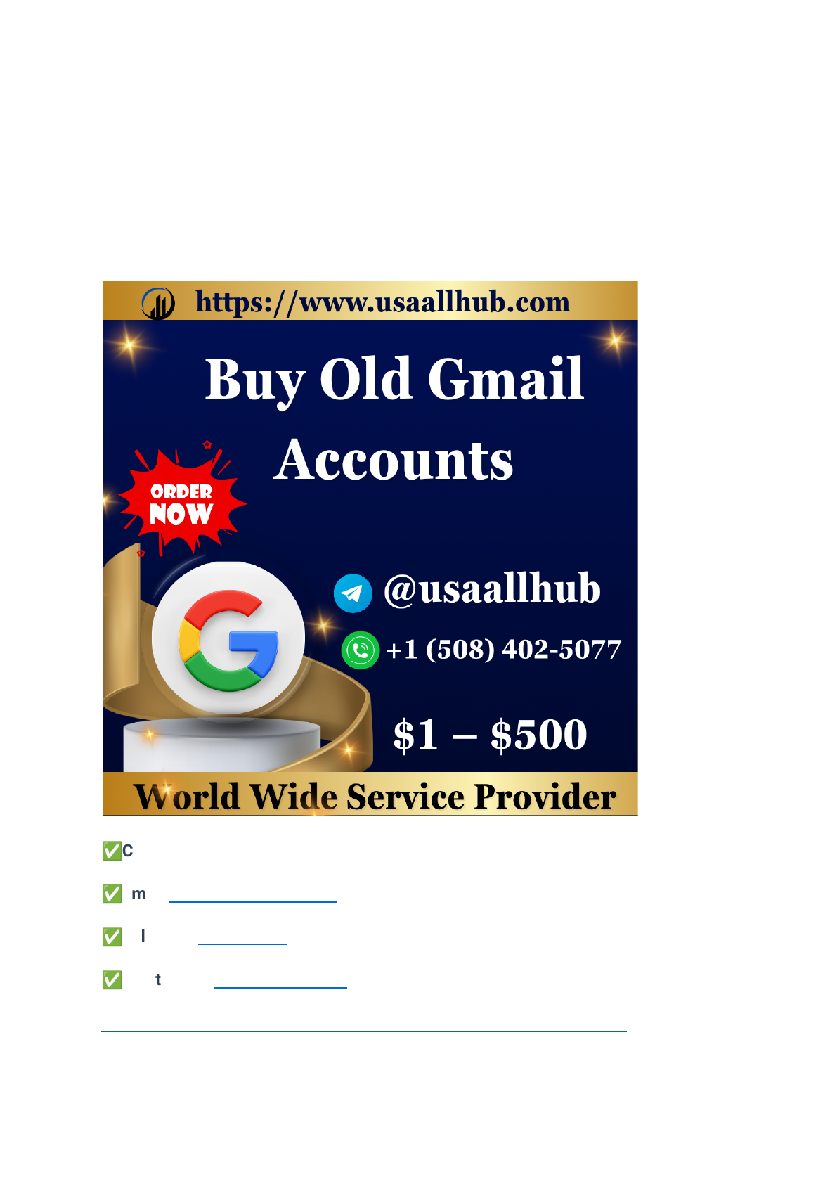 Email Marketing 2025 Guide to Buy Old Gmail Accounts in 2025 Discover the 2025 guide to buying old Gmail accounts for effective email marketing. Learn safe practices, trusted platforms, and proven benefits for better deliverability and growth. usaallhub provides valuable insights that help marketers build credibility, ensuring long-term success with authentic Gmail accounts and ethical campaign strategies. ✅Contact For More Information ✅Email:usaallhub@gmail.com ✅Telegram:@usaallhub ✅WhatsApp:+1 (508) 402-5077 https://www.usaallhub.com/product/buy-old-gmail-accounts/ https://www.usaallhub.com/product/buy-old-gmail-accounts/usaallhub@gmail.com https://t.me/usaallhub https://wa.me/15084025077 https://www.usaallhub.com/product/buy-old-gmail-accounts/ Introduction to Email Marketing 2025 Email marketing in 2025 continues to be one of the most powerful digital tools for reaching potential audiences effectively. With advanced automation, AI-driven segmentation, and improved deliverability systems, businesses can connect with users in more personalized ways that build trust and increase conversion rates. The practice of buying old Gmail accounts helps enhance campaign reach and stability. These accounts often hold credibility within email platforms, ensuring smoother delivery and less spam filtration. Understanding this process is essential for digital marketers seeking consistent growth through modern email systems. 2. Why Buying Old Gmail Accounts Matters for Email Marketing In 2025, successful email marketing relies heavily on account reputation. Older Gmail accounts often carry established histories, making them more reliable for sending large-scale campaigns without restrictions. This stability improves message visibility and helps maintain professional communication. By focusing on strategic buying, marketers ensure that their outreach is seamless and trusted. It allows email platforms to recognize legitimate engagement, boosting both sender reputation and customer confidence in digital promotions. 3. Key Benefits of Old Gmail Accounts for Campaign Success Old Gmail accounts bring multiple advantages to marketing campaigns. Their existing credibility increases inbox delivery, reduces bounce rates, and enhances brand authenticity. Campaigns sent from established accounts are less likely to face verification delays or platform limitations. Through buying authentic accounts, marketers can operate with higher efficiency and consistency. This approach not only saves time but also contributes to better analytics, as results remain stable and measurable across different marketing stages. 4. How to Buy Old Gmail Accounts Safely in 2025 Safety in buying digital assets like Gmail accounts starts with choosing verified vendors. Reputed platforms ensure accounts are genuine, well-maintained, and compatible with business communication tools. Each purchase should include details like age verification and recovery assurance. The process must prioritize ethical acquisition. When done properly, it supports long-term marketing goals and helps maintain data integrity. Reliable transactions secure consistent campaign flow, essential for growing enterprises in 2025. 5. Top Features to Check Before Buying Old Gmail Accounts Before acquiring old Gmail accounts, marketers should review essential factors such as account age, recovery options, and activity record. A well-maintained account guarantees higher trust from email systems and improved engagement rates. Checking for verified access and clean usage history ensures that marketing strategies remain smooth. A good account base directly impacts message success, audience targeting, and overall campaign results. 6. Best Practices for Using Old Gmail Accounts in Email Marketing Once old Gmail accounts are acquired, marketers should follow ethical emailing practices. Regularly updating passwords, enabling two-factor authentication, and monitoring activity logs strengthen overall account health. Consistency in sending patterns also helps maintain credibility. Scheduling campaigns strategically prevents bulk-sending issues and ensures that all marketing messages reach their intended audience effectively. 7. Trusted Platforms to Buy Old Gmail Accounts in 2025 Finding reliable sources is vital for digital growth. In 2025, trusted vendors offer verified Gmail accounts tailored to different marketing needs. These providers ensure account safety, privacy, and long-term usability for professional email campaigns. Platforms like usaallhub focus on delivering quality and transparency. Their services help digital marketers build a secure foundation for outreach, empowering businesses to achieve strong engagement with minimal technical barriers. 8. How Old Gmail Accounts Improve Email Deliverability Deliverability is the backbone of any email campaign. Older Gmail accounts possess established histories that email servers recognize as credible, reducing spam risks and enhancing open rates. This strong reputation allows messages to reach inboxes more effectively. By integrating these accounts into marketing systems, campaigns enjoy better visibility, customer engagement, and overall brand perception. 9. Buying vs. Creating New Gmail Accounts – Which is Better in 2025? Creating new Gmail accounts is useful for small projects, but older ones offer faster scalability. Their verified records and established activity reduce limitations and speed up outreach strategies. In 2025, marketers prefer buying aged accounts for their instant readiness and stability. This approach supports efficient campaign management and stronger return on investment without requiring extensive warm-up time. 10. Legal and Ethical Aspects of Buying Old Gmail Accounts Ethical email marketing begins with transparency. While acquiring old Gmail accounts, ensuring compliance with platform policies is vital. Verified vendors guarantee lawful ownership transfers without breaching digital terms. Responsib