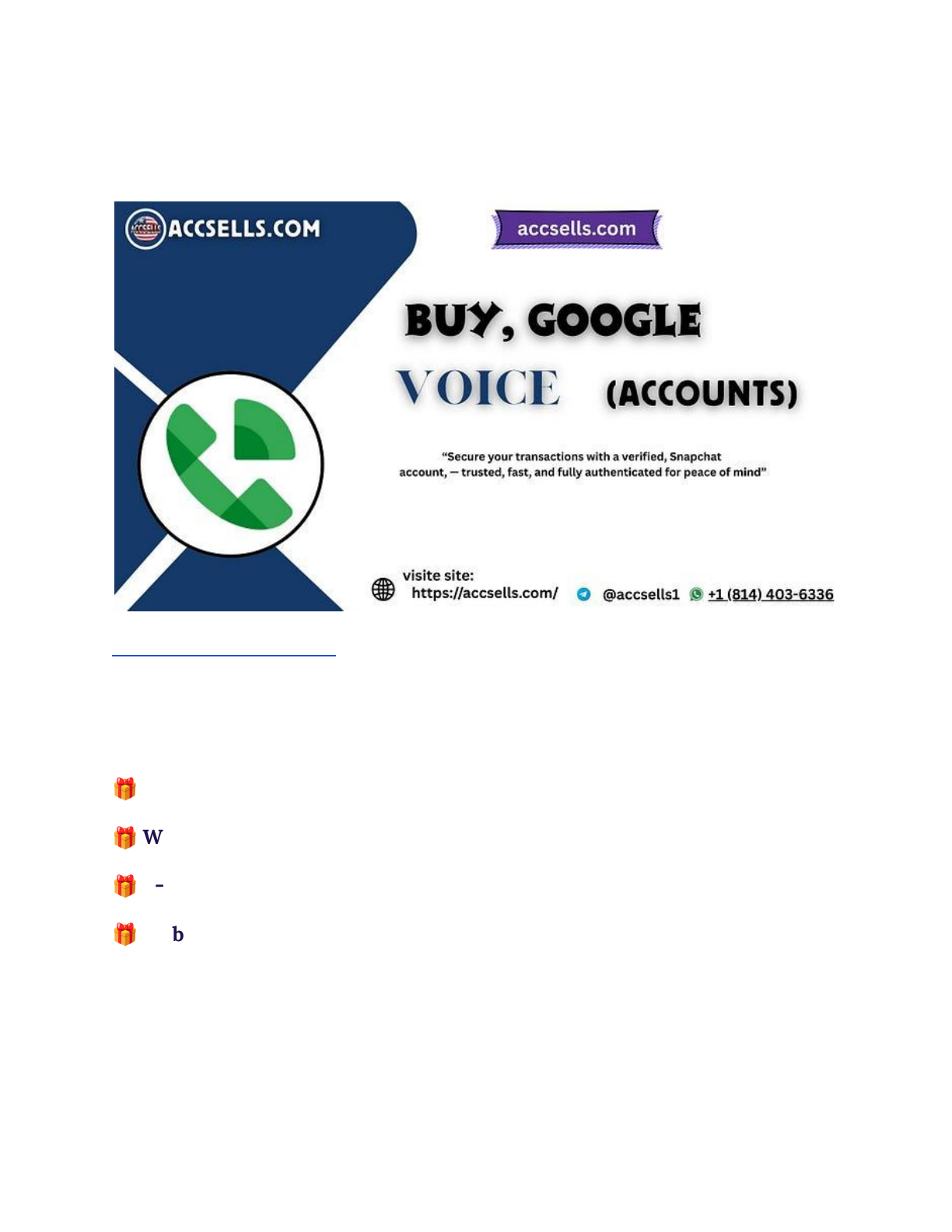 Buy Bulk Google Voice Accounts Buy Google Voice Numbers— Trusted USA-Based Number from Accsells.com If You want to more information just contact now 24 Hours Reply/ Contact : – 🎁 Telegram: @accsells1 🎁 WhatsApp: +1 (814) 403–6336 🎁 E-mail: infoaccsells0@gmail.com 🎁 Web Visit:▸https://accsells.com/product/buy-google-voice-accounts/ If you’ve ever tried to get a working Google Voice number from outside the U.S., you already know how tricky it can be. Whether you’re an entrepreneur, freelancer, or simply someone who values privacy, a Google Voice number can be a powerful toolTrust me, having a U.S. number makes life a lot easier when you’re dealing with global platforms.We’ve been doing this for over a decade — building real, working GV numbers for people who actually need them. We’ve helped thousands get verified, make calls, or just avoid showing their personal number. https://accsells.com/product/buy-google-voice-accounts/ https://t.me/accsells1 https://api.whatsapp.com/send?phone=18144036336 mailto:infoaccsells0@gmail.com https://accsells.com/product/buy-google-voice-accounts/ Related Offer: Buy Aged Gmail Accounts — Verified & Secure What’s Google Voice? If you’ve ever tried calling or texting from a U.S. number while living outside the U.S., you already know how difficult (and honestly, frustrating) it can be. Google Voice solves that — Local SIMs don’t work, most VoIP apps fail verification, and even paid virtual numbers often stop working when you need them most. That’s where Google Voice comes in. Think of Google Voice like a virtual U.S. SIM that works over Wi-Fi — you can make calls, get SMS, and even verify online accounts. Q. Can I use Google Voice outside the U.S.? Q. Will Google Voice work with WhatsApp or Telegram? Q. How long does a Google Voice number stay active? Q. Can I verify PayPal or other platforms using this number? Q. How do I buy a Google Voice number from Accsells.com? Q. What will I receive after placing an order? Q. Can I make and receive calls with Google Voice? Q. Can I buy multiple Google Voice accounts at once? How real people actually use Google Voice numbers Over the years, we’ve seen customers use Google Voice in many ways. Some of the most common use cases include: 1. Need to verify an account? We’ve personally used GV numbers for PayPal, WhatsApp — even Amazon and Fiverr. Some of our customers use them for Signal and eBay too. ● WhatsApp and Telegram verification ● PayPal and Amazon account creation ● Social media platforms (Facebook, Twitter, Instagram) ● Freelancing platforms (Upwork, Fiverr) ● Bank account linking (in the U.S.) ● Business calls and SMS from a U.S. number ● Receiving OTP codes for various services Google Voice is especially popular among freelancers, digital marketers, e-commerce store owners, and crypto traders. Note: Some platforms like WhatsApp and Telegram may occasionally block Google Voice numbers. In such cases, multiple attempts or alternative methods may be necessary. 24 Hours Reply/ Contact : – 🎁 Telegram: @accsells1 🎁 WhatsApp: +1 (814) 403–6336 🎁 E-mail: infoaccsells0@gmail.com 2. International Calling Google Voice lets you make free calls to U.S. numbers and low-cost calls to other countries. This is a huge benefit for those with family, clients, or businesses in the United States. 3. Freelancing & Remote Work Freelancers working on Upwork, Fiverr, or remote teams often use U.S. numbers to appear local and professional. A U.S. number helps build trust with American clients. 4. Business Use One of our clients even runs a small clothing store and uses a separate GV number just to handle customer returns and WhatsApp inquiries. 5. Privacy and Security https://t.me/accsells1 https://api.whatsapp.com/send?phone=18144036336 https://accsells.com/product/buy-google-voice-accounts/ Many users want a number they can share online or on public listings without compromising their personal phone number. Google Voice works perfectly for that. Learn more: Why Digital Privacy Matters in 2025 Here’s how we make and send you your Google Voice number At pvabay.com, We’ve made enough GV accounts to know what works and what breaks them. That’s why we don’t rush — we test each one before sending it to you. 1. Authentic U.S. Phone Numbers We use legitimate U.S. SIM-based numbers to create every Google Voice account — no virtual junk. 2. New Google Account Creation Each Google Voice number is linked to a fresh Gmail account, which you receive along with login details. 3. Voice Setup & Testing We activate the Voice number, test SMS, calling, and voicemail to ensure it’s fully functional. 4. Delivery with Documentation You’ll receive full login details, including Gmail ID, password, and setup guide. What exactly do you get when you order? When you purchase a Google Voice number from pvabay.com, you get: ● A working U.S.-based Google Voice number ● Gmail login details (connected to the Voice number) ● Google Voice setup with voicemail enabled ● Basic usage guide and security tips ● Support via WhatsApp, Telegram, or email You also get lifetime access to the number, as long as you follow basic usage and login instructions. How much does it cost — and which plan is right for you? Whether you’re just getting one number for yourself, or buying in bulk for a team — we’ve got simple options. Choose the one that suits your needs below: PackageDescriptionLink1 Voice NumberFor personal useBuy Now5 Voice NumbersFor small teams or resellersBuy Now10+ NumbersCustom pricing & bulk supportContact Us Special Offer: Get 10% off on your first order with coupon code GV10OFF Account Format: If You want to more information just contact now 24 Hours Reply/ Contact : – 🎁 Telegram: @accsells1 🎁 WhatsApp: +1 (814) 403–6336 🎁 E-mail: infoaccsells0@gmail.com Why I keep coming back to pvabay.com There are many sellers online, but here’s why we’re