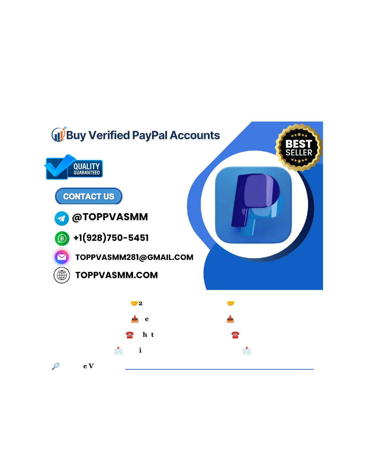 Top 10 Examples for Buying a Verified Paypal Account Buy Verified Paypal Account You’ll discover the top 10 examples of verified PayPal accounts that can meet your needs quickly and securely. By the end, you’ll know exactly which options work best for you and how to choose with confidence. Keep reading to unlock the secrets to safer and smarter PayPal purchases. 🤝24/7 Hours Reply/Contact🤝 📥 Telegram : @Toppvasmm📥 ☎ WhatsApp :+1(928)750-5451☎ 📩 Email : toppvasmm281@gmail.com📩 🔎Website Visit Now :https://toppvasmm.com/product/buy-verified-paypal-accounts/ Why Choose A Verified Paypal Account Choosing a verified PayPal account is important for anyone who wants safe and smooth transactions. Verification shows that the account holder has confirmed their identity. This builds https://toppvasmm.com/product/buy-verified-paypal-accounts/ trust between buyers and sellers. Using a verified account reduces many common problems online. Many people prefer verified accounts because they offer extra protection. This helps protect your money and personal details. Verified accounts also allow higher transaction limits and access to more PayPal features. These benefits make buying and selling easier and safer. Benefits Of Verification Verification confirms your identity with PayPal. This helps prevent fraud and unauthorized use. PayPal offers better buyer and seller protection for verified accounts. You can send and receive larger amounts of money. Verified accounts often face fewer restrictions or holds. These accounts gain more credibility with business partners. Access to full PayPal services becomes available only after verification. Risks Of Unverified Accounts Unverified accounts have limited access to PayPal features. They face lower transaction limits and higher risk of freezes. These accounts are more likely to be flagged for suspicious activity. Account holders may lose money if fraud occurs. Limited protection means disputes can be harder to resolve. Selling or buying with unverified accounts may reduce trust from others. Risk of losing account access increases without verification. Where To Find Verified Paypal Accounts Finding a verified PayPal account can save time and effort. Many places offer these accounts, each with different benefits and risks. Knowing where to find them helps you choose the best option. Here are some common sources to consider. Online Marketplaces Online marketplaces list verified PayPal accounts for sale. These sites show many options with different prices. Buyers can compare features and pick what fits their needs. Check seller ratings and reviews before buying. This helps avoid scams and low-quality accounts. Specialized Vendors Specialized vendors focus on selling verified PayPal accounts only. They often provide better support and secure transactions. These vendors verify accounts before selling to ensure quality. Prices may be higher, but the risk is lower. Look for vendors with positive feedback and clear policies. Forums And Communities https://toppvasmm.com/product/buy-verified-paypal-accounts/ Forums and online communities connect buyers and sellers directly. Members share advice and offer verified accounts for sale. This option may offer more flexible deals and personal communication. Trust is key here; check member history and feedback carefully. Active forums can be a good place to find reliable accounts. Top 10 Verified Paypal Account Examples Verified PayPal accounts offer many benefits for online transactions. They provide security and trust for buyers and sellers. Choosing the right type of account depends on your needs. Here are the top 10 verified PayPal account examples. Each serves a specific purpose and suits different users. Example 1: Personal Verified Account This account is for individual users. It allows sending and receiving money easily. Verification increases account limits and trust. 🤝24/7 Hours Reply/Contact🤝 📥 Telegram : @Toppvasmm📥 ☎ WhatsApp :+1(928)750-5451☎ 📩 Email : toppvasmm281@gmail.com📩 🔎Website Visit Now :https://toppvasmm.com/product/buy-verified-paypal-accounts/ Example 2: Business Verified Account Designed for businesses and sellers. It supports multiple users and payment options. Verification helps with higher transaction limits. Example 3: High-limit Account Allows large transactions without restrictions. Ideal for frequent or big payments. Verification confirms the user's identity and reduces risk. Example 4: Multicurrency Account Supports transactions in many currencies. Useful for international buyers or sellers. Verification ensures smooth currency exchanges. Example 5: Account With Linked Bank https://toppvasmm.com/product/buy-verified-paypal-accounts/ https://toppvasmm.com/product/buy-verified-paypal-accounts/ Connected to a bank account for easy transfers. Verification confirms ownership of the bank account. Enables withdrawals and deposits quickly. Example 6: Account With Linked Credit Card Linked with a credit card for faster payments. Verification protects against fraud and increases spending limits. Example 7: Account With Established History Has a long record of successful transactions. Shows reliability and trustworthiness. Verification adds extra security. Example 8: Account With Positive Feedback Receives good reviews from other users. Reflects excellent service or buying habits. Verification supports account credibility. Example 9: Account With Low Risk Has no history of disputes or issues. Ideal for safe trading and payments. Verification confirms genuine identity. Example 10: Account Ready For International Use Configured for global transactions and multiple currencies. Works well for worldwide business. Verification ensures compliance with international rules. Factors To Consider Before Buying Buying a verified PayPal account can save time and effort. Yet, it needs careful thought. Many risks exist if you ignore key points. Understanding these factors 