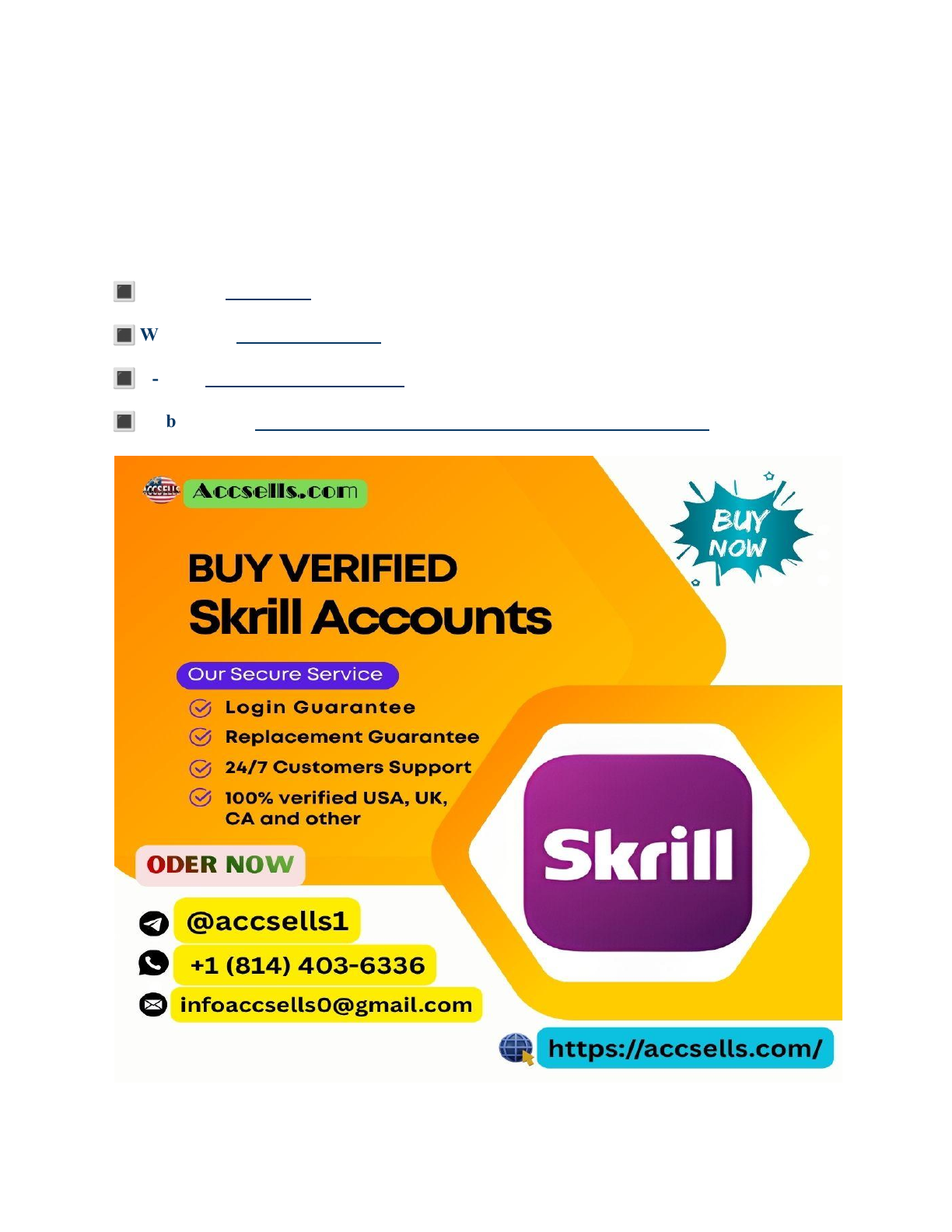 Buy Verified Skrill Accounts in Quickly & Securely If You want to more information just contact now 24 Hours Reply/ Contact : – 🔳 Telegram: @accsells1 🔳 WhatsApp: +1 (814) 403–6336 🔳 E-mail: infoaccsells0@gmail.com 🔳 Website Visit: https://accsells.com/product/buy-verified-skrill-accounts/ https://t.me/accsells1 https://api.whatsapp.com/send?phone=18144036336 mailto:infoaccsells0@gmail.com https://accsells.com/product/buy-verified-skrill-accounts/ A verified Skrill account is a fully authenticated digital wallet that has undergone Skrill’s Know Your Customer (KYC) verification process. To verify an account, users must provide valid identification documents (such as a passport or driver’s license) and proof of address (like a utility bill or bank statement). Once verified, the account gains enhanced features, including higher transaction limits, the ability to send and receive larger amounts of money, and access to additional services like cryptocurrency trading or Skrill’s prepaid card. Verified accounts also offer increased security and trust, making them ideal for freelancers, online businesses, and individuals who frequently engage in global transactions. Purchasing a pre-verified Skrill account from platforms like accsells.com saves time and ensures immediate access to these benefits. Why Should You Buy a Verified Skrill Account? Your instant access to a secure payment solution starts when you buy a verified Skrill account with verification to avoid lengthy verification requirements. Verified Skrill accounts provide raised transaction restrictions to facilitate effortless worldwide payments as well as money transfers and e-commerce transactions. The security level improves through verification to protect users from account restrictions and protect their money from theft attempts. Verified Skrill accounts provide you with enhanced functionality which incorporates both cryptocurrency trading capacity and access to the Skrill prepaid card in addition to exclusive promotional offers. The verification of your Skrill account creates a perfect system for freelancers and online sellers and frequent travelers because it delivers global accessibility together with reliability and convenience. The purchase of products from accsells allows you to have a straightforward purchase experience which entails no complications. What are the benefits of having a verified Skrill account? Users and businesses prefer Skrill with verification as it provides multiple advantages for their operations. Here are the key advantages: Higher Transaction Limits: Verified Skrill accounts enable users to handle bigger deposit amounts and withdrawal transactions and transfer larger sums which suits users with high-volume operations. Good Security: Account verification provides organizations with improved security measures that both fight against fraud attempts and build compliance with governing regulations. Global Accessibility: Verified Skrill users can transfer money through global currencies which suits their needs for international currency transactions. Faster Processing: The transaction approval process and delays become shorter when an account obtain verification status. Access to Premium Features: You gain exclusive access to Skrill’s premium features and can trade cryptocurrencies and access Skrill’s prepaid card together with special promotions. Increased Trust: Verified accounts establish higher reliability to trusted clients in various business operations including freelancing and online selling activities. Are These Verified Skrill Accounts Legal to Use? Verified Skrill accounts that are purchased from us alongside being verified can be used lawfully when used properly to satisfy Skrill terms of service and regional laws. Skrill verifies these accounts through their KYC (Know Your Customer) framework which makes them compliant in all regulatory terms. Verified Skrill accounts prove legal to use with a proper purchase from trusted sellers when used correctly for personal transactions or business payments. False use of Skrill accounts that includes illegal or policy-breaking actions results in account closure as well as possible legal repercussions. Users must check seller credentials while using Skrill accounts according to established guidelines for legal operations and safety measures. Can I Use a Verified Skrill Account for Gambling or Forex Trading? The use of verified Skrill accounts is authorized for both gambling and forex trading needs. Users can make transactions at online casinos and betting sites and forex brokers which accept Skrill because the platform enables instant deposits and withdrawals. Account holders who obtain verification benefits from increased transaction capacities together with reinforced security measures and multi-currency functionality. This makes them perfect for these activities. Use platforms that are licensed yet ensure these meet all the local regulatory requirements. Skrill users should handle their accounts with care to prevent any associated problems. Users who obtain their verified account from the trusted provider accsells will find a both smooth and secure experience. What should I do after purchasing a verified Skrill account to ensure security? Follow this procedure to protect your purchased verified Skrill account: ● Change Login Credentials: Right after purchase update the account password and establish two-factor authentication (2FA) as an extra layer of security. ● Verify Account Details: Make sure all the account information including your person details and financial data remains correct and recent. ● Monitor Transactions: Regularly check your account transactions because this helps you detect unauthorized as well as strange transactions. ● Secure Your Email: Protect your verified Skrill account by making your associated email profile secure through both robust passwords and enabling two-factor authentication. ● Avoid Shar