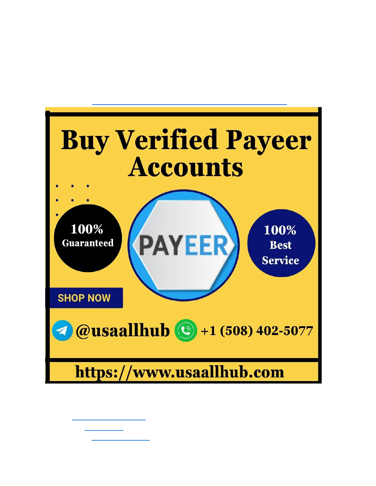 Buying Verified Payeer Accounts: A Comprehensive Guide Explore how buying verified Payeer accounts can help unlock higher withdrawal limits and advanced features. Read this comprehensive guide on the process, benefits, and potential risks, with tips for safe transactions. (For more, visit usaallhub.com).https://www.usaallhub.com/product/buy-verified-payeer-accounts/ If you are feeling any problems and know more about us then contact us via Email, WhatsApp, or Telegram. ✓Email:usaallhub@gmail.com ✓Telegram:@usaallhub ✓WhatsApp:+1 (508) 402-5077 https://www.usaallhub.com/product/buy-verified-payeer-accounts/ https://www.usaallhub.com/product/buy-verified-cash-app-accounts/usaallhub@gmail.com https://t.me/usaallhub https://wa.me/15084025077 In today’s digital age, online financial transactions are an essential part of everyday life. Whether it's for personal use, e-commerce, or business purposes, finding a reliable and secure payment platform is crucial. Payeer has emerged as one of the leading online payment systems, offering a variety of features that cater to different user needs. While Payeer accounts can be set up easily, some individuals and businesses opt to purchase verified Payeer accounts to unlock additional benefits and ensure smoother transactions. But why is this practice becoming increasingly popular, and what are the advantages and risks involved? In this article, we’ll take an in-depth look at what Buying Verified Payeer Accounts means, how the process works, why people buy them, and the precautions one should take before making a purchase. What is Payeer? Payeer is an online payment system that allows users to send, receive, and exchange funds in various currencies, including cryptocurrency, fiat money, and digital assets. It provides services like instant money transfers, a multi-currency wallet, and a range of other financial tools aimed at simplifying online transactions. Payeer accounts are popular because they enable cross-border transactions, making them ideal for freelancers, online businesses, and people who need to send or receive money internationally. With a Payeer account, users can: ● Send money globally: Whether you need to send funds to someone across the globe or make payments to an international vendor, Payeer makes it simple. ● Exchange currencies: Payeer supports not only traditional fiat currencies but also digital currencies like Bitcoin, Litecoin, and others. This makes it a preferred choice for those involved in cryptocurrency trading or who want the flexibility to hold different currencies in one account. ● Access to a prepaid card: Payeer offers physical and virtual cards that can be used like a debit card for online or offline purchases, making it easier to spend your funds. While registering for a Payeer account is straightforward, certain features, such as higher withdrawal limits or advanced account functionalities, are unlocked only once an account is verified. What Does it Mean to Have a Verified Payeer Account? Verification in the context of Payeer accounts refers to the process of confirming the user's identity and validating the account for increased access. Verified accounts are typically more secure and come with several benefits, such as: 1. Increased Withdrawal Limits: Unverified Payeer accounts usually come with lower withdrawal limits. After verification, users can access higher withdrawal limits, which is especially useful for businesses or individuals who deal with large sums of money. 2. Enhanced Security: Verified accounts are generally more secure, as they undergo rigorous checks to ensure that the account is being used by the rightful owner. 3. Access to More Features: Verification may unlock additional Payeer features, such as faster transactions, access to Payeer’s API for integrating payment systems, and the ability to make payments in multiple currencies. The verification process usually involves submitting certain documents, such as a government-issued ID, proof of address, and sometimes a selfie or other proof of identity. However, some users find the verification process to be time-consuming or complex, which is why others may choose to purchase verified Payeer accounts instead of going through the hassle themselves. Why Do People Buy Verified Payeer Accounts? There are several reasons why individuals or businesses might choose to purchase a verified Payeer account rather than going through the lengthy verification process themselves. Some of the most common reasons include: 1. Time-Saving For those who are in urgent need of a verified account to complete a transaction or access specific features, the time it takes to verify a Payeer account may be a significant drawback. Verification can take anywhere from a few days to a couple of weeks, depending on the completeness of the submitted documents and the level of scrutiny involved. Buying a verified account allows users to skip this wait time and immediately gain access to higher withdrawal limits and additional features. 2. Avoiding Verification Hassles The verification process for Payeer can be detailed and sometimes difficult to navigate, especially for users in countries with strict financial regulations. Many users find the process to be confusing, particularly when it comes to submitting valid identification or providing proof of address. For those unfamiliar with the process or who are not comfortable submitting personal documents online, purchasing a verified account may feel like a simpler solution. 3. Access to Larger Transaction Limits Verified Payeer accounts come with significantly higher withdrawal and deposit limits compared to unverified ones. This makes verified accounts particularly attractive to people who are engaged in larger-scale e-commerce, cryptocurrency trading, or other business activities that involve substantial sums of money. 4. Enhanced Privacy and Anonymity For some users, maintaining privacy in financial transactions is a
