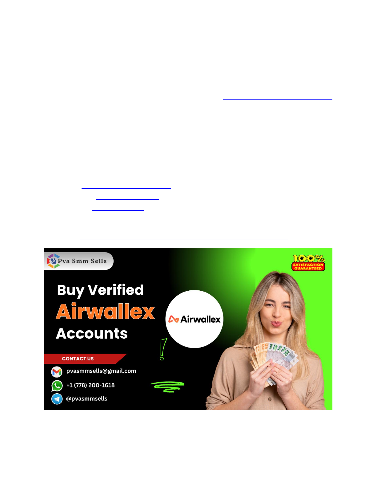 Buy Verified Airwallex Accounts Introduction to Airwallex and its benefits In a world where digital transactions have become the norm, finding reliable payment solutions is crucial for businesses. Enter Airwallex—a game-changer in global payments. This innovative platform streamlines cross-border transactions, making it easier than ever to manage funds and pay suppliers worldwide. Whether you're an entrepreneur seeking to expand your reach or a freelancer receiving international payments, Airwallex offers tools designed to simplify your financial processes. If you want to more information just contact now. 24 Hours Reply/Contact ➤E-mail: pvasmmsells@gmail.com ➤WhatsApp: +1 (778) 200-1618 ➤Telegram: @pvasmmsells ➤Discord: pvasmmsells Visit Now: https://pvasmmsells.com/product/buy-verified-airwallex-accounts/ But what if you could take advantage of its benefits without going through the typical sign-up hurdles? Buying verified Airwallex accounts can unlock all these possibilities right away. https://pvasmmsells.com/product/buy-verified-airwallex-accounts/ mailto:pvasmmsells@gmail.com https://wa.link/ln3e7x https://t.me/pvasmmsells https://pvasmmsells.com/product/buy-verified-airwallex-accounts/ Imagine having instant access to powerful features that allow you to operate seamlessly across borders from day one! Curious about this option? Let's explore why investing in a verified account might be the best decision for your business. Why buying a verified Airwallex account is advantageous Acquiring a verified Airwallex account comes with notable benefits, making it an appealing option for many users. First and foremost, a verified account enhances your credibility in the digital payment landscape. This trust can be pivotal when dealing with clients or suppliers across borders. Another advantage is access to premium features that unverified accounts typically lack. These may include higher transaction limits and lower fees, allowing businesses to operate more efficiently. Moreover, having a verified account streamlines the onboarding process for new customers. They are likely to feel more secure engaging with a trusted platform that has already undergone rigorous verification. Managing international payments becomes much smoother too. A verified Airwallex account allows seamless currency conversions at competitive rates—an essential feature for global business operations. What to consider when purchasing a verified Airwallex account When purchasing a verified Airwallex account, it’s crucial to verify the legitimacy of the seller. Look for trusted platforms or sellers with positive reviews. This helps ensure you’re making a safe investment. Next, check if the account meets your specific needs. Different businesses may have varying requirements based on transaction volume and features available in different tiers. Consider pricing carefully; an extremely low price might indicate potential risks or hidden issues. It’s wise to balance cost with quality and reliability. Also, assess customer support options associated with the account. Reliable assistance can save time during any issues that arise post-purchase. Be aware of compliance regulations relevant to your region and business type. This ensures that your operations remain smooth and legally sound after acquiring the account. Where to buy verified Airwallex accounts https://pvasmmsells.com/product/buy-verified-airwallex-accounts/ When looking to buy verified Airwallex accounts, choosing a reputable source is crucial. Online forums and communities can be valuable resources. Users often share their experiences, guiding you toward trustworthy sellers. Another option is specialized websites that focus on account sales. These platforms typically vet sellers and provide buyer protection measures. Social media marketplaces also have listings for verified accounts. However, exercise caution here; always verify the seller's legitimacy before proceeding with any transactions. Networking within business circles may uncover private opportunities as well. Connecting with peers can lead to referrals for reliable sources selling verified Airwallex accounts. Always conduct thorough research on your chosen seller. Reading reviews and checking ratings can help ensure you make a safe purchase. Tips for using a verified Airwallex account effectively To maximize the benefits of your verified Airwallex account, start by familiarizing yourself with its features. Explore the dashboard and understand how transactions are processed. Set up automated notifications for incoming payments. This keeps you informed in real time, ensuring you never miss a crucial transaction. Utilize multi-currency accounts if you operate globally. This allows for seamless currency conversions without hefty fees. Regularly monitor your account statements. Staying on top of your finances helps prevent errors and provides insight into spending patterns. Take advantage of Airwallex’s integrations with other platforms like accounting software or e- commerce sites to streamline operations further. Don’t hesitate to reach out to customer support when needed; they can provide assistance tailored to enhance your experience and resolve any issues efficiently. Conclusion Buying verified Airwallex accounts can significantly enhance your business operations. These accounts provide access to a robust financial platform that streamlines international transactions, currency conversions, and payment processing. When considering acquiring a verified account, keep in mind the importance of legitimacy and security. Ensure you choose reputable sources to avoid scams or fraudulent activities. With the right guidance on how to use these accounts effectively, you can unlock numerous benefits for https://pvasmmsells.com/product/buy-verified-airwallex-accounts/ your business. By taking advantage of the features offered by Airwallex, you're positioning yourself for success in today's global marke