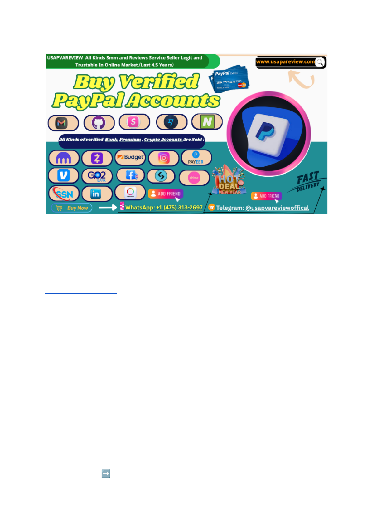 In the world of online payments, PayPal has emerged as one of the most trusted and widely used platforms globally. From freelancers and business owners to online shoppers and marketers, PayPal offers secure and fast payment solutions for everyone. However, getting a verified PayPal account, especially from certain countries, can be challenging due to regional restrictions, documentation requirements, and verification delays. That’s where USAPVAREVIEW.COM becomes your most reliable partner. Features of PayPal Accounts- ➤ PayPal Email and password ➤ Verified Phone: US, UK, CA Phone Verify ➤ Verify by VCC (Card Verified) ➤ Verify by: (Bank Verified) ➤ Email logins associated with PayPal ➤ Credit card used in PayPal ➤ Date of Birth used ➤ Last 4 digits of USA, UK, CA SSN ➤ Driving License And Passport ➤ Name, address, City, Social Security Number & further all the details. ➤ Send and receive money without limits ➤ 10 Days Replacement ➡ If you face any problem you can contact us. https://usapvareview.com/product/buy-verified-paypal-accounts/ http://usapvareview.com Contact our store manager :- 24/7 ……………………………………………………………………………… ……………………………………………………………………………… Telegram: @usapvareviewoffical WhatsApp: +1 (475) 313-2697 E-mail: usapvareviewoffical@gmail.com Click Here:https://usapvareview.com/product/buy-verified-paypal-accounts/ Introduction To USAPVAREVIEW.COM And Their Services USAPVAREVIEW.COM is a reputable platform that specializes in providing verified digital accounts for various financial platforms, including PayPal, Cash App, Binance, Wise, and more. With a commitment to authenticity, customer satisfaction, and data security, they have established themselves as a go-to provider for individuals and businesses looking to streamline their digital operations. Services Offered Include: ● Verified PayPal, Binance, and Wise Accounts ● Digital identity and KYC services ● Account setup and management ● Live customer support ● Bulk account deals for business needs What is PayPal? PayPal is an online payment platform that allows users to send and receive money, make purchases, and manage financial transactions across the globe. It is accepted by millions of merchants and is favored for its security, ease of use, and buyer/seller protection mechanisms. Introduction To PayPal Verification PayPal verification is the process of confirming a user’s identity by linking and confirming a valid bank account or card and submitting legal identity documents. Verification increases transaction limits, removes restrictions, and helps build trust with other users. https://t.me/smmvcc https://usapvareview.com/product/buy-verified-paypal-accounts/ https://usapvareview.com/product/buy-verified-paypal-accounts/ Benefits Of Verified PayPal Accounts 1. Higher Transaction Limits – Verified users can send and receive more money without facing restrictions. 2. Enhanced Security – Verified accounts are less likely to be flagged or limited by PayPal. 3. Trust and Credibility – Verified status increases your reliability with customers, clients, or vendors. 4. Access to More Features – You can link cards, withdraw funds to a bank, and use PayPal’s merchant services. 5. Better Dispute Resolution – Verified accounts have stronger buyer/seller protection. The Accounts Are Verified by Which Documents? USAPVAREVIEW.COM ensures that every PayPal account is fully verified using the following documents: ● Government-issued photo ID (Passport, Driver’s License, National ID) ● Proof of address (Utility bill, Bank statement) ● Verified phone number and email ● Linked and confirmed bank account or debit card These verification steps are completed before delivery, so customers receive ready-to-use, fully verified accounts. Why We Are the Best for Buying Verified PayPal Accounts USAPVAREVIEW.COM stands out in the market due to: ● Instant delivery of verified accounts ● Verified using real, legal documents ● Affordable pricing and bulk discounts ● Responsive customer support ● Secure payment options ● 100% confidentiality guaranteed They have years of experience and hundreds of satisfied customers around the world. Why Should You Buy Verified PayPal Accounts For Your Business? Businesses rely on PayPal for smooth global transactions. A verified PayPal account ensures: https://usapvareview.com/product/buy-verified-paypal-accounts/ ● Seamless international payments ● Customer trust and payment confidence ● Lower chances of account freezes and limitations ● Increased transaction volumes for business scaling ● Access to PayPal business tools and invoicing For startups, agencies, freelancers, and eCommerce stores, verified accounts are essential. What Are Vindicated PayPal Accounts? "Vindicated PayPal accounts" is another term for fully verified accounts that have passed identity and address verification. These accounts: ● Have confirmed banking information ● Are linked to real IDs and documents ● Are eligible for all PayPal features and services They are safe for long-term use and fully compliant with PayPal policies. ➡ If you face any problem you can contact us. Contact our store manager :- 24/7 ……………………………………………………………………………… ……………………………………………………………………………… Telegram: @usapvareviewoffical WhatsApp: +1 (475) 313-2697 E-mail: usapvareviewoffical@gmail.com Click Here:https://usapvareview.com/product/buy-verified-paypal-accounts/ Are There Any Pitfalls Involved In Buying Vindicated PayPal Accounts? While buying verified accounts is a practical solution, it comes with some risks if not done properly: ● Source Risk: Untrustworthy sellers may provide fake or low-quality accounts. ● Security Issues: Poorly transferred acc