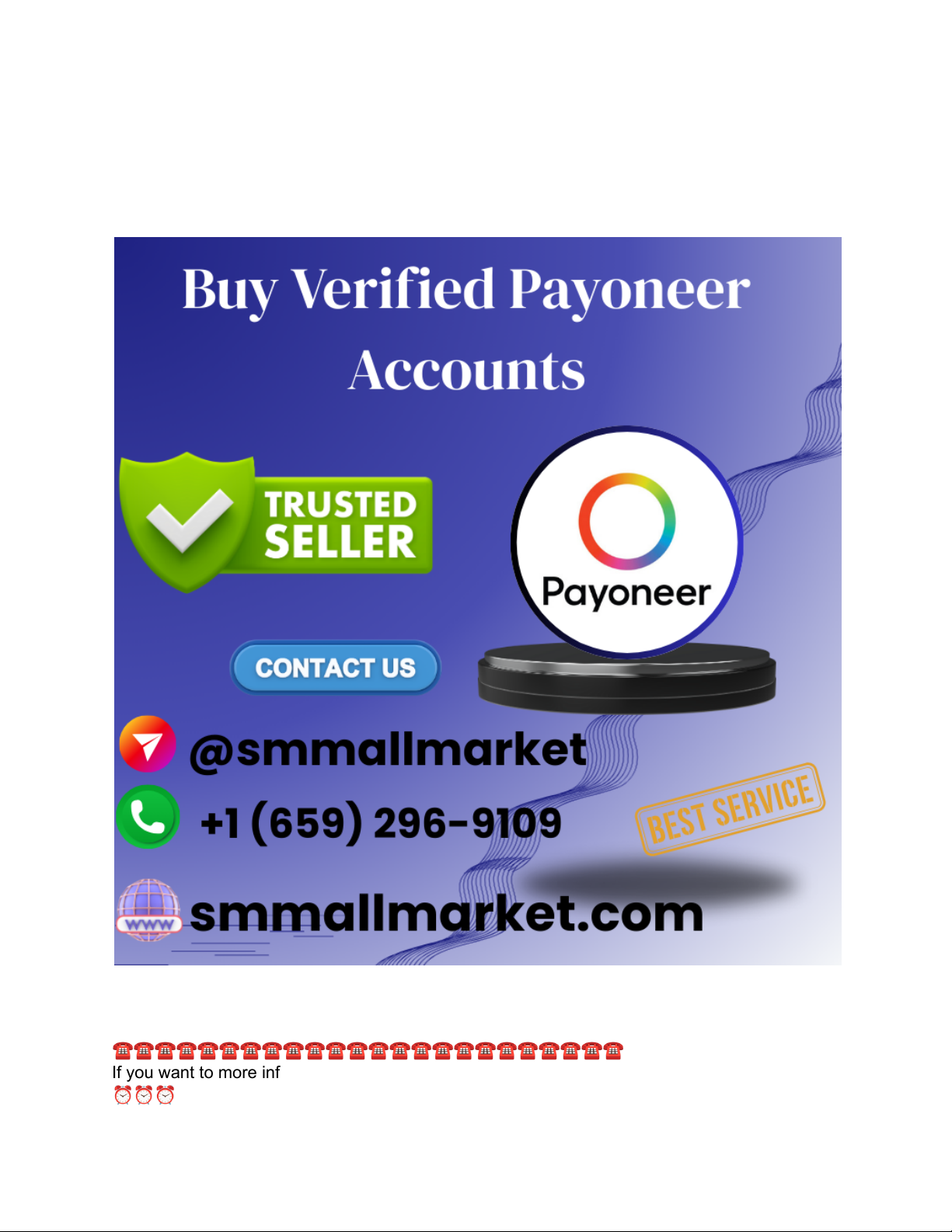 The Best 40 Websites to Buy Verified Payoneer Accounts In 2025, the global digital economy is more active than ever. Whether you're a freelancer, eCommerce seller, digital marketer, or business owner, having a verified payment solution is essential. That’s why many people are choosing to buy verified Payoneer accounts instead of going through the lengthy manual verification process. ☎☎☎☎☎☎☎☎☎☎☎☎☎☎☎☎☎☎☎☎☎☎☎☎ If you want to more information just contact now here ⏰⏰⏰24 Hours Reply/Contact ➡–➤📱Telegram: @smmallmarket ➡–➤📱WhatsApp:+1 (659) 296-9109 ➡–➤📱Email:smmallmarket@gmail.com https://smmallmarket.com/product/buy-verified-payoneer-accounts/ ▰▰▰▰▰▰▰▰▰▰▰▰▰▰▰▰▰▰▰▰▰▰▰▰▰▰▰▰▰▰▰▰▰▰ ☎☎☎☎☎☎☎☎☎☎☎☎☎☎☎☎☎☎☎☎☎☎☎☎ Payoneer is regarded as one of the most reliable platforms for receiving payments from abroad.However, getting an account verified can be time-consuming and may require documents that some users don’t have readily available. When you buy verified Payoneer accounts, you save time, avoid delays, and gain instant access to a fully functional account that’s ready to use. This is especially useful for freelancers working on platforms like Fiverr, Upwork, or PeoplePerHour, where timely payments are crucial. It's also a smart move for businesses managing multiple clients or employees in different countries. In 2025, the demand for verified accounts has increased due to tighter regulations and stricter KYC (Know Your Customer) procedures. Buying a pre-verified account from a reliable source ensures you bypass these hurdles legally and efficiently. Of course, it’s important to only buy verified Payoneer accounts from trusted sellers who provide full documentation, account history, and customer support. Always avoid suspiciously cheap offers or accounts with limited access. If you’re looking to expand globally, speed up your payment processing, and avoid verification delays, buying a verified Payoneer account is a smart and strategic choice in 2025. Is It Safe to Buy Verified Payoneer Accounts Online? Learn from smmallmarket.com In today’s digital economy, having a verified Payoneer account is essential for freelancers, online business owners, and anyone dealing with international payments. But one common question is: "Is it secure to purchase confirmed Payoneer accounts online?" The short answer is: Yes — if you buy from a trusted and reliable source like smmallmarket.com Getting a Payoneer account verified through the traditional method can be time-consuming and complicated, especially with strict KYC (Know Your Customer) requirements. That’s why many people choose to skip the hassle and buy a fully verified account that’s ready to use instantly. Why Choose smmallmarket.com? ✅ 100% Fully Verified Payoneer Accounts ✅ Complete access with full documents ✅ Fast & Secure Delivery ✅ Trusted by hundreds of clients At smmallmarket.com, we guarantee that each Payoneer account is professionally verified and comes with full ownership. You’ll get a clean account, no prior usage issues, and full documentation for maximum safety. ☎☎☎☎☎☎☎☎☎☎☎☎☎☎☎☎☎☎☎☎☎☎☎☎ If you want to more information just contact now here ⏰⏰⏰24 Hours Reply/Contact ➡–➤📱Telegram: @smmallmarket ➡–➤📱WhatsApp:+1 (659) 296-9109 ➡–➤📱Email:smmallmarket@gmail.com https://smmallmarket.com/product/buy-verified-payoneer-accounts/ ▰▰▰▰▰▰▰▰▰▰▰▰▰▰▰▰▰▰▰▰▰▰▰▰▰▰▰▰▰▰▰▰▰▰ ☎☎☎☎☎☎☎☎☎☎☎☎☎☎☎☎☎☎☎☎☎☎☎☎ Be Cautious: Not all sellers online are legit. Avoid purchasing from unknown or suspiciously cheap sources — these accounts often come with hidden risks like bans, limited access, or fraud flags. A cheap deal can cost you more in the long run. Final Words: Yes, buying a verified Payoneer account online is safe, but only when you choose the right platform. smmallmarket.com provides secure, fast, and reliable accounts trusted by professionals worldwide. Buy Verified Payoneer Accounts to Unlock Global Payment Solutions In today’s fast-paced digital economy, receiving and sending money globally is no longer a luxury — it's a necessity. If you’re a freelancer, eCommerce entrepreneur, affiliate marketer, or digital agency owner, having a verified Payoneer account can significantly simplify your financial operations. That’s why more people are choosing to buy verified Payoneer accounts and unlock global payment solutions instantly. Payoneer is a trusted platform that supports international transactions in over 200 countries. However, going through the manual verification process can be time-consuming, especially with strict KYC requirements. When you buy a verified Payoneer account, you skip the delays and get immediate access to international banking features — such as receiving payments from platforms like Amazon, Fiverr, Upwork, and more. A verified account also enables you to withdraw funds, send payments to other users, and use global receiving accounts (USD, EUR, GBP, etc.). It opens the door to global business opportunities without waiting weeks for approval. Just make sure to buy from a reliable and secure provider who offers full access, documents, and support. Unlock your global earning potential today — buy a verified Payoneer account and start transacting worldwide without limits. What to Check Before You Buy Verified Payoneer Accounts Buying a verified Payoneer account can save you time, especially if you're a freelancer, entrepreneur, or digital marketer needing fast access to international payment systems. However, not all accounts — or sellers — are trustworthy. Before you buy verified Payoneer accounts, here are a few important thi
