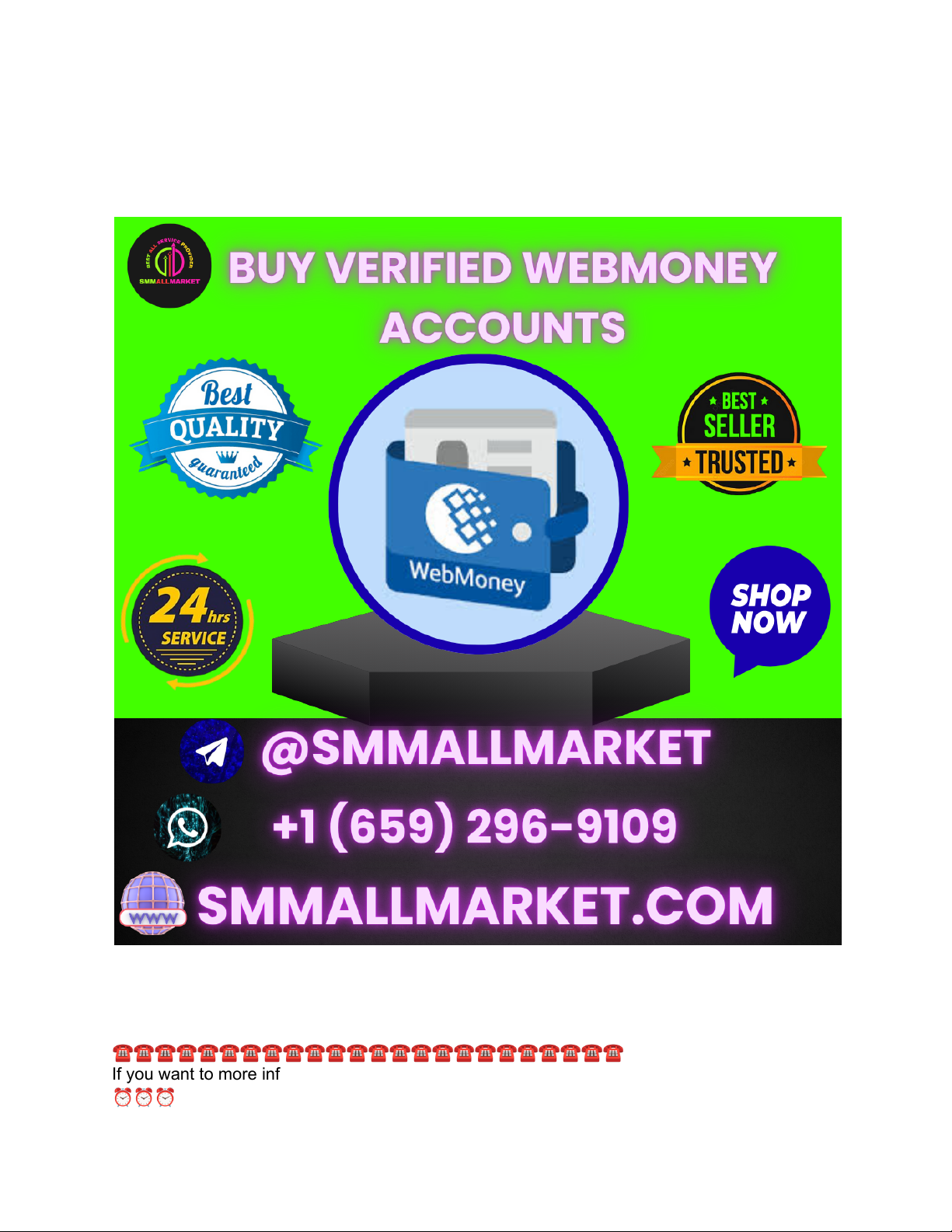 The Essential Guide to Buy Verified Webmoney Accounts A WebMoney account is an electronic wallet that allows users to send, receive, and store money online securely. It is part of the WebMoney Transfer system, which is widely used in Russia and several other countries for digital payments. When you create a WebMoney account, you receive a unique identification number called WMID, which helps manage your transactions. ☎☎☎☎☎☎☎☎☎☎☎☎☎☎☎☎☎☎☎☎☎☎☎☎ If you want to more information just contact now here ⏰⏰⏰24 Hours Reply/Contact ➡–➤📱Telegram: @smmallmarket ➡–➤📱WhatsApp:+1 (659) 296-9109 ➡–➤📱Email:smmallmarket@gmail.com https://smmallmarket.com/product/buy-verified-webmoney-accounts/ ▰▰▰▰▰▰▰▰▰▰▰▰▰▰▰▰▰▰▰▰▰▰▰▰▰▰▰▰▰▰▰▰▰▰ ☎☎☎☎☎☎☎☎☎☎☎☎☎☎☎☎☎☎☎☎☎☎☎☎ Within your WebMoney account, you can create multiple “purses” for different currencies, such as WMZ for US dollars, WME for euros, and more. Each purse acts like a separate wallet to hold funds in that specific currency. This multi-currency feature makes WebMoney a versatile option for international transactions. To use WebMoney, you must register and verify your identity. After that, you can transfer money instantly to other WebMoney users, pay for goods and services online, or even withdraw money to your bank account. WebMoney provides strong security measures, including two-factor authentication and digital certificates, ensuring safe transactions. In short, a WebMoney account is a reliable digital payment tool that simplifies online financial activities by allowing users to handle multiple currencies quickly and securely. Top Benefits of Using a WebMoney Account for Online Payments Using a WebMoney account for online payments offers several advantages that make it a popular choice, especially in regions like Russia and Eastern Europe. One of the main benefits is convenience. With a WebMoney account, users can manage multiple currencies in one place, making international transactions easier and faster. Another key advantage is security. WebMoney employs advanced security features like two-factor authentication, digital certificates, and transaction confirmation codes to protect users’ funds and personal information. This makes online payments safer compared to many traditional payment methods. WebMoney also provides instant transfers between users, which means money can be sent and received quickly without delays. This is particularly useful for businesses and freelancers who need fast payments. Additionally, WebMoney supports payments to a wide range of online merchants and service providers, offering great flexibility for users. The platform also allows users to link their account to bank cards and withdraw funds easily, providing seamless access to money. Lastly, WebMoney is widely accepted in many countries, making it a versatile tool for cross-border transactions. In summary, WebMoney offers convenience, security, speed, and flexibility, making it an excellent choice for online payments. ☎☎☎☎☎☎☎☎☎☎☎☎☎☎☎☎☎☎☎☎☎☎☎☎ If you want to more information just contact now here ⏰⏰⏰24 Hours Reply/Contact ➡–➤📱Telegram: @smmallmarket ➡–➤📱WhatsApp:+1 (659) 296-9109 ➡–➤📱Email:smmallmarket@gmail.com https://smmallmarket.com/product/buy-verified-webmoney-accounts/ ▰▰▰▰▰▰▰▰▰▰▰▰▰▰▰▰▰▰▰▰▰▰▰▰▰▰▰▰▰▰▰▰▰▰ ☎☎☎☎☎☎☎☎☎☎☎☎☎☎☎☎☎☎☎☎☎☎☎☎ Why a WebMoney Account Is Ideal for International Transactions A WebMoney account is an excellent tool for international transactions due to its multi-currency support and global reach. Users can open different wallets, called “purses,” for various currencies like US dollars, euros, Russian rubles, and more. This allows seamless handling of money across borders without the hassle of constant currency conversion. One of the biggest advantages is speed. WebMoney enables instant transfers between users worldwide, making it ideal for businesses, freelancers, and individuals who need quick payment processing. Unlike traditional bank transfers, which can take days, WebMoney transactions happen almost immediately. Security is another important factor. WebMoney uses robust measures such as two-factor authentication and encrypted digital certificates to protect users from fraud and unauthorized access. This provides peace of mind when sending or receiving money internationally. Additionally, WebMoney is widely accepted by merchants and service providers in many countries, offering flexibility in making payments for goods or services abroad. Users can also withdraw funds to local bank accounts or cards, simplifying access to their money. In summary, WebMoney’s fast processing, strong security, multi-currency support, and wide acceptance make it an ideal choice for international transactions. ☎☎☎☎☎☎☎☎☎☎☎☎☎☎☎☎☎☎☎☎☎☎☎☎ If you want to more information just contact now here ⏰⏰⏰24 Hours Reply/Contact ➡–➤📱Telegram: @smmallmarket ➡–➤📱WhatsApp:+1 (659) 296-9109 ➡–➤📱Email:smmallmarket@gmail.com https://smmallmarket.com/product/buy-verified-webmoney-accounts/ ▰▰▰▰▰▰▰▰▰▰▰▰▰▰▰▰▰▰▰▰▰▰▰▰▰▰▰▰▰▰▰▰▰▰ ☎☎☎☎☎☎☎☎☎☎☎☎☎☎☎☎☎☎☎☎☎☎☎☎ How to Create a WebMoney Account Step by Step Creating a WebMoney account is simple and takes just a few steps. Follow this guide to get started: Visit the WebMoney Website Go to the official WebMoney website: www.wmtransfer.com and click on the “Sign Up” button. Enter Your Mobile Number Choose your country code and enter your mobile phone number. You’ll receiv